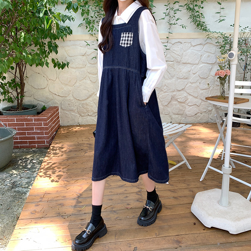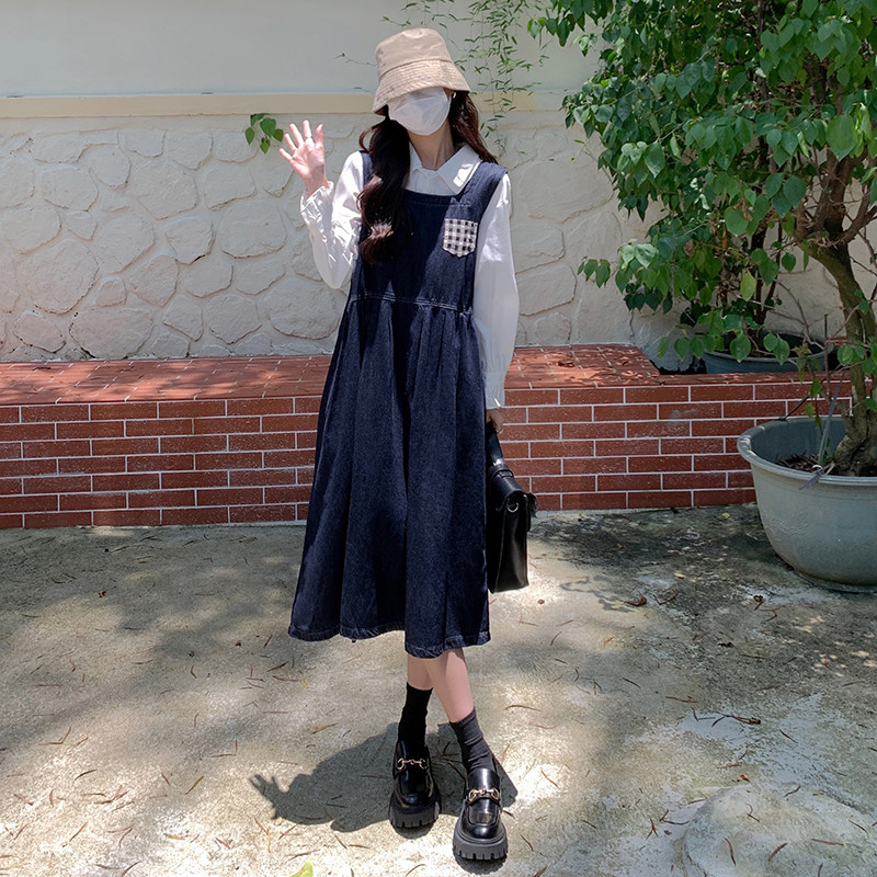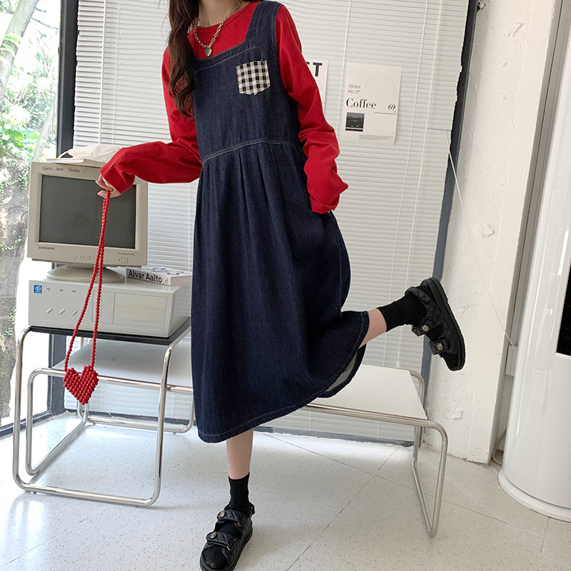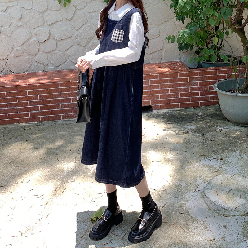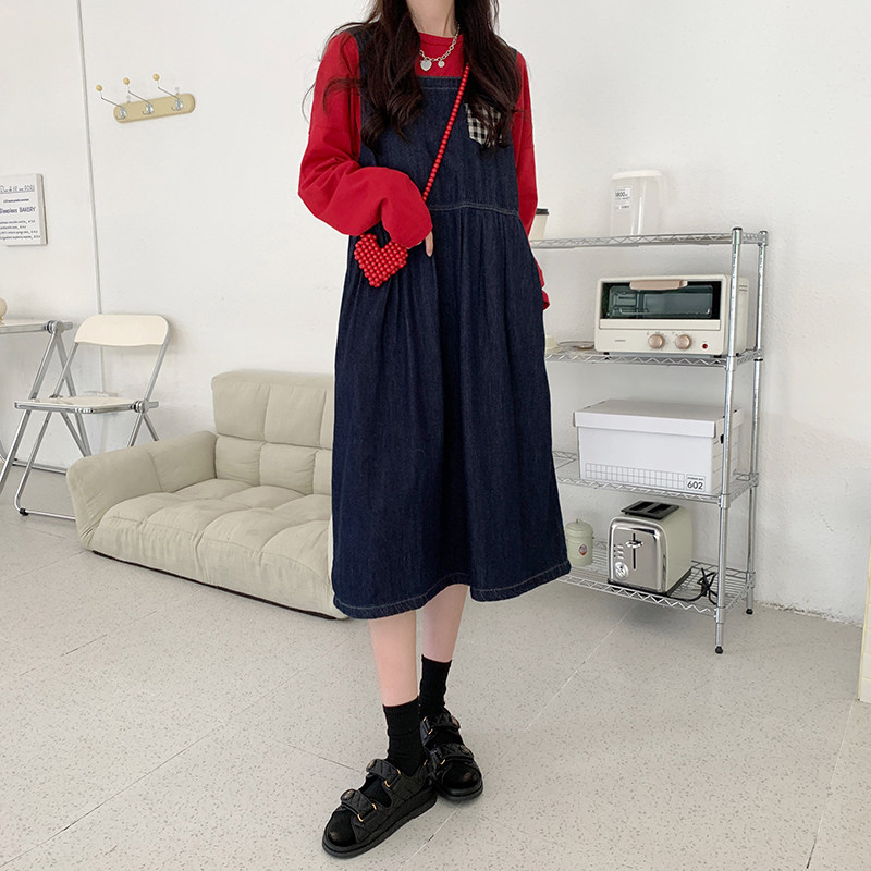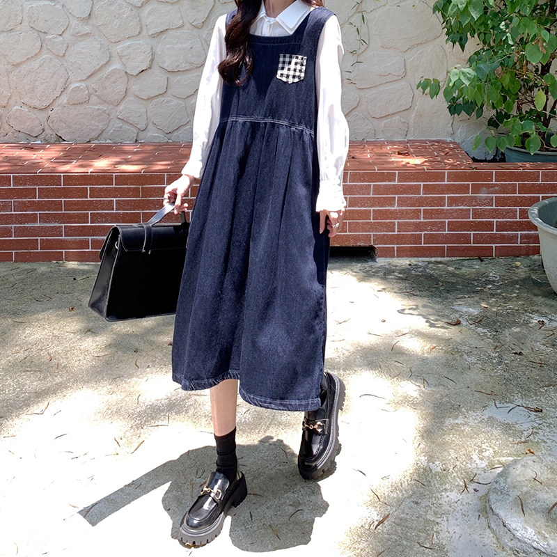 Джинсовое осеннее платье без рукавов без рукавов, осенняя синяя универсальная юбка для школьников и студентов, оверсайз