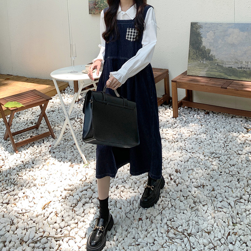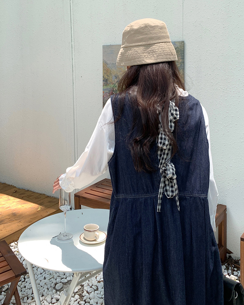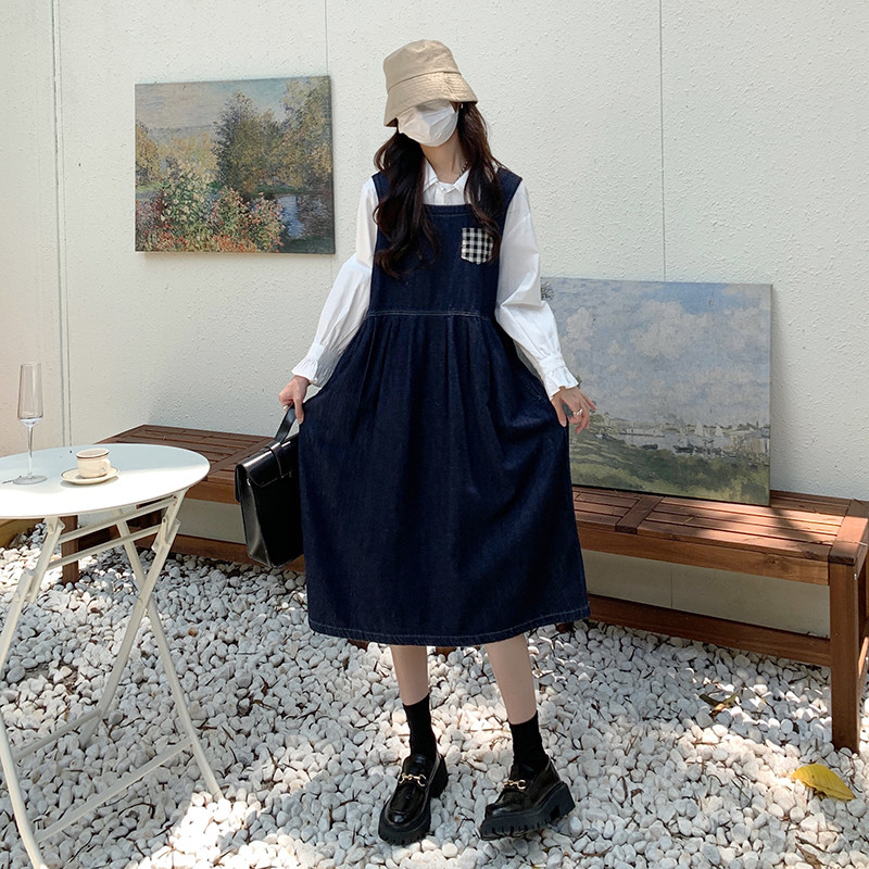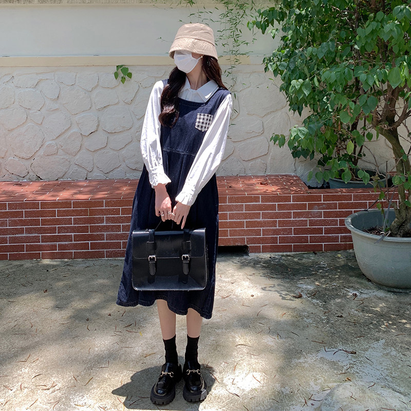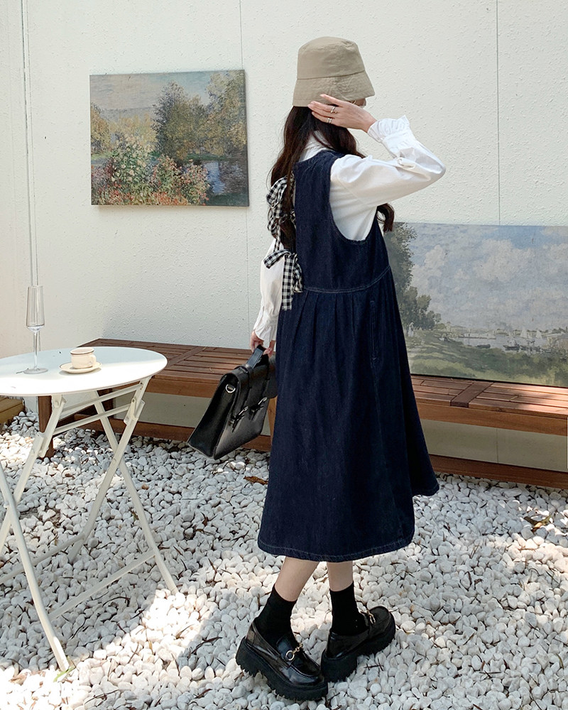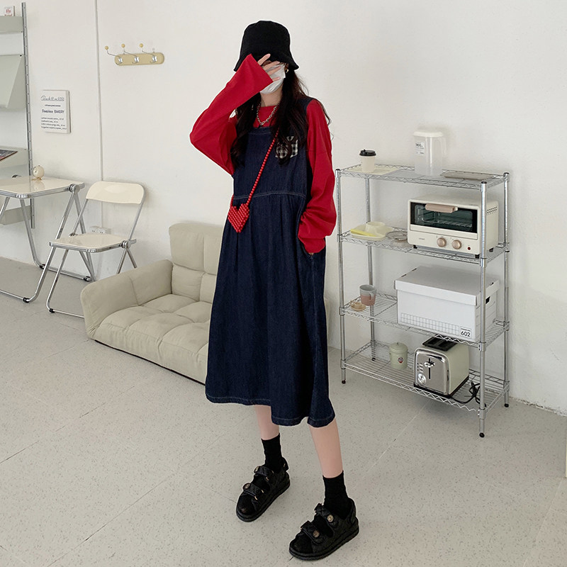 Джинсовое осеннее платье без рукавов без рукавов, осенняя синяя универсальная юбка для школьников и студентов, оверсайз