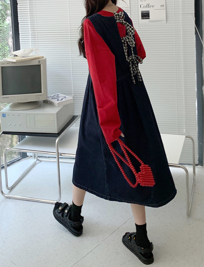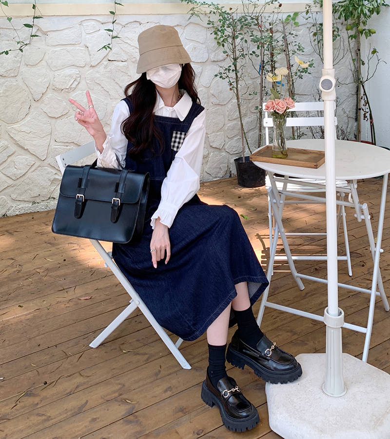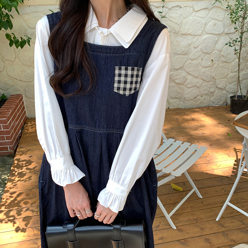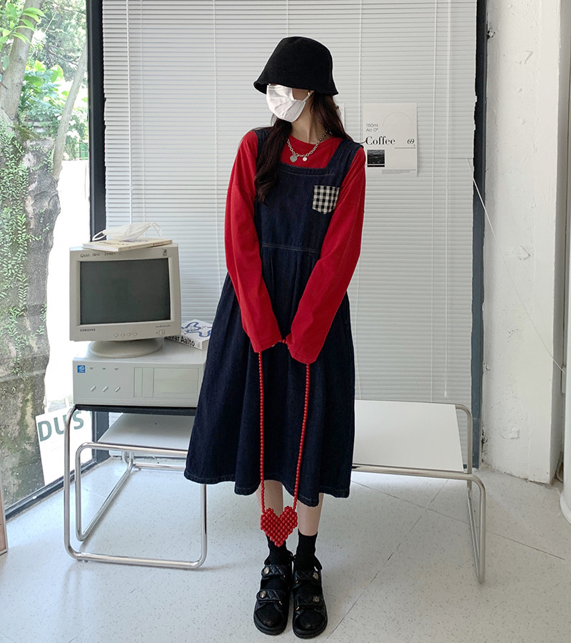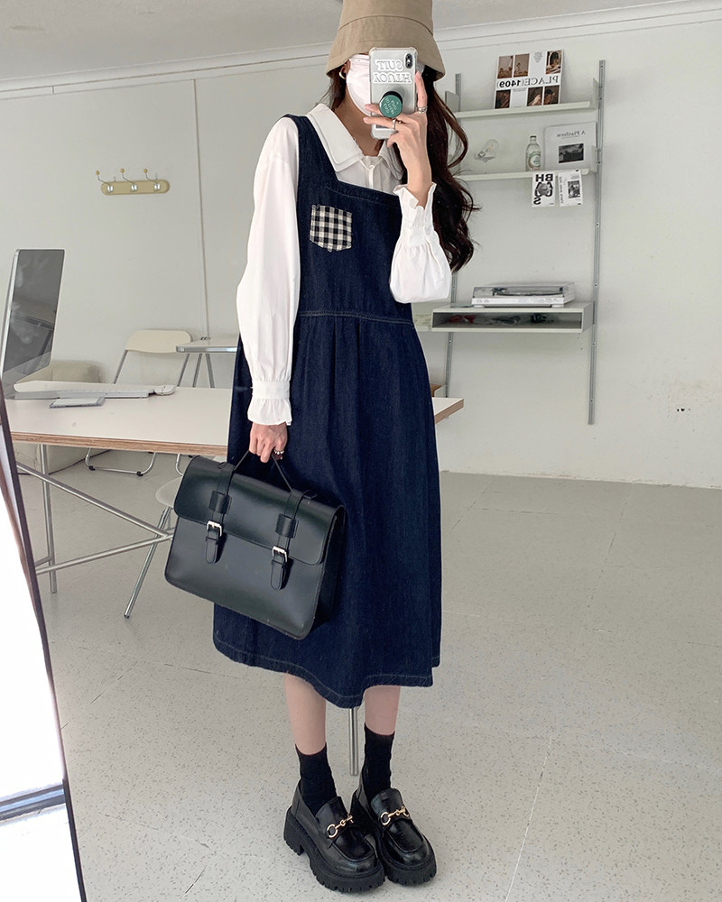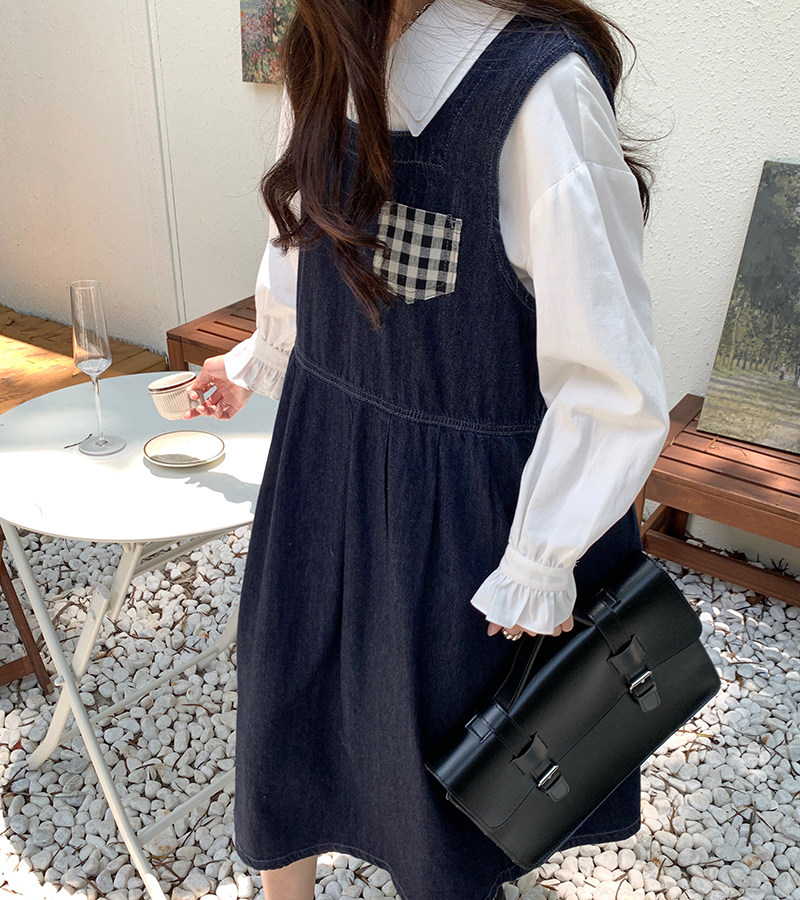 Джинсовое осеннее платье без рукавов без рукавов, осенняя синяя универсальная юбка для школьников и студентов, оверсайз