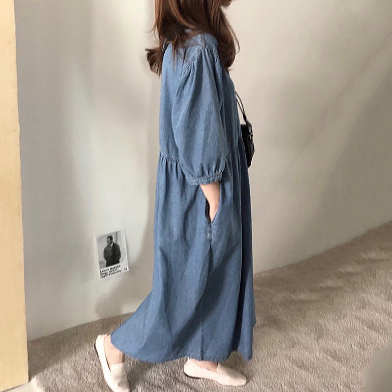 Джинсовая длинная юбка, в корейском стиле, высокая талия, свободный крой