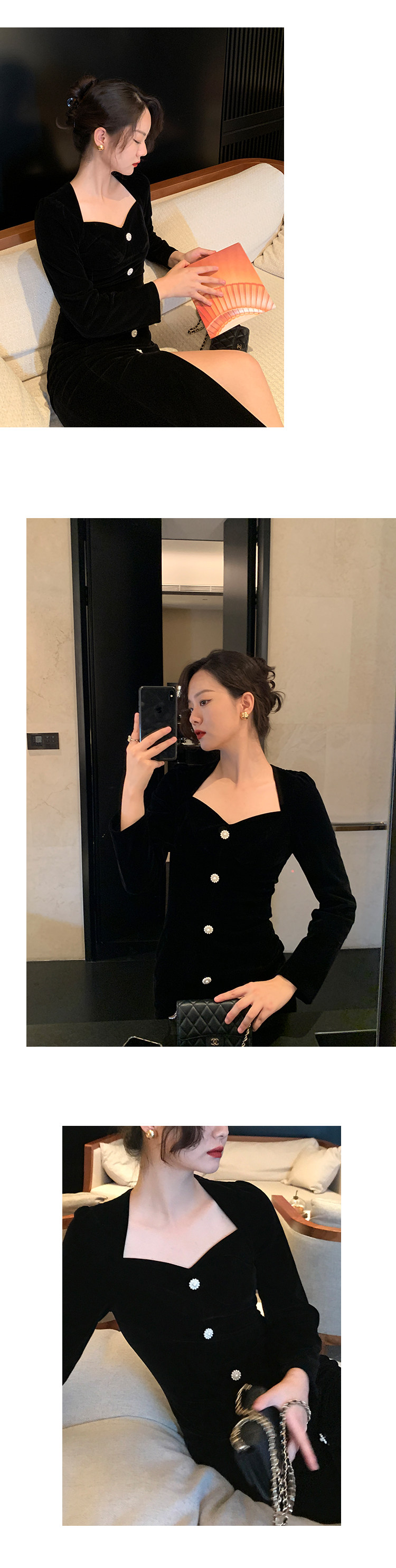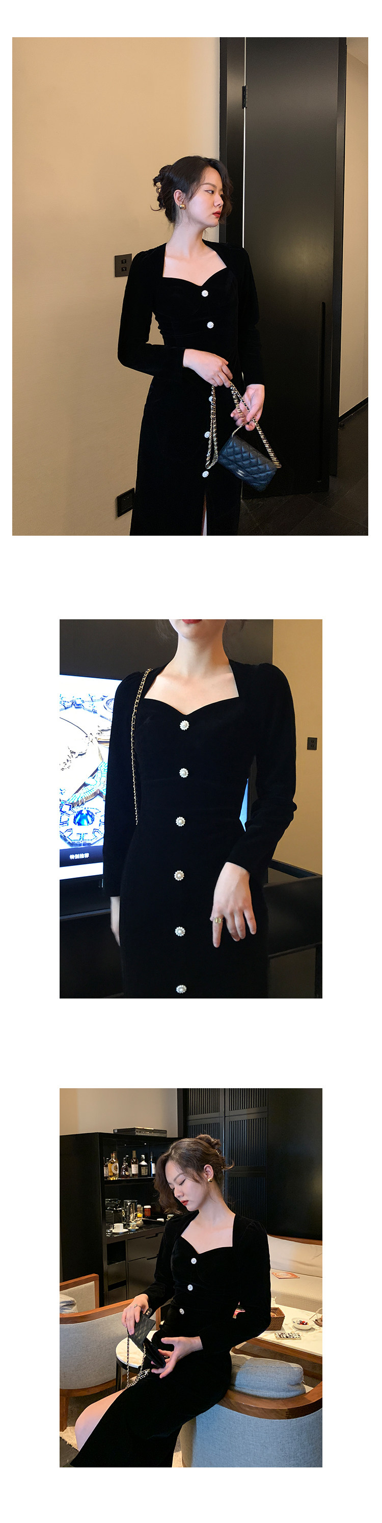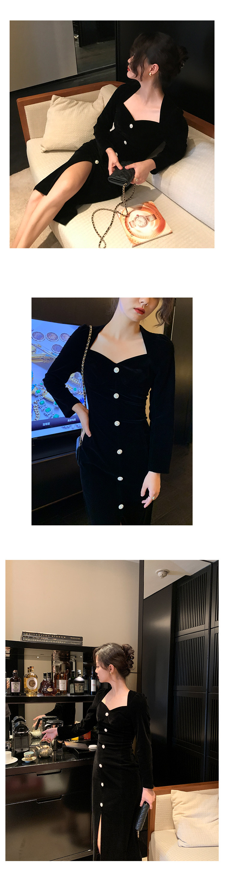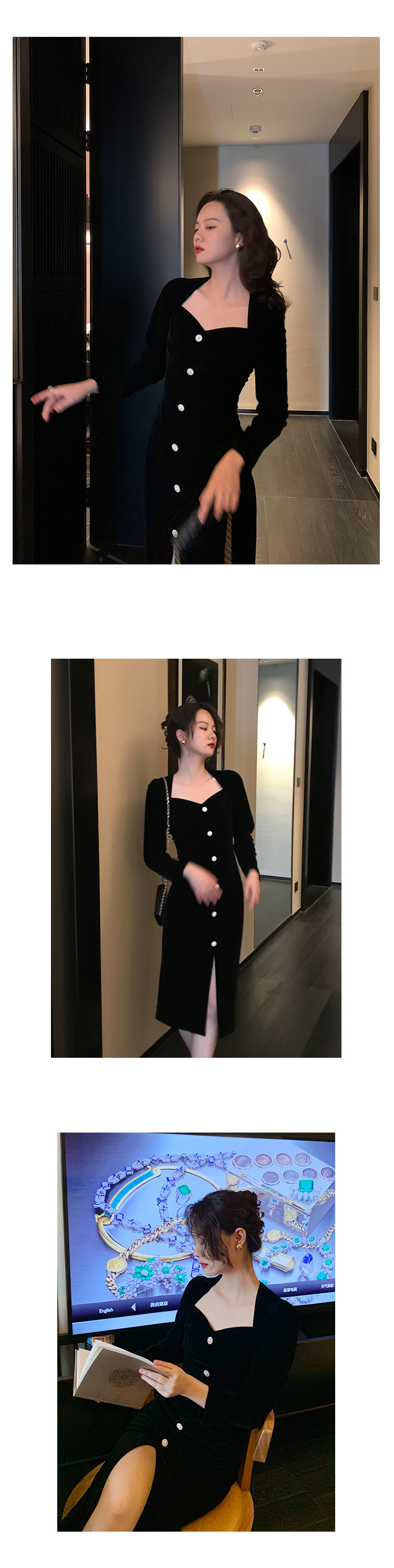 Ретро черное зимнее платье, приталенный корсет, лонгслив, французский стиль, А-силуэт
