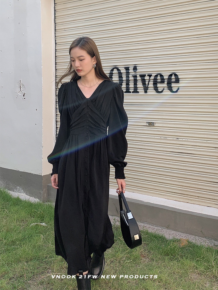 Ретро платье, длинная юбка, V-образный вырез, яркий броский стиль, длина миди, высокая талия
