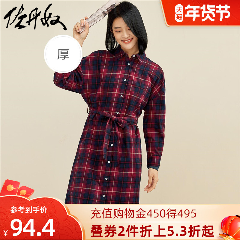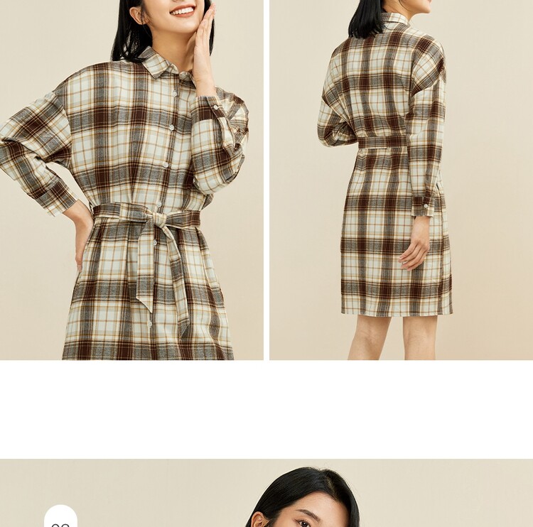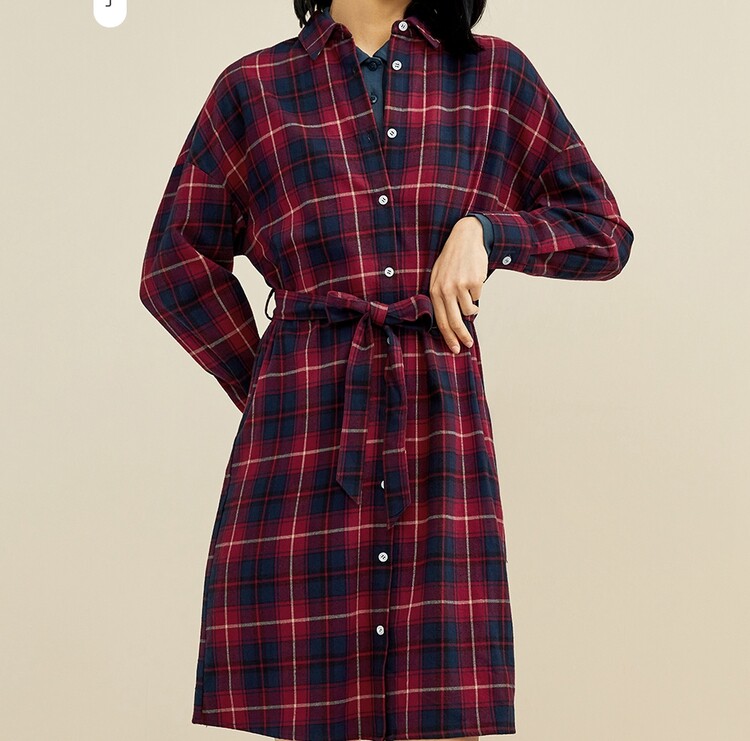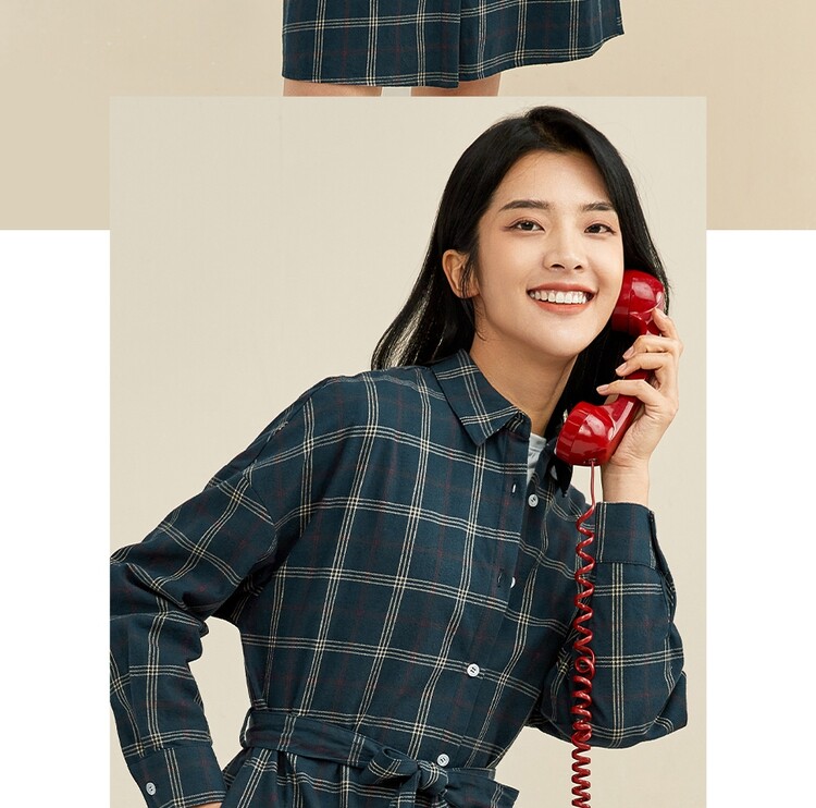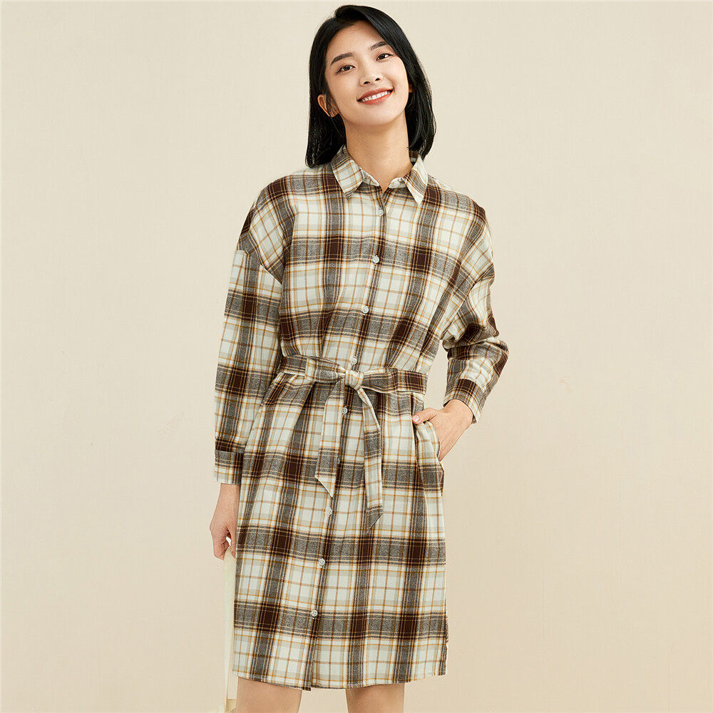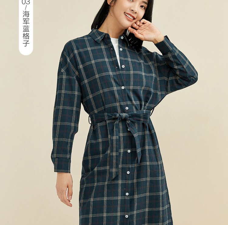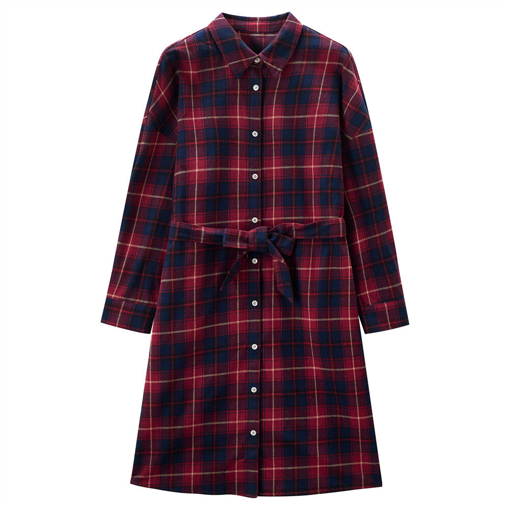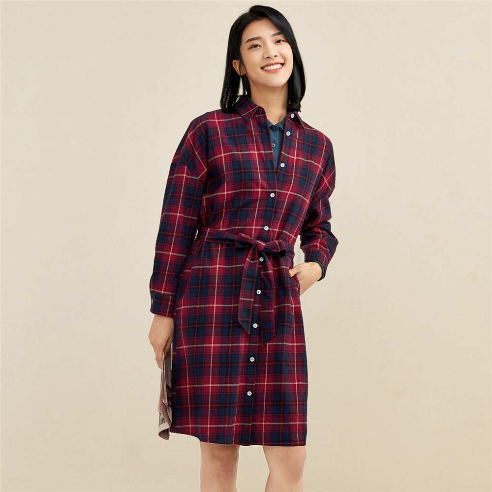 Фланелевое платье, хлопковая рубашка, ремень, юбка, высокая талия