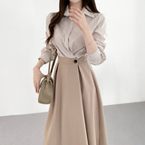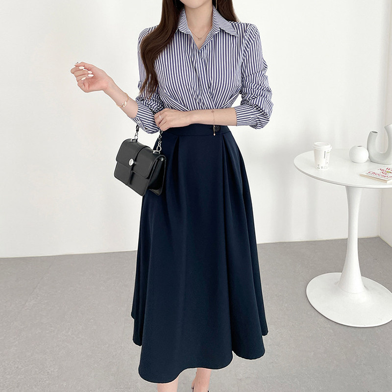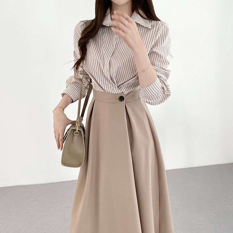 Элегантный комплект, корсет, лонгслив, в корейском стиле, воротник поло