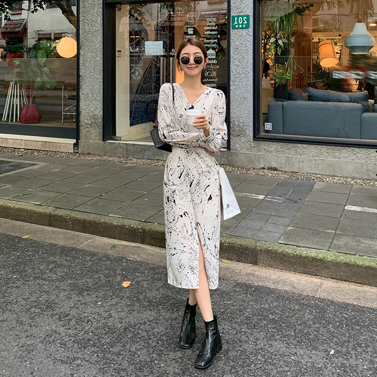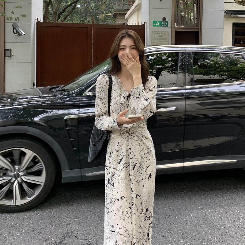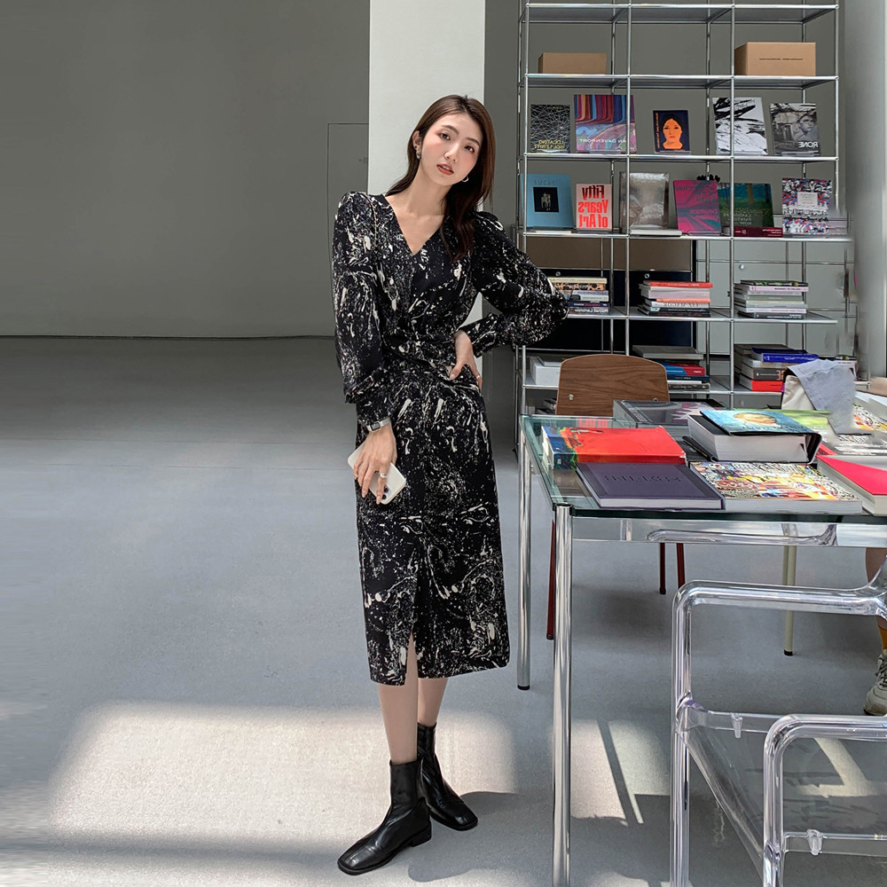 Осенний лонгслив, сексуальное платье, приталенный корсет, длинная юбка, французский стиль, изысканный стиль, средней длины
