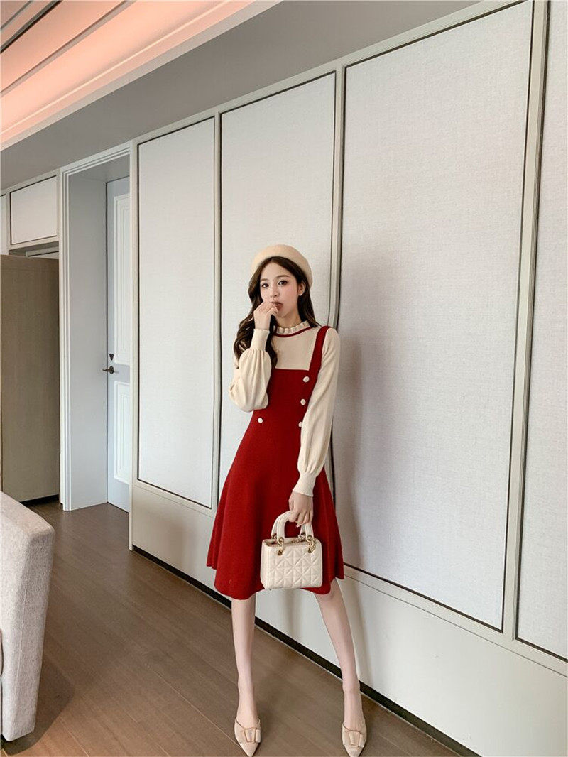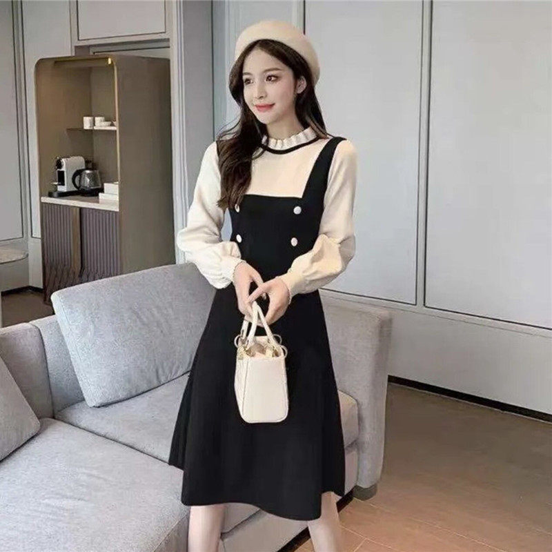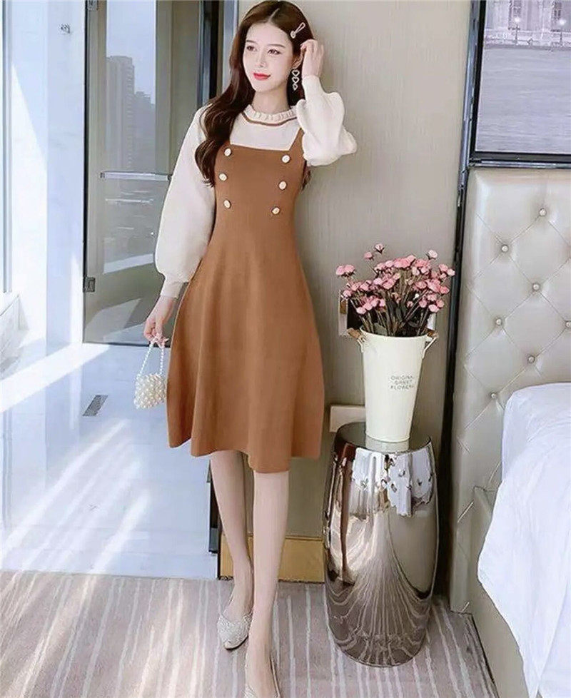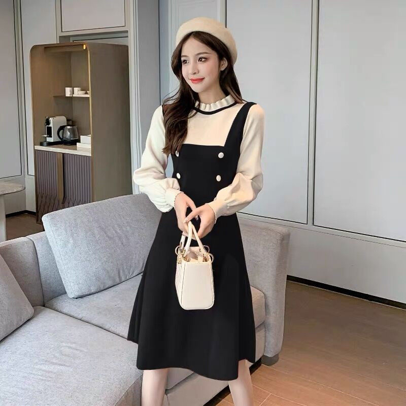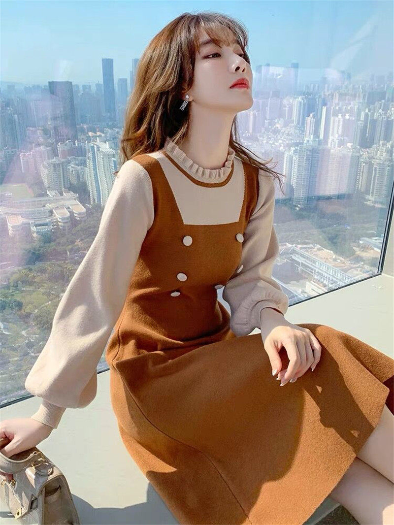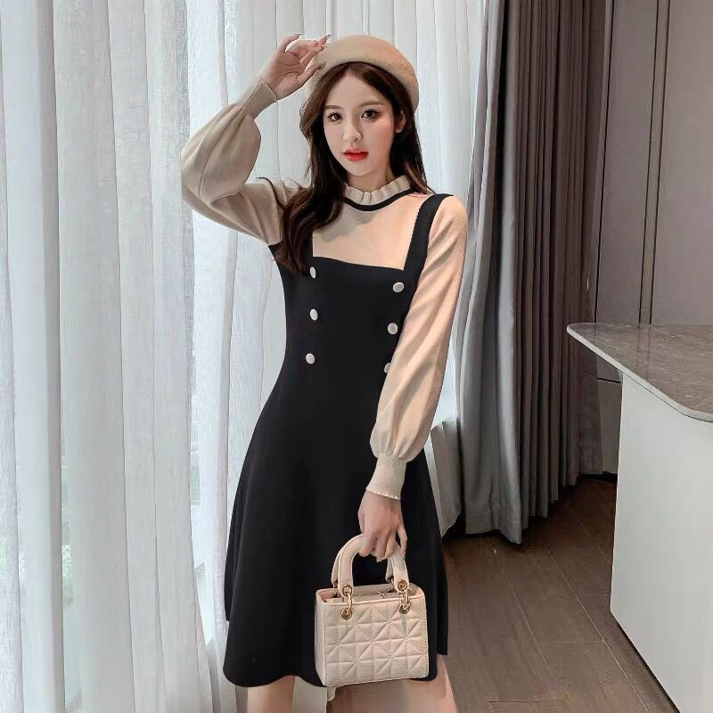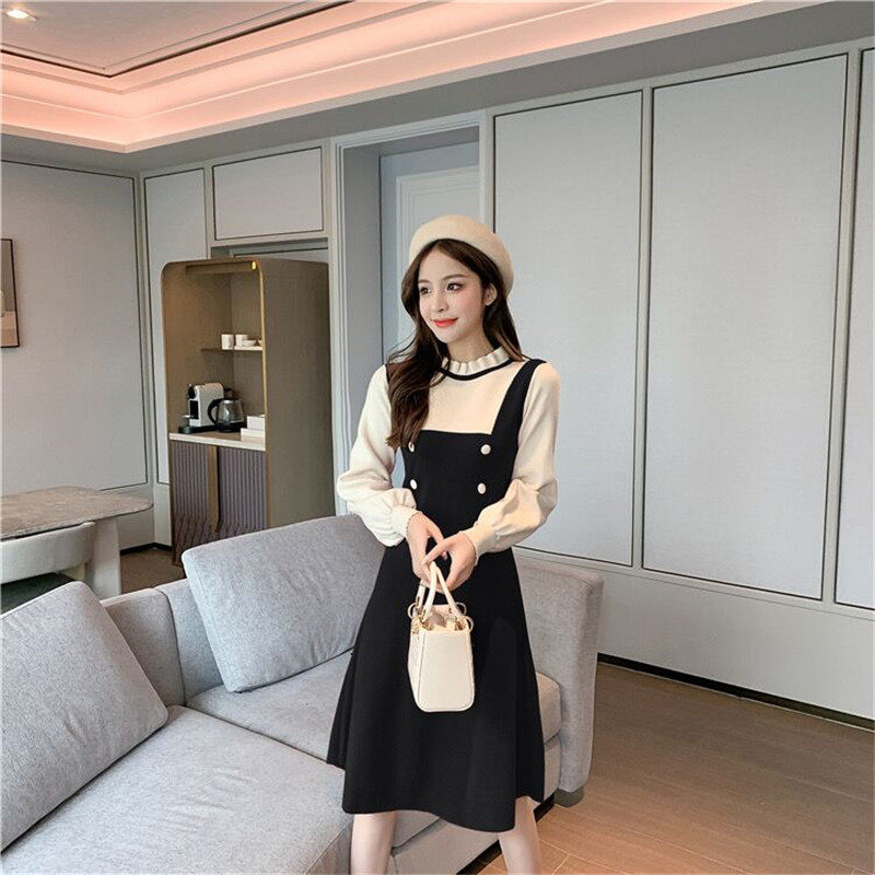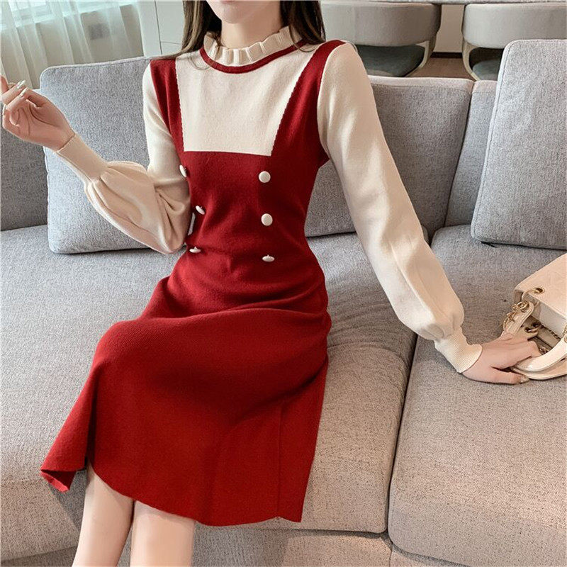Длинный осенний корсет, трикотажный лонгслив, шерстяное платье, средней длины, подходит для подростков