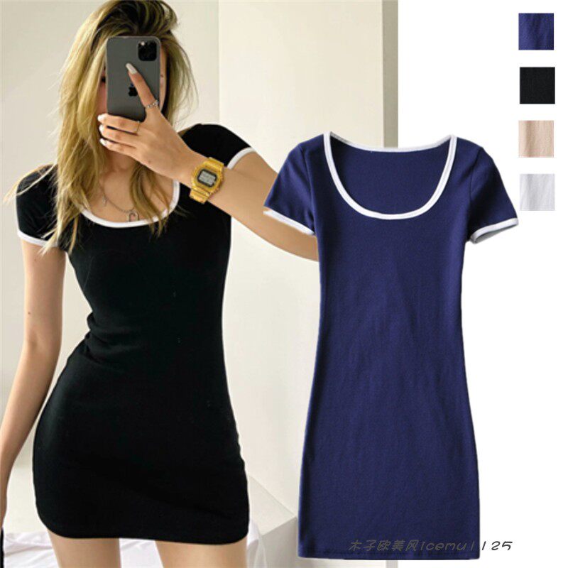 Милое платье с круглым воротником, в американском стиле, 2021 года, французский стиль, в западном стиле, короткий рукав, подходит для подростков