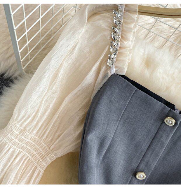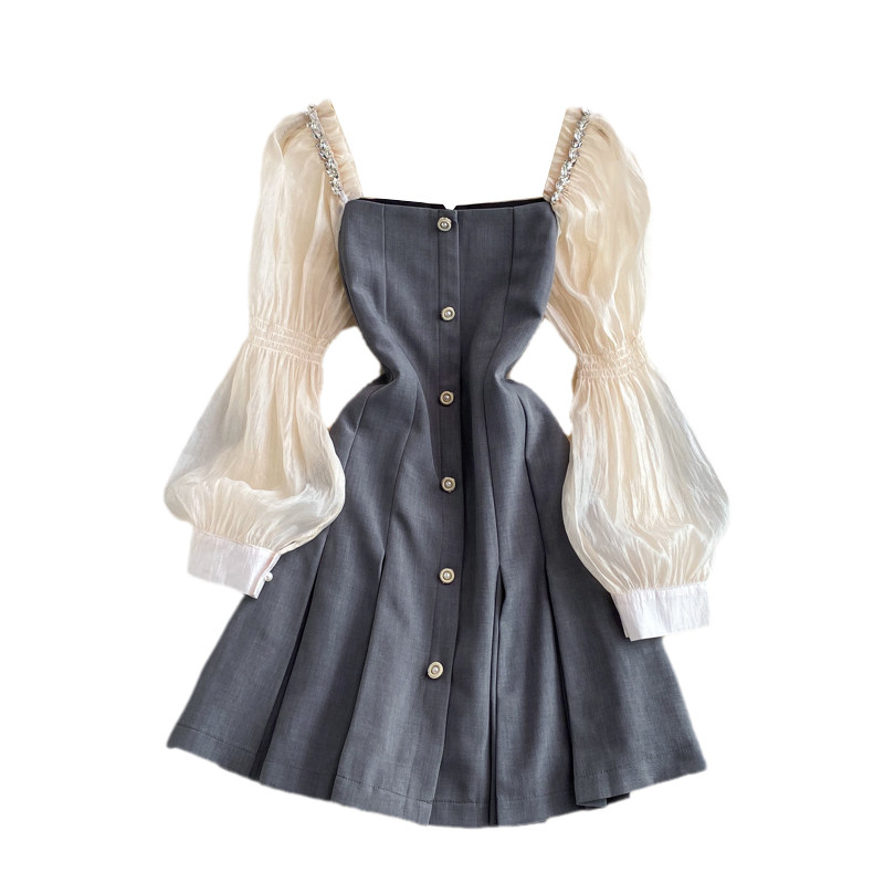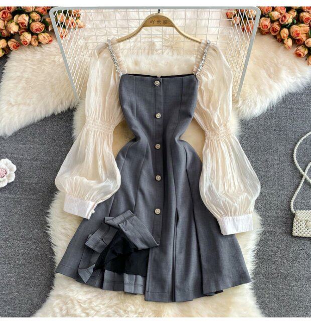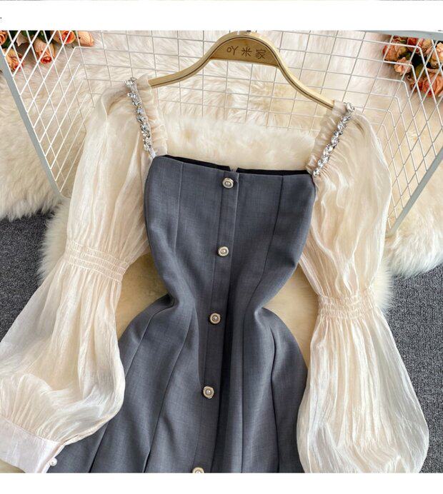 Осенний приталенный корсет, платье, 2021 года, в корейском стиле, рукава фонарики, квадратный вырез, А-силуэт