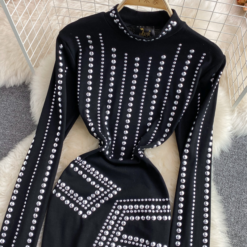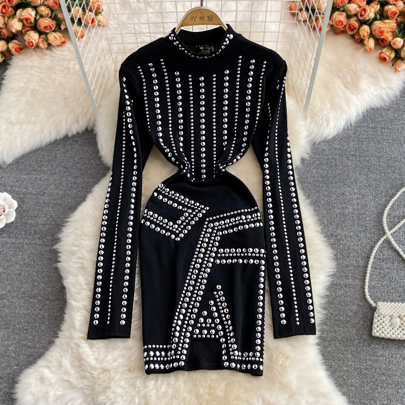 Осенняя ретро сексуальная эластичная базовая юбка, лонгслив, европейский стиль, в обтяжку, с акцентом на бедрах