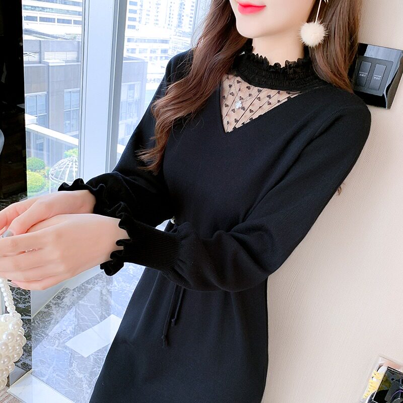 Трикотажное зимнее платье, длинная юбка, коллекция 2021, средней длины