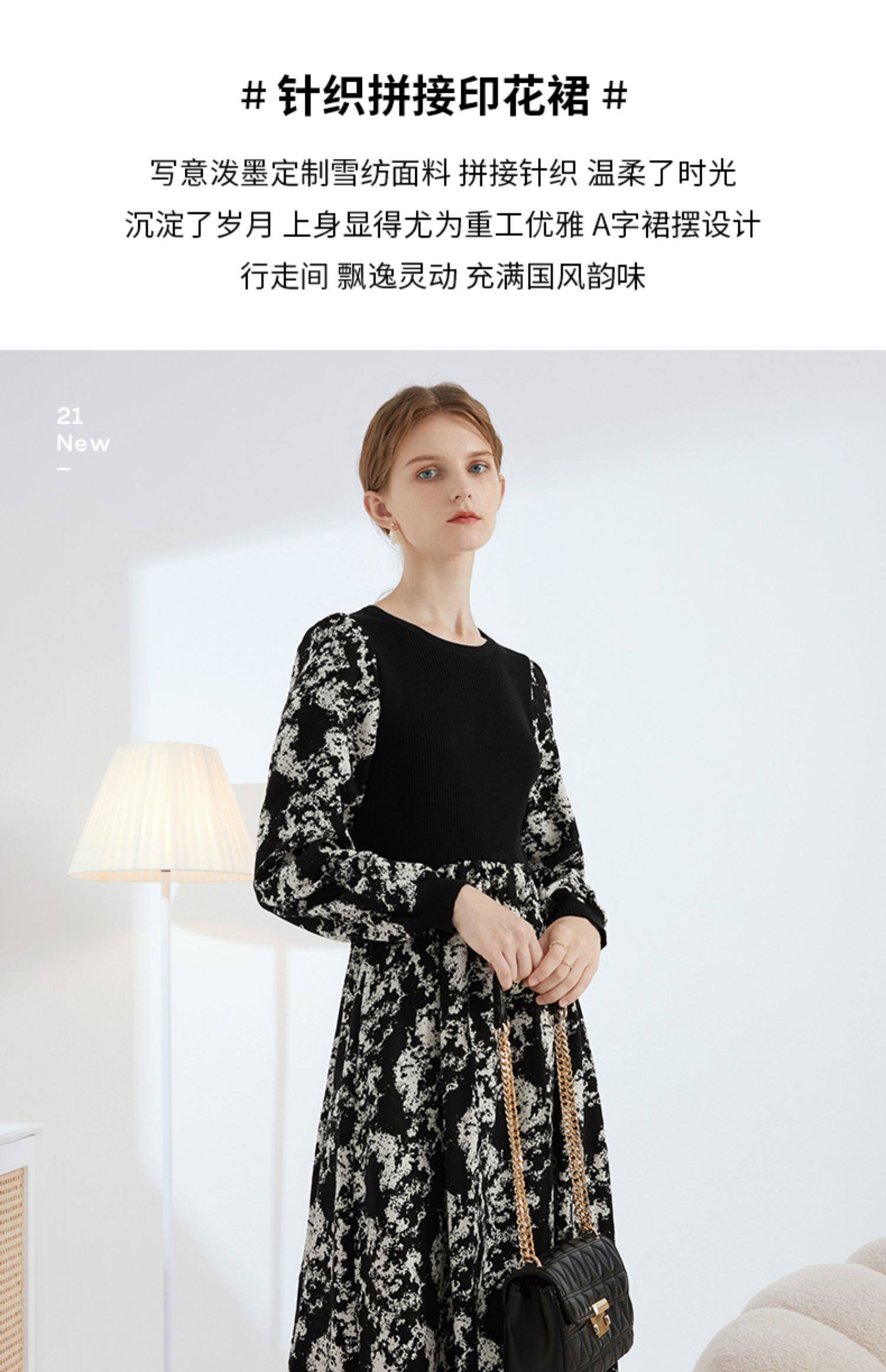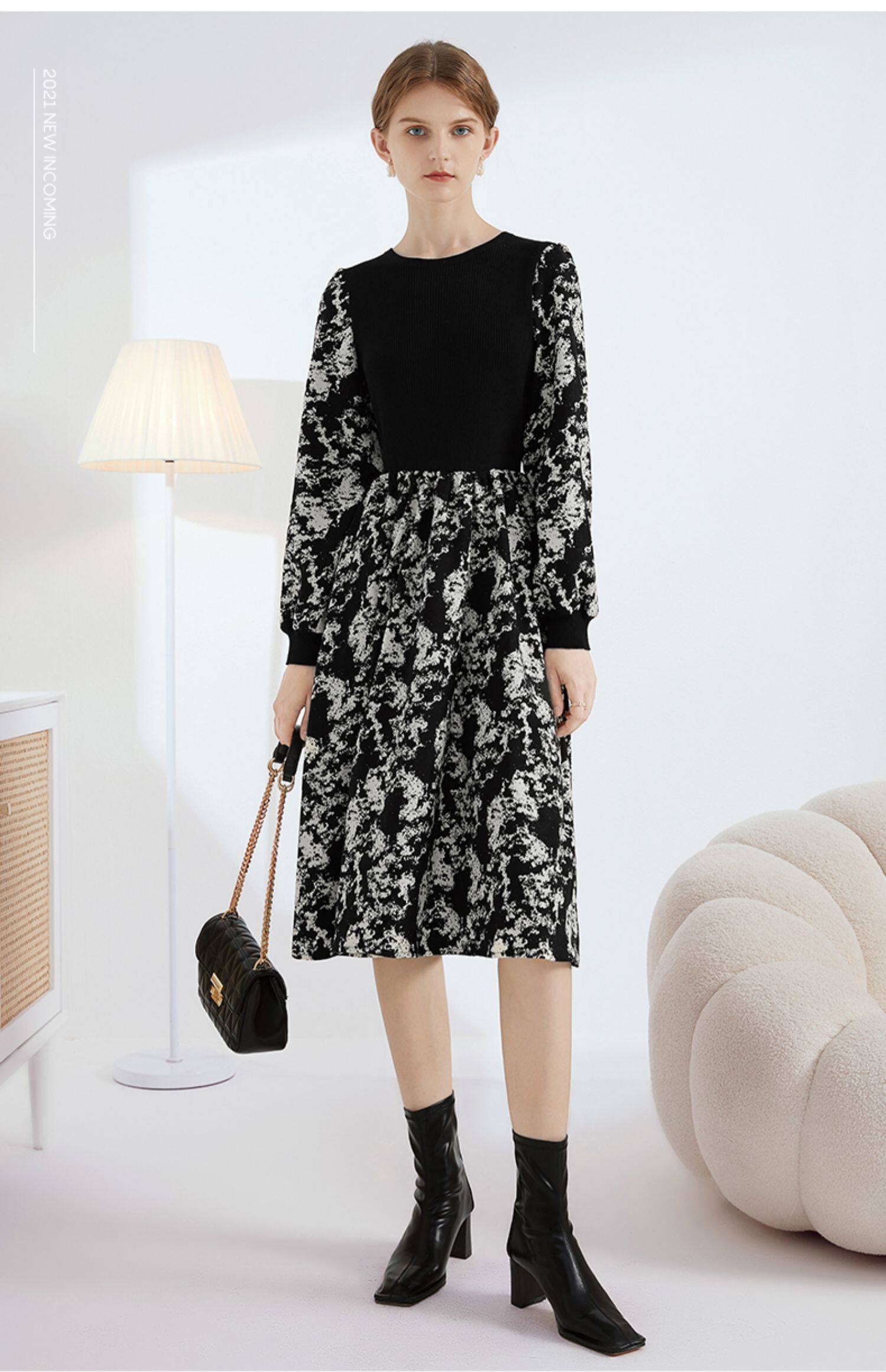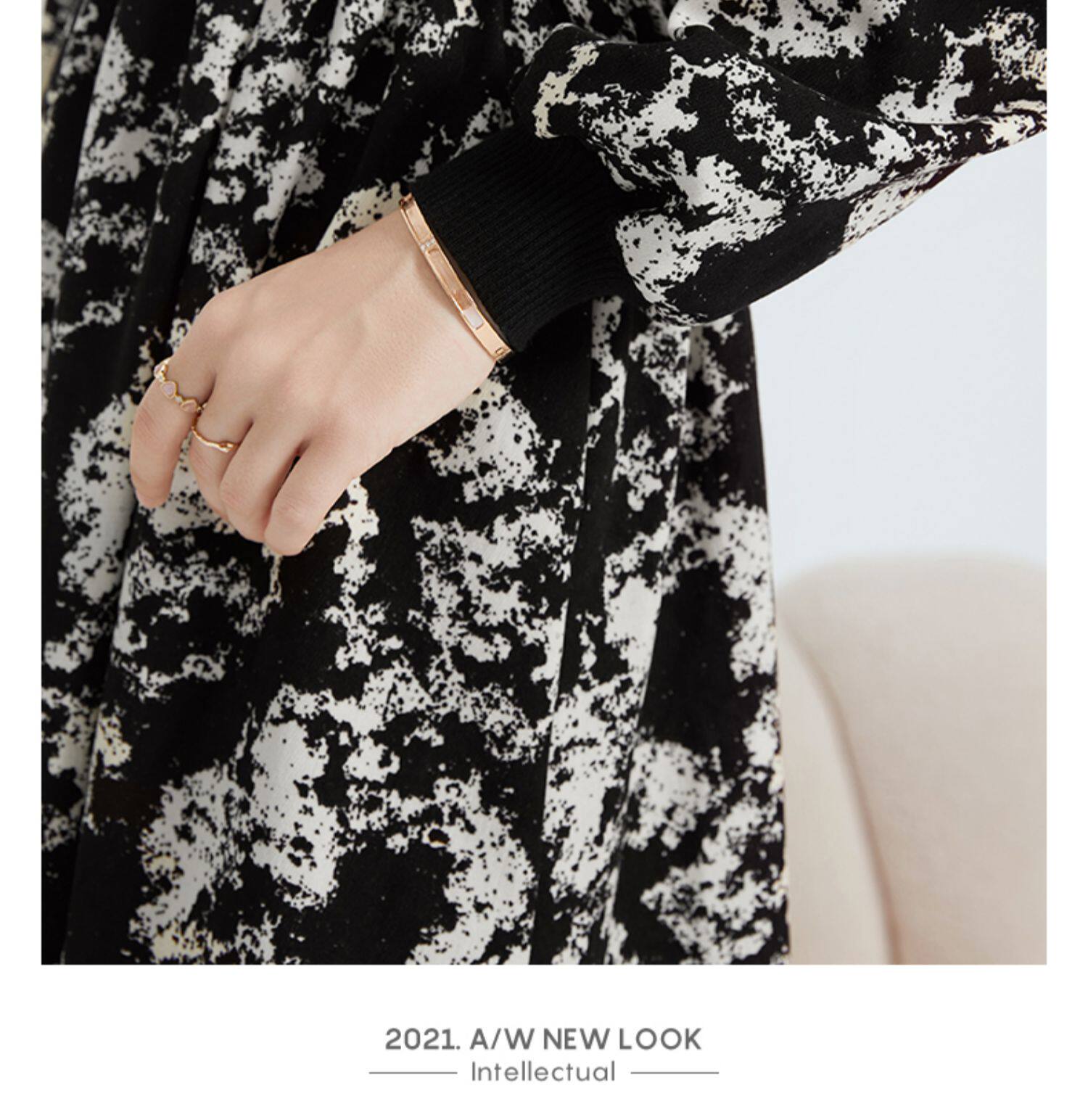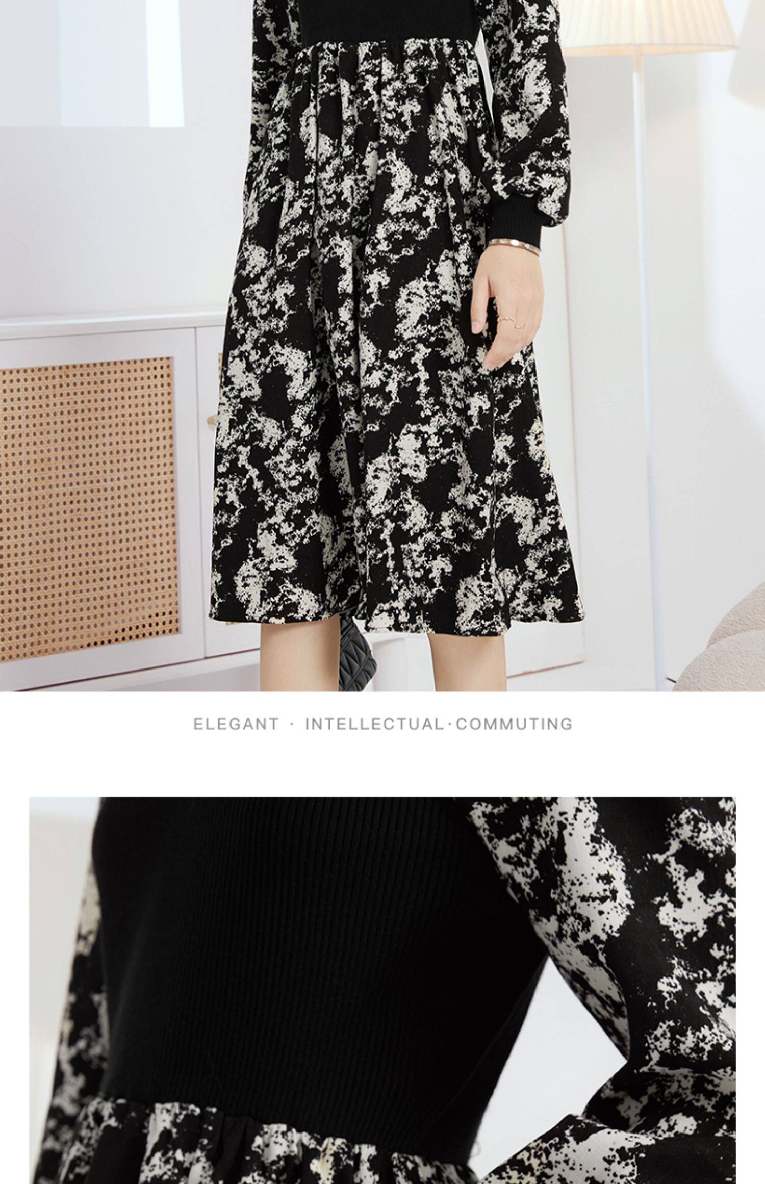 Демисезонное трикотажное длинное платье, базовая юбка, в цветочек, коллекция 2022, средней длины