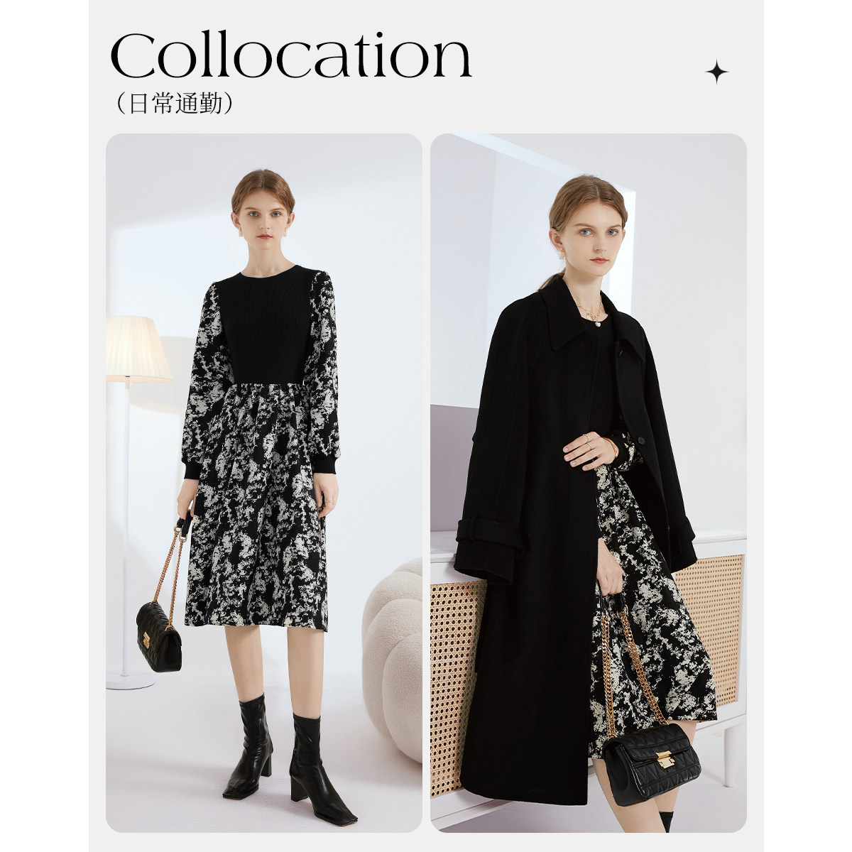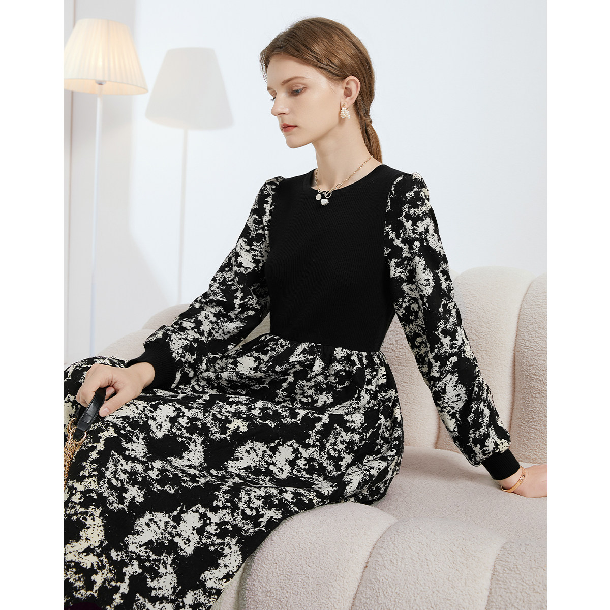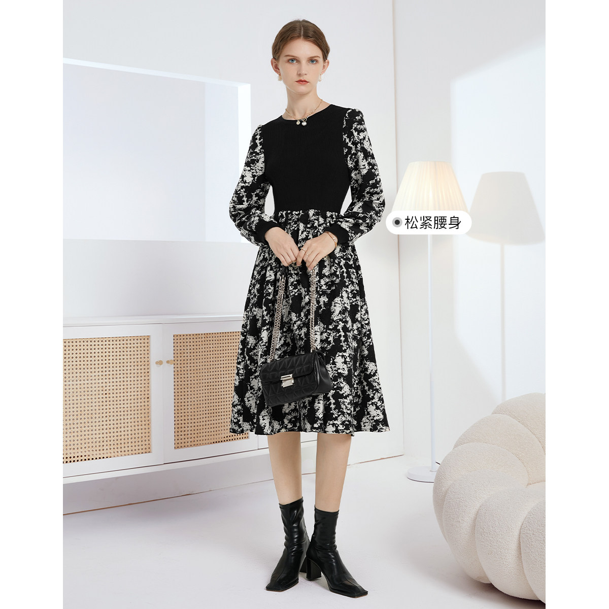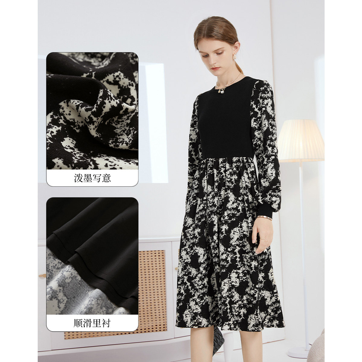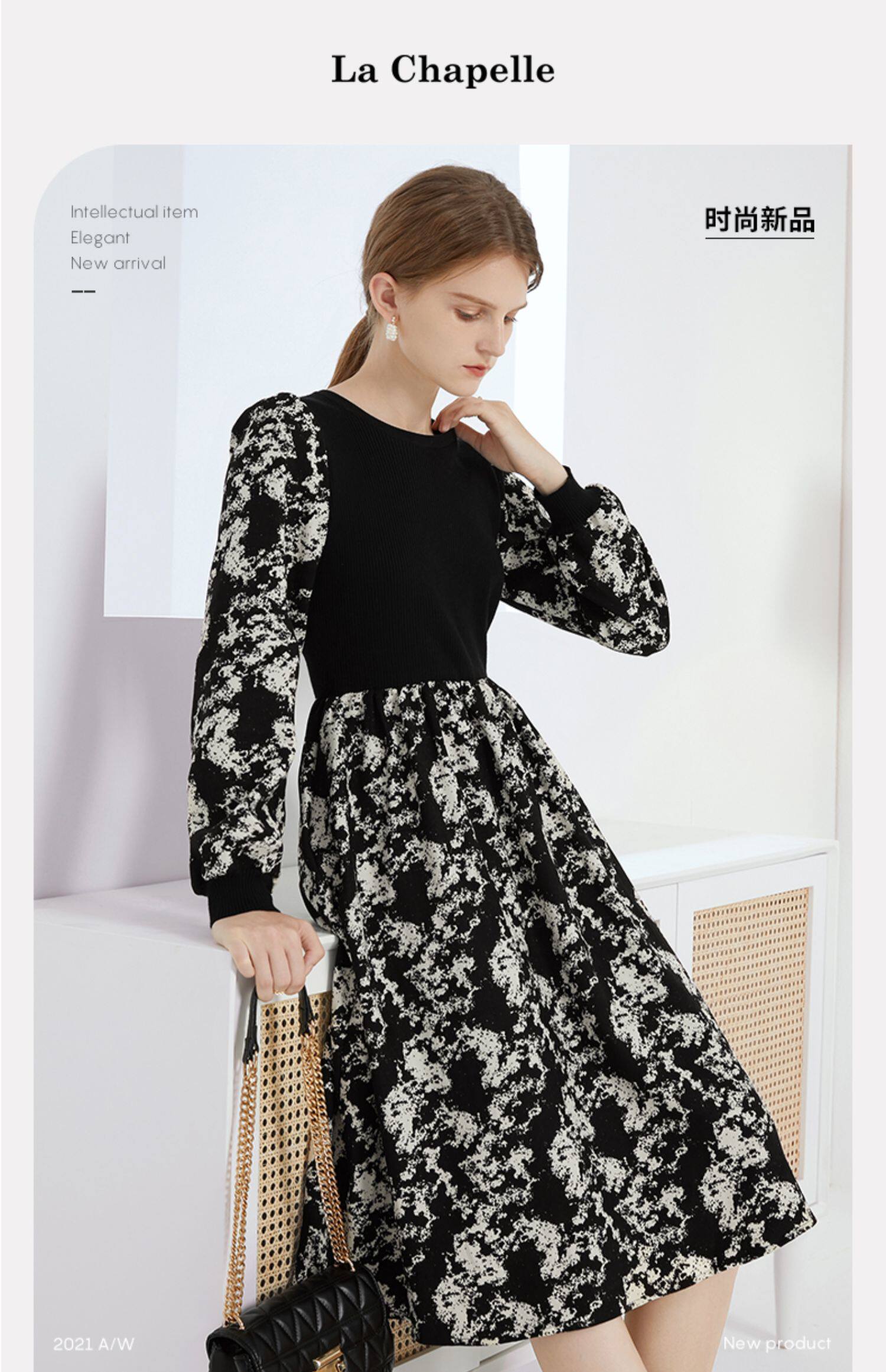 Демисезонное трикотажное длинное платье, базовая юбка, в цветочек, коллекция 2022, средней длины