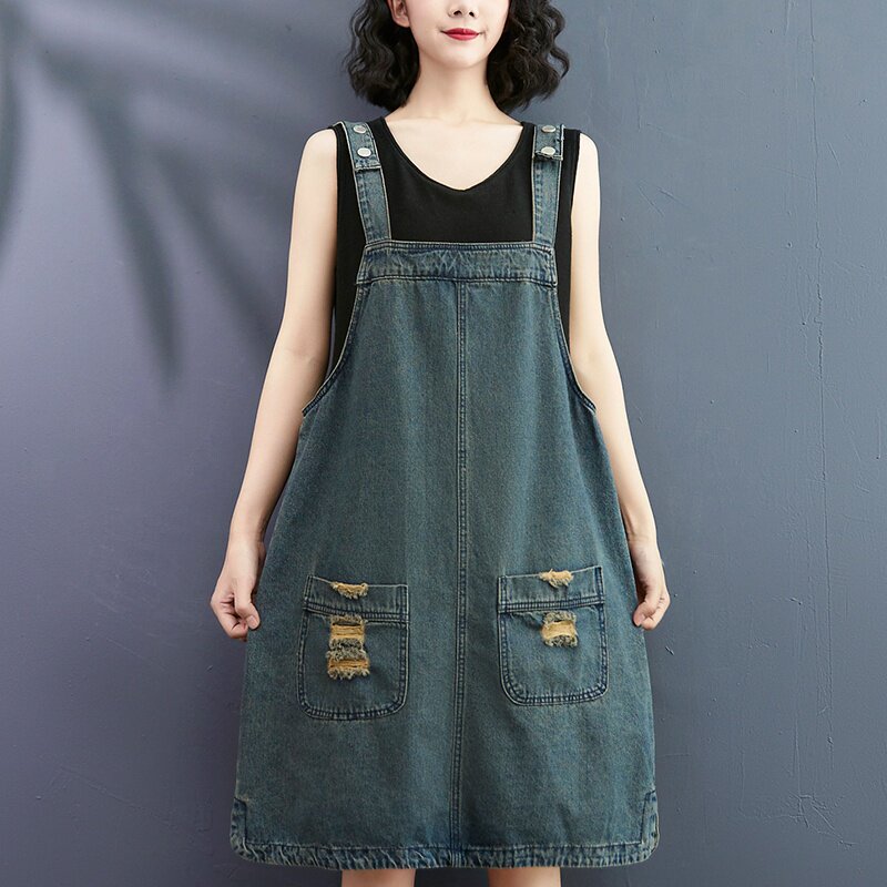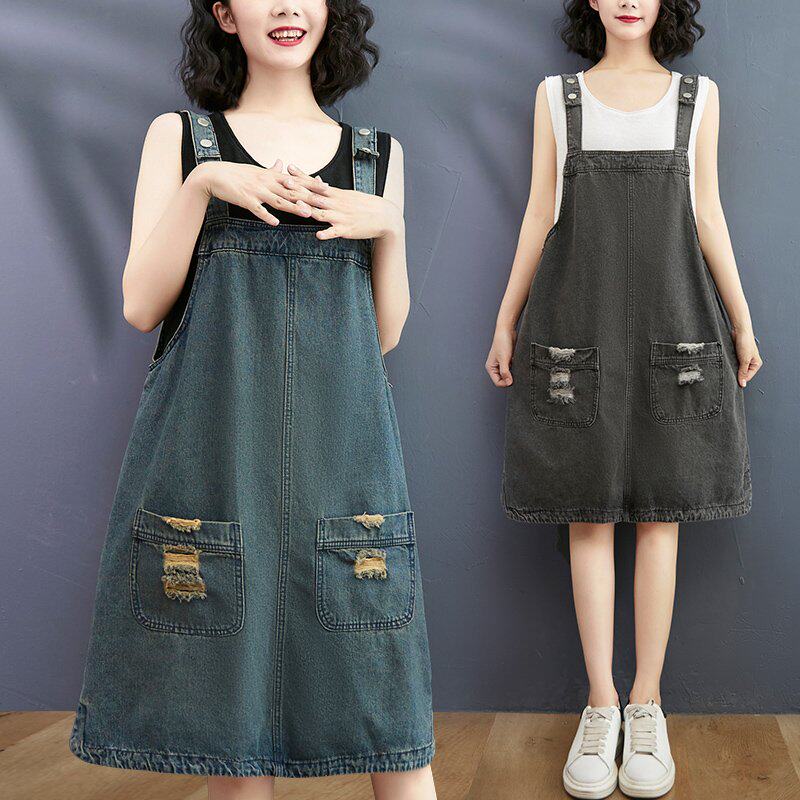 Ретро летнее платье большого размера, модное джинсовое платье-комбинация, сезон 2021, большой размер, по фигуре