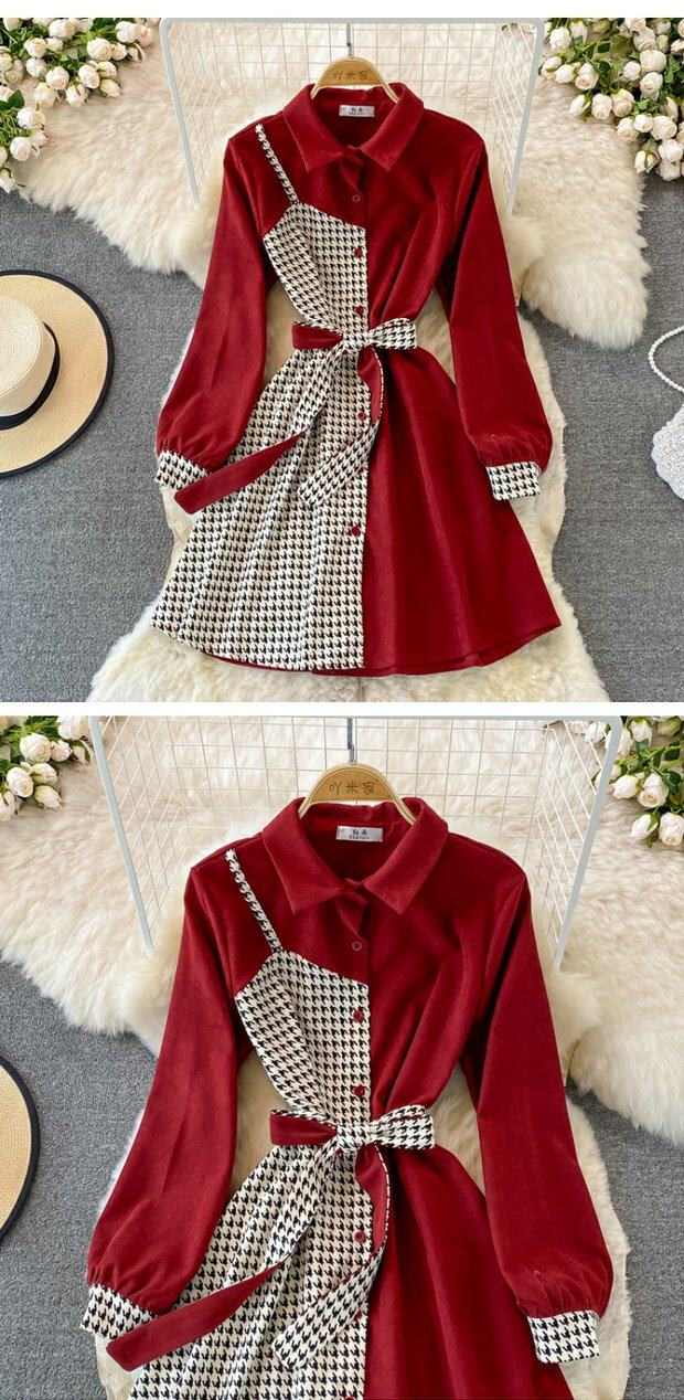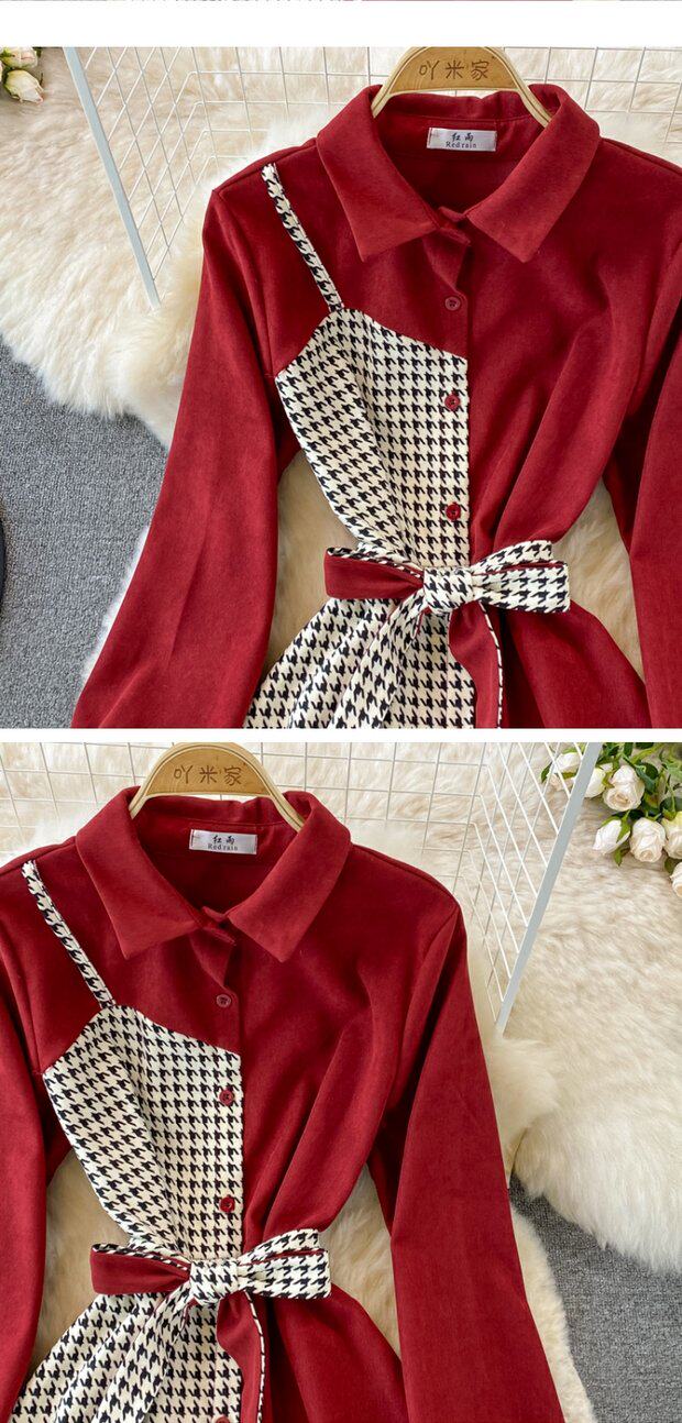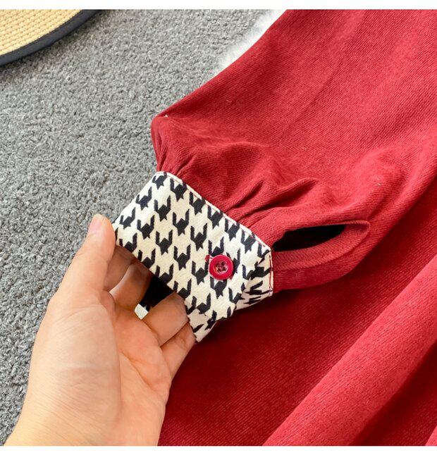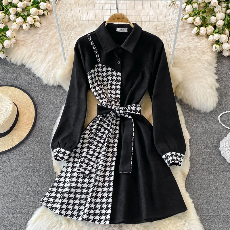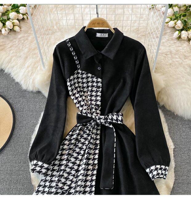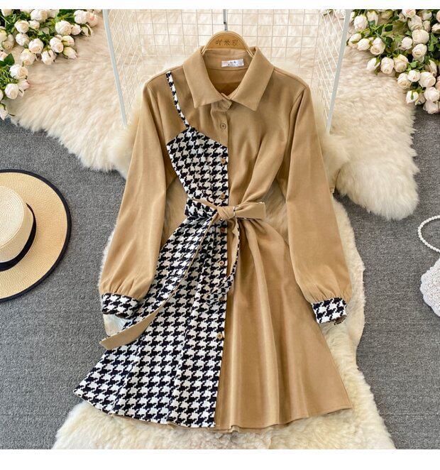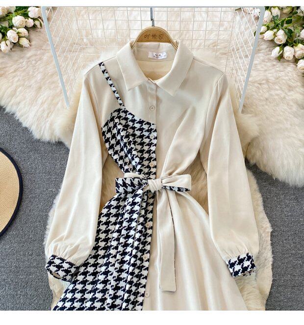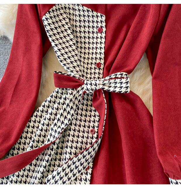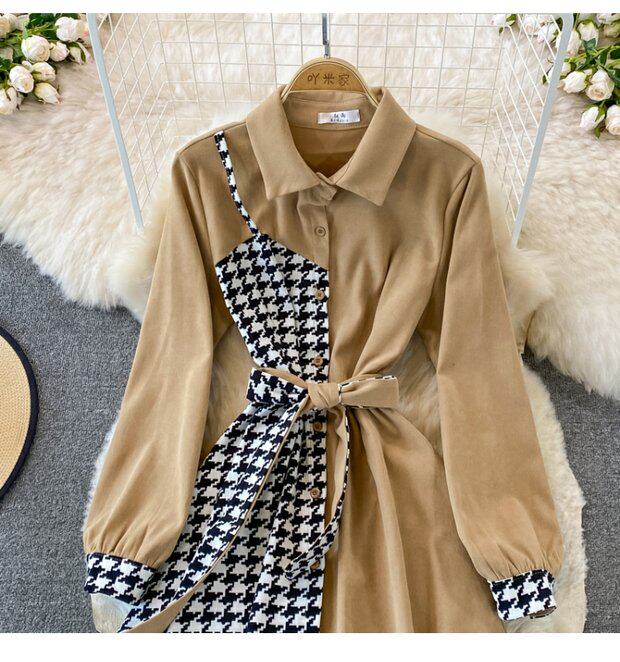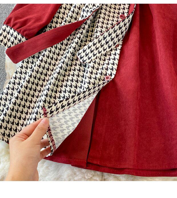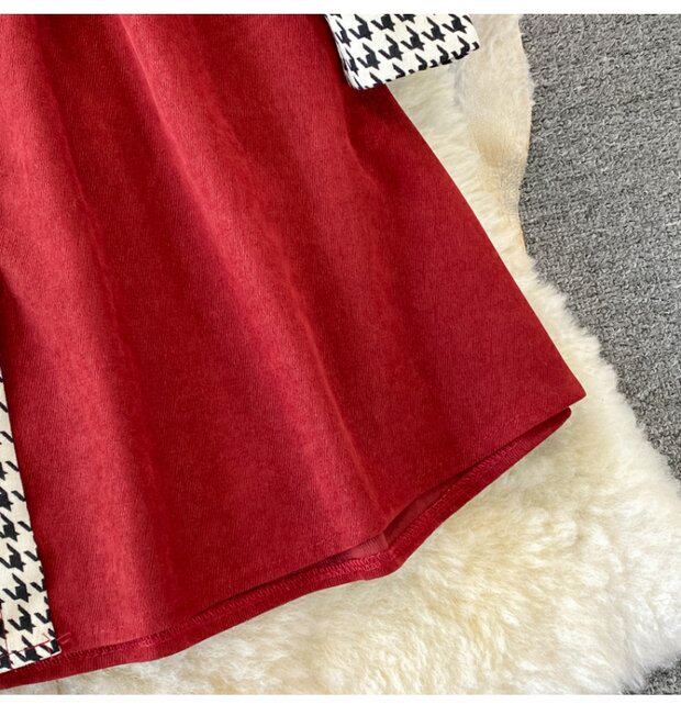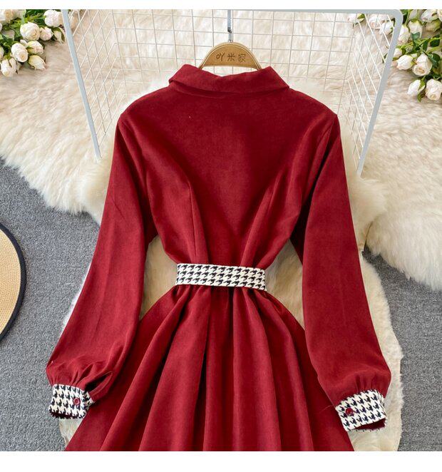 Комплект, осеннее демисезонное ретро платье, приталенный корсет, длинная юбка, французский ретро стиль, воротник поло, средней длины