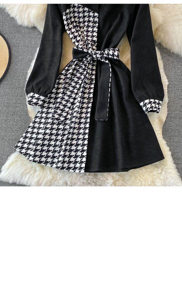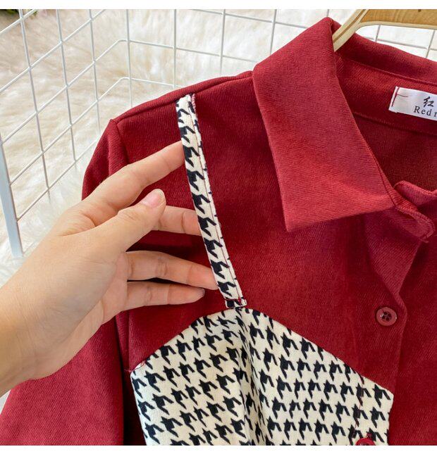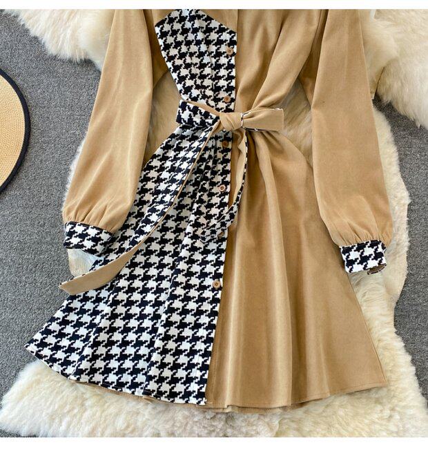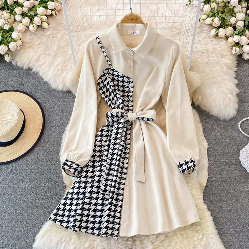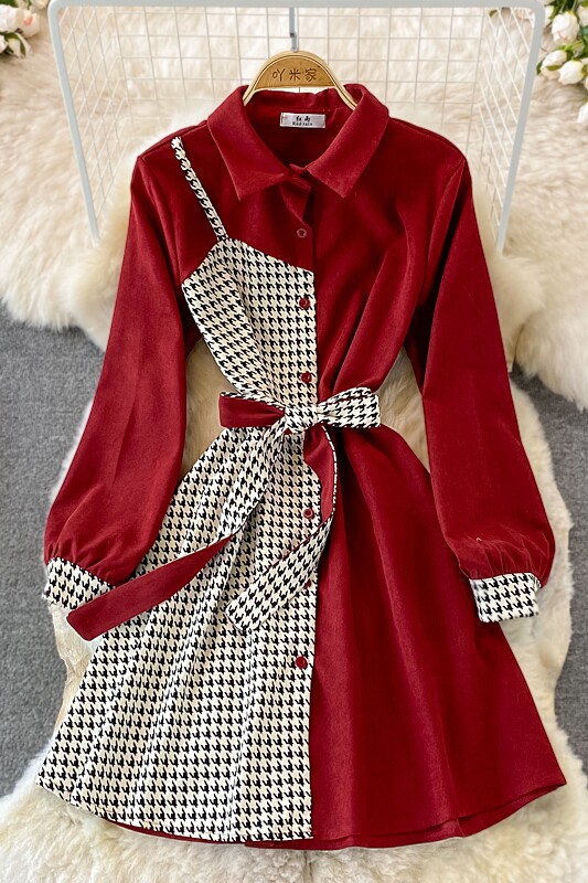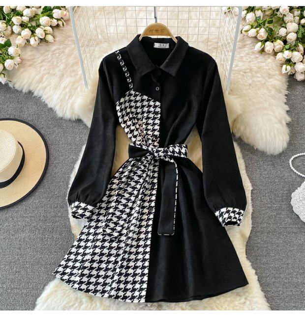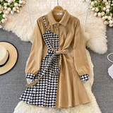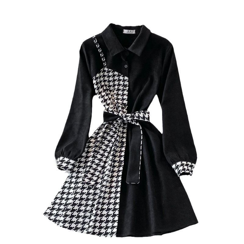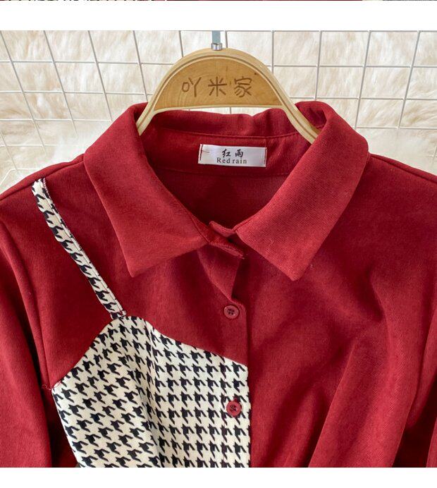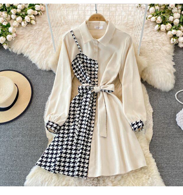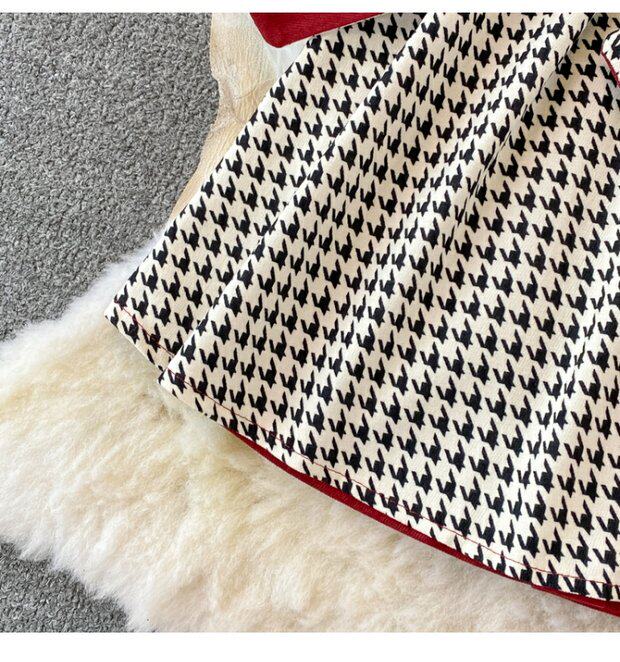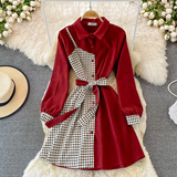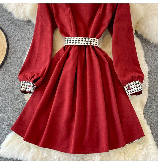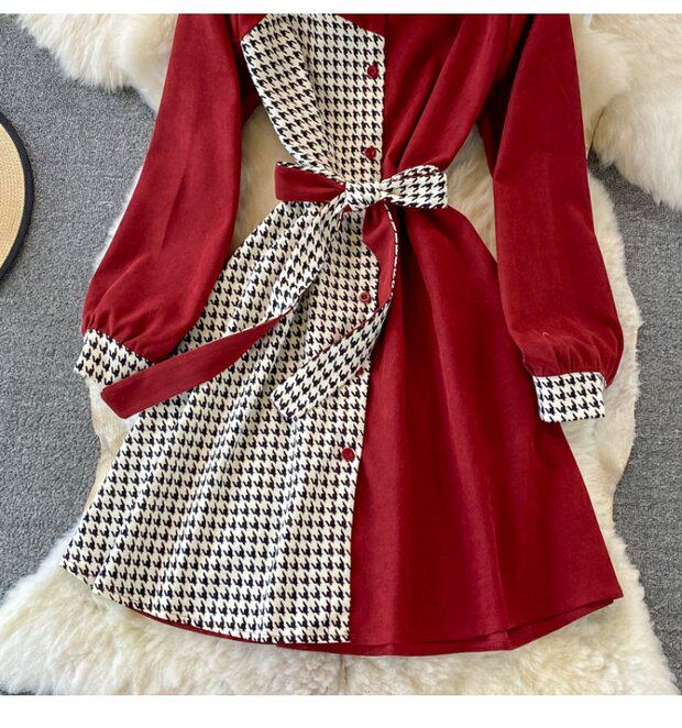 Комплект, осеннее демисезонное ретро платье, приталенный корсет, длинная юбка, французский ретро стиль, воротник поло, средней длины