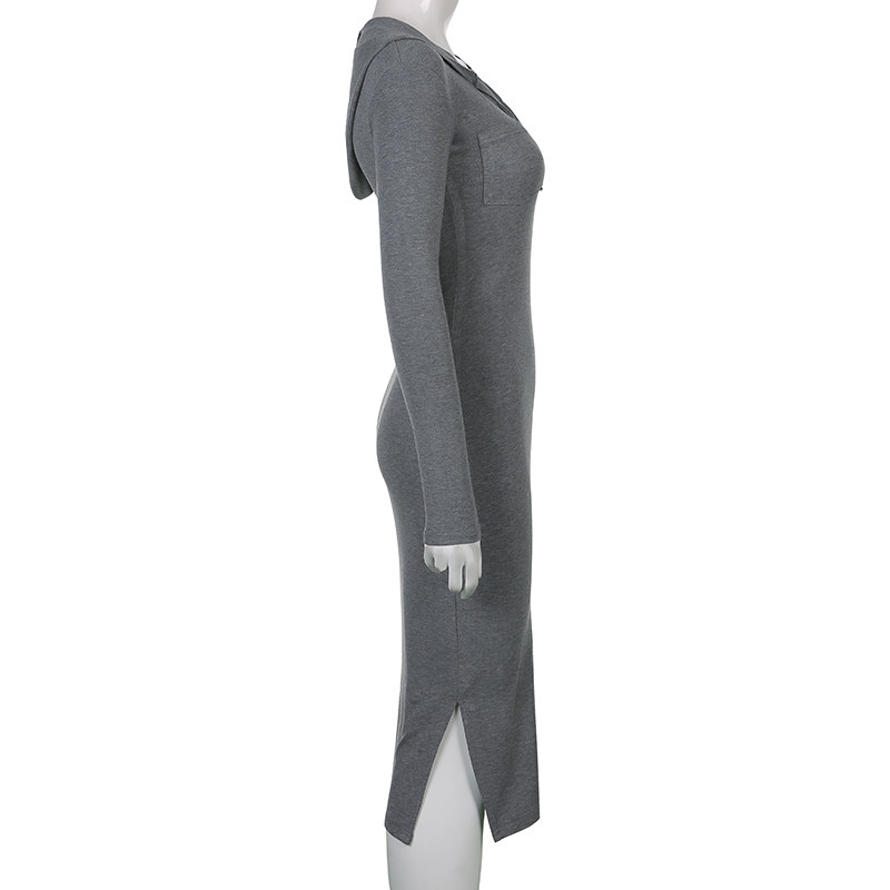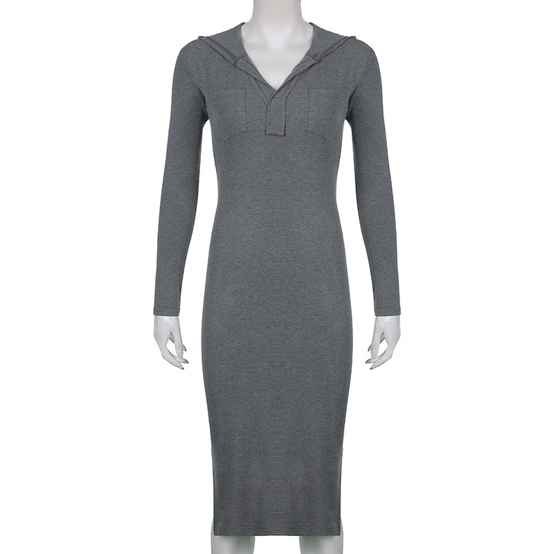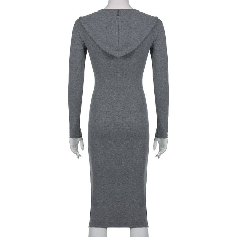 Длинная толстовка с капюшоном, приталенное платье, средней длины, высокая талия, с акцентом на бедрах