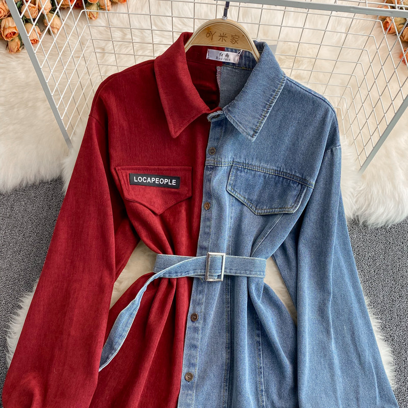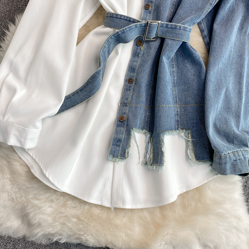 Джинсовый демисезонный приталенный корсет, рубашка, в корейском стиле, длина миди