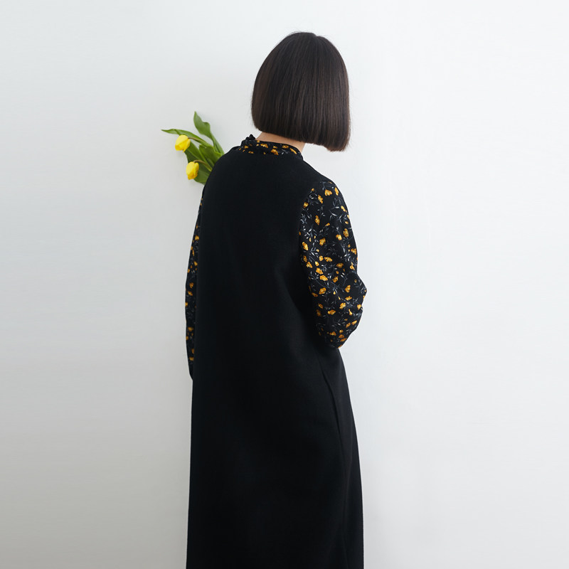 Шерстяное демисезонное платье без рукавов, черная ретро шерстяная длинная юбка без рукавов