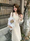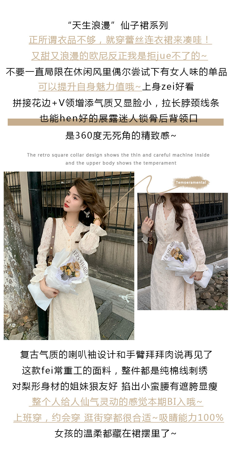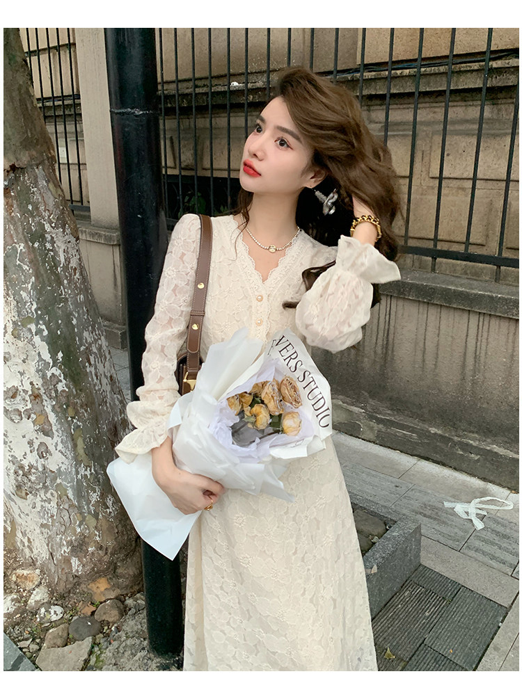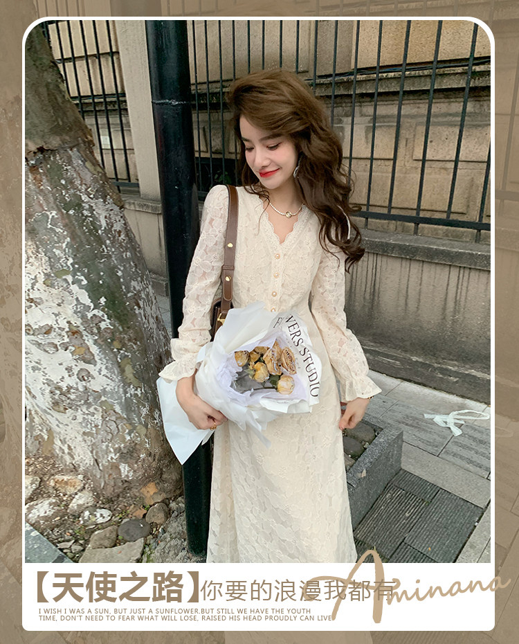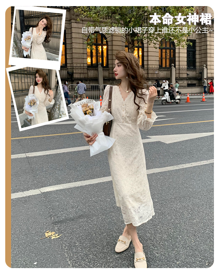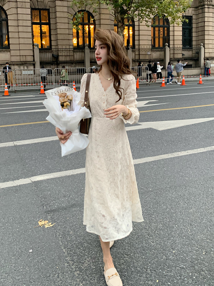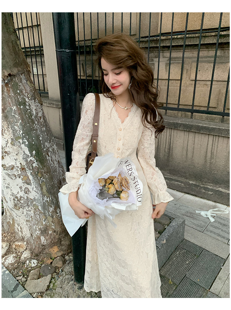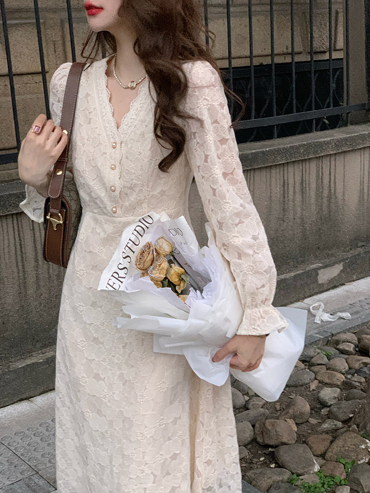 Осеннее ретро кружевное приталенное платье, корсет, длинная юбка, французский стиль, яркий броский стиль