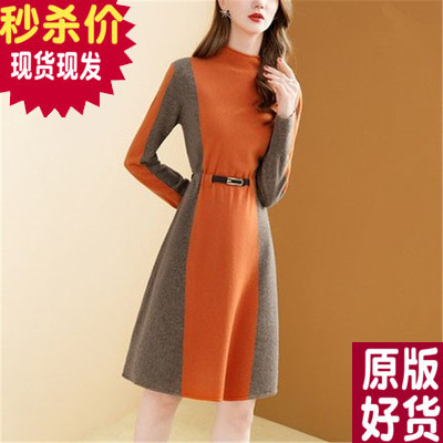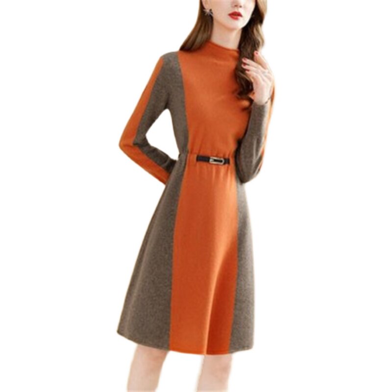Демисезонный шерстяной лонгслив, шерстяное платье, коллекция 2021, высокий воротник