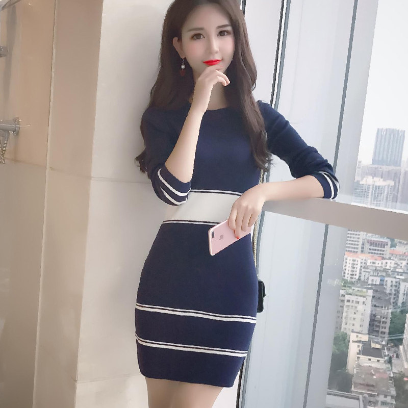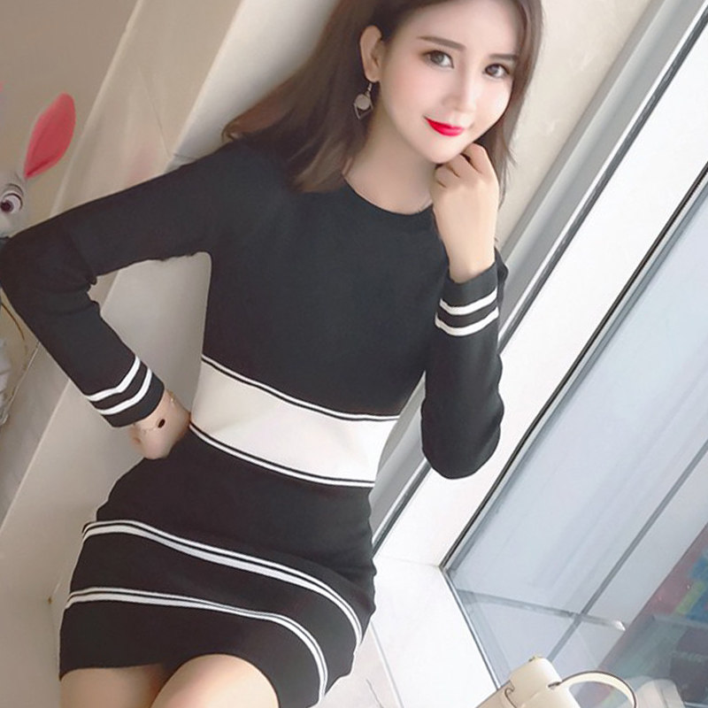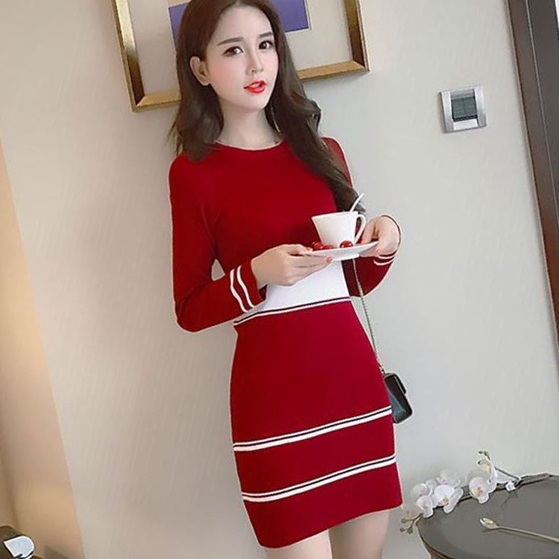 Длинная базовая приятная телу трикотажная юбка, лонгслив, демисезонное платье, средней длины, с акцентом на бедрах, в корейском стиле