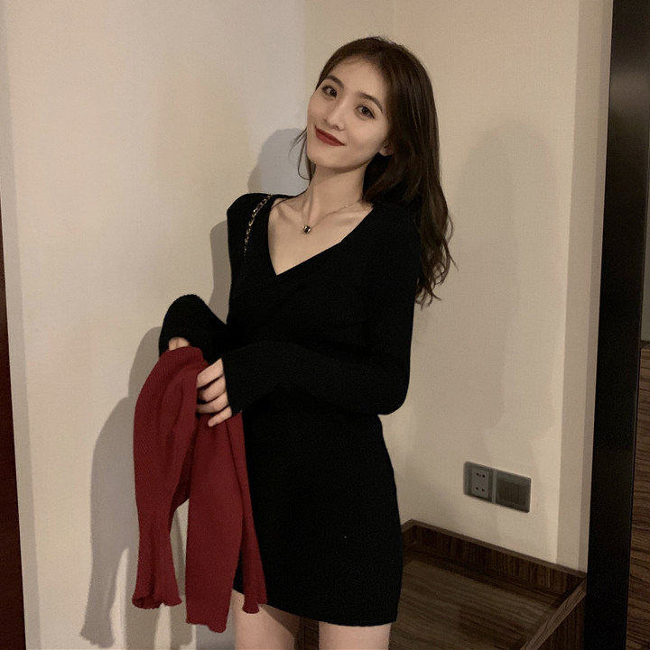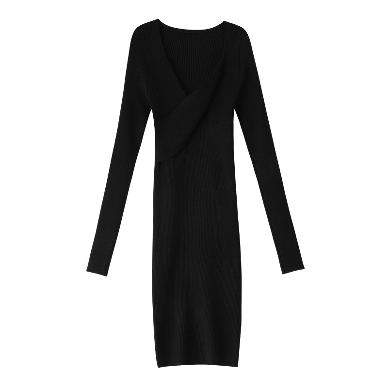 Черный лонгслив, трикотажное весеннее приталенное ретро базовое платье, тренд сезона, подходит для подростков, с акцентом на бедрах