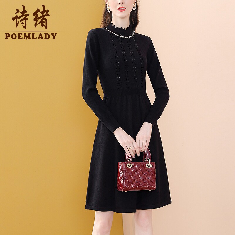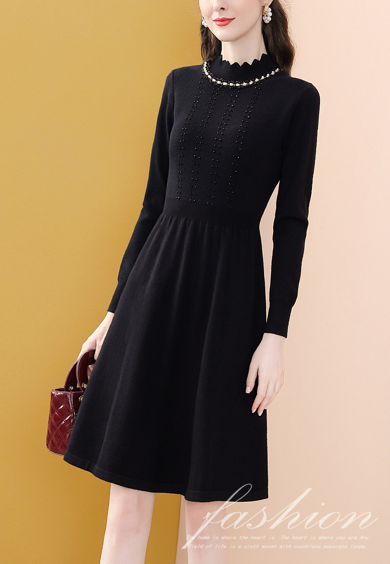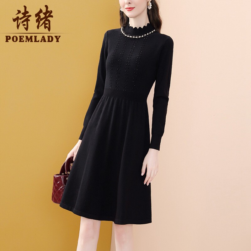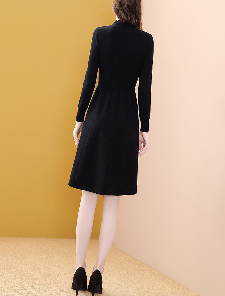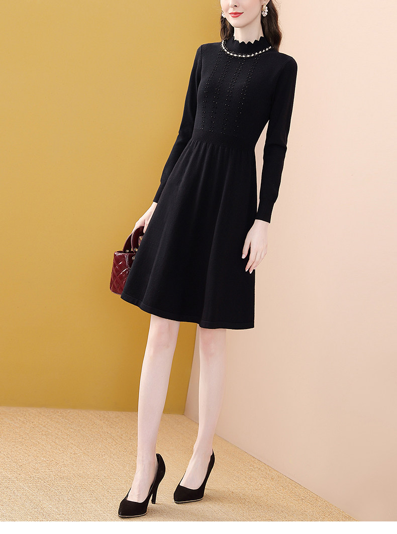 Модное черное длинное зимнее приталенное трикотажное платье, французский стиль, средней длины