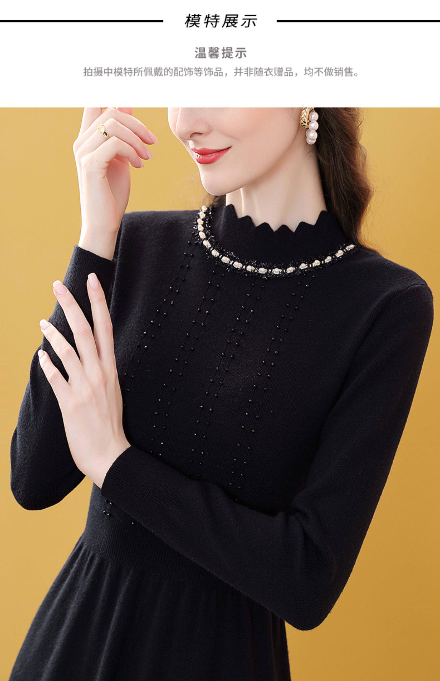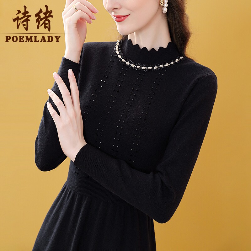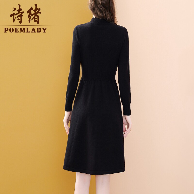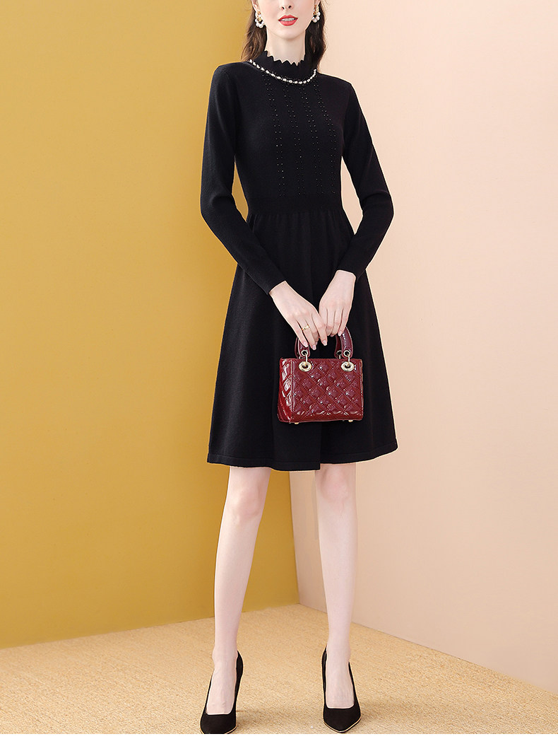 Модное черное длинное зимнее приталенное трикотажное платье, французский стиль, средней длины