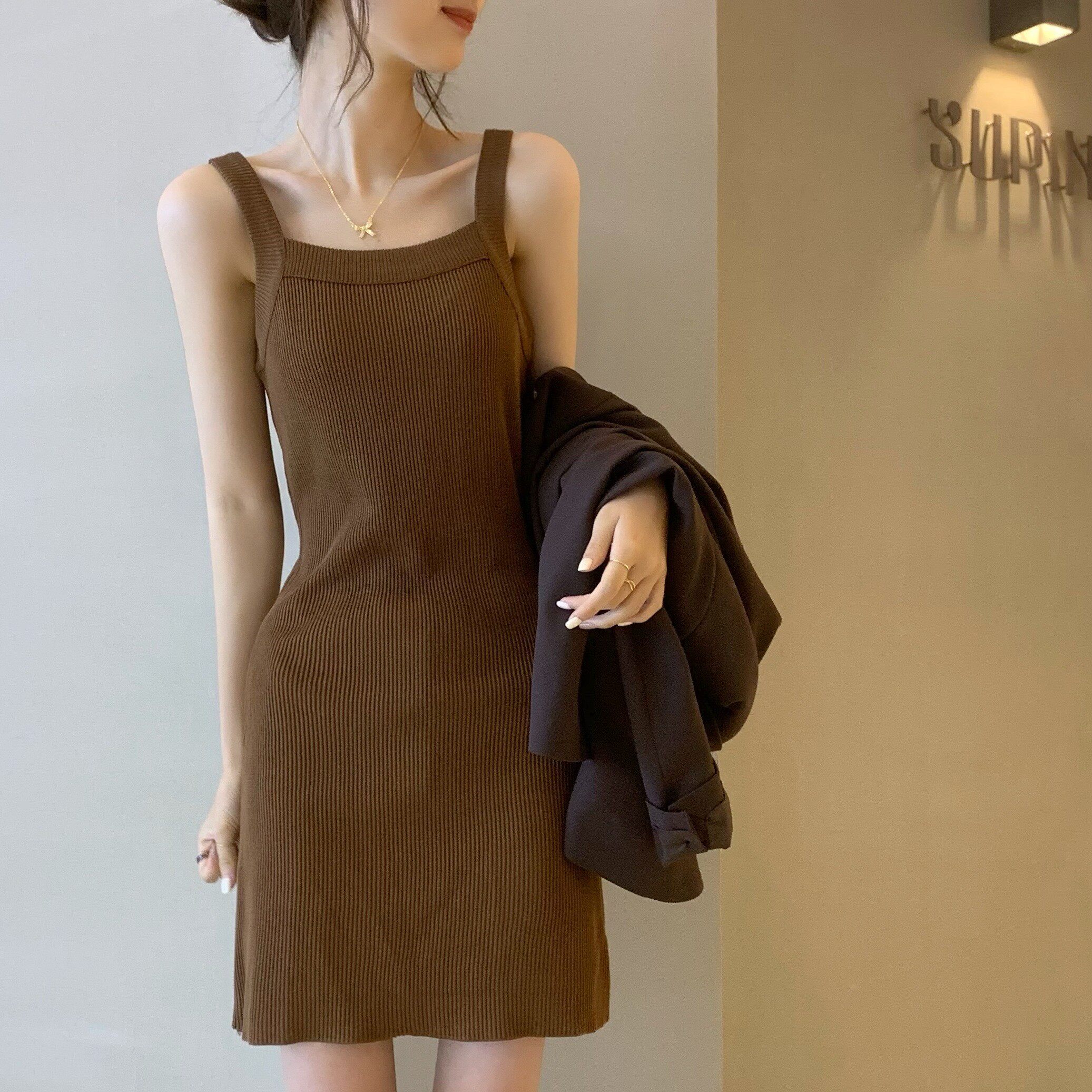 Майка, топ с чашечками, весеннее приталенное базовое платье, 2024 года, городской стиль