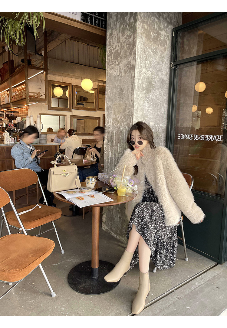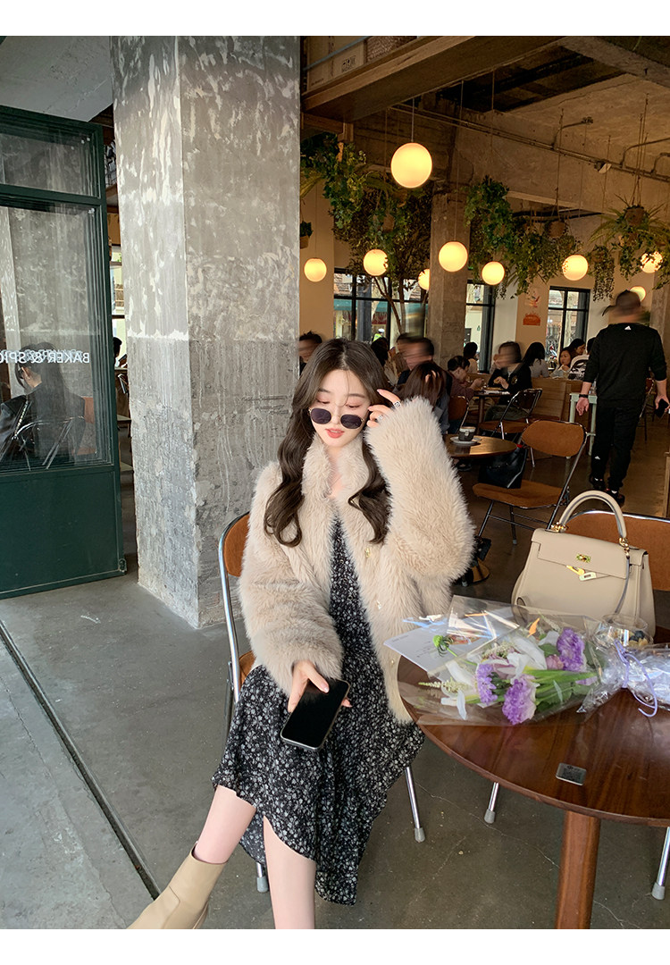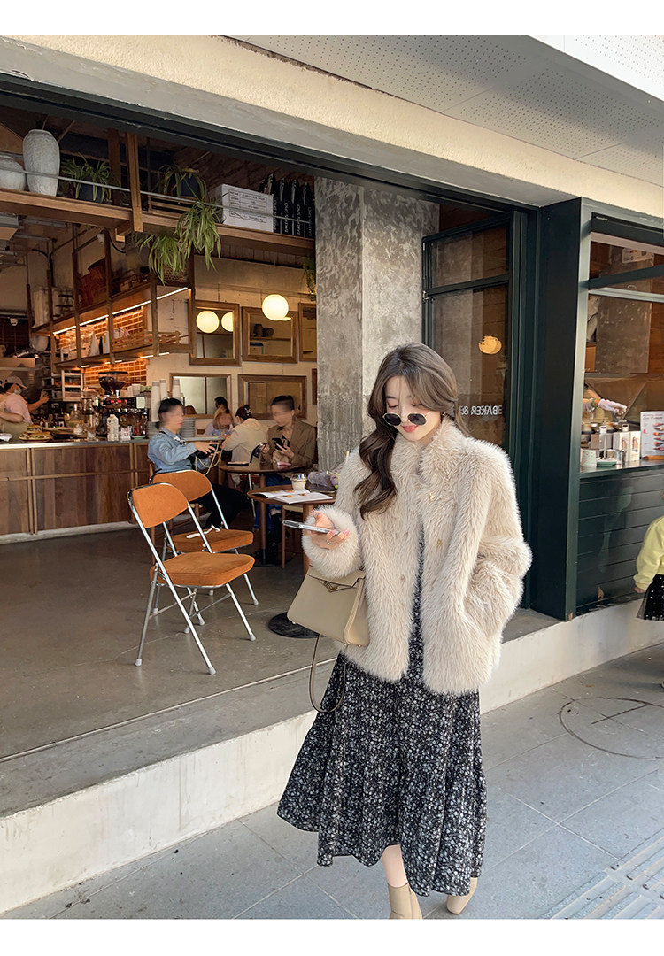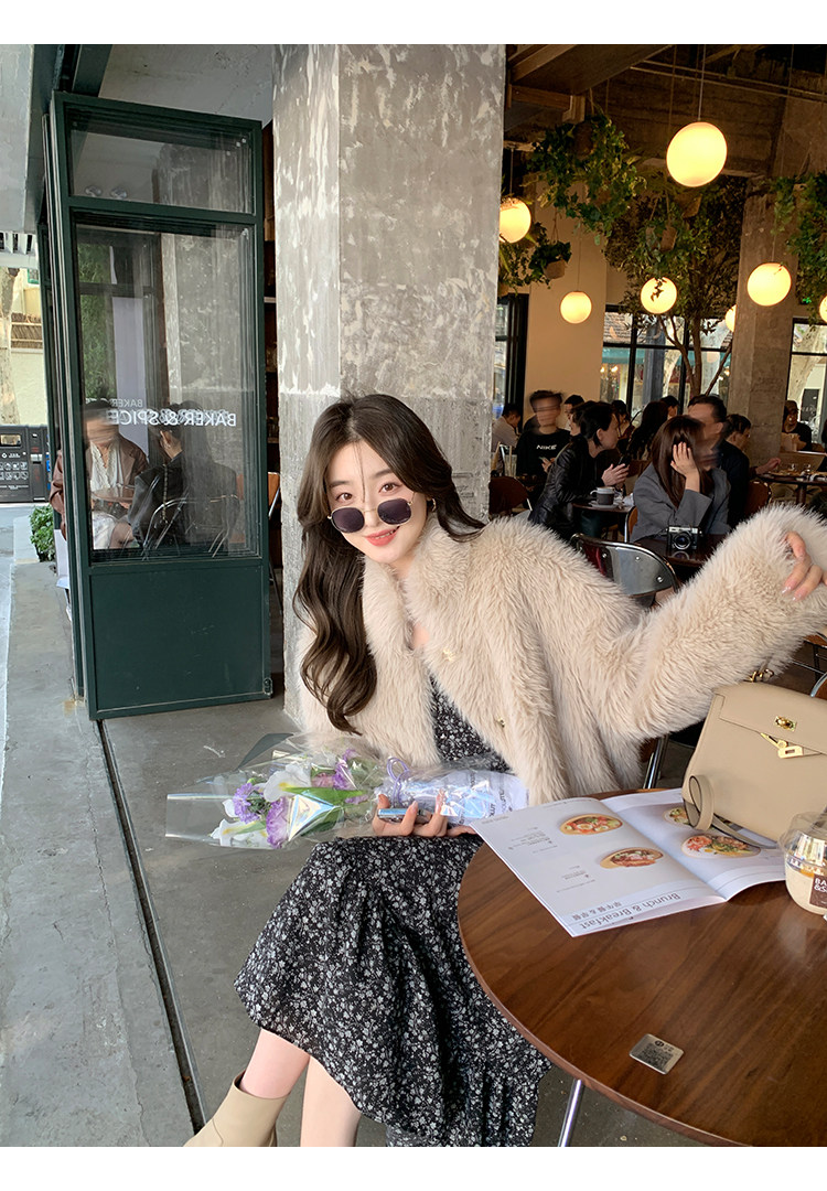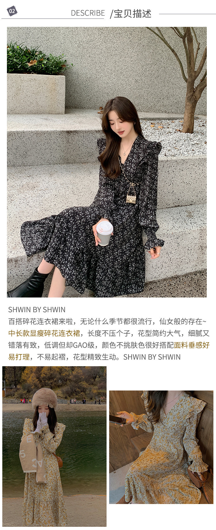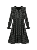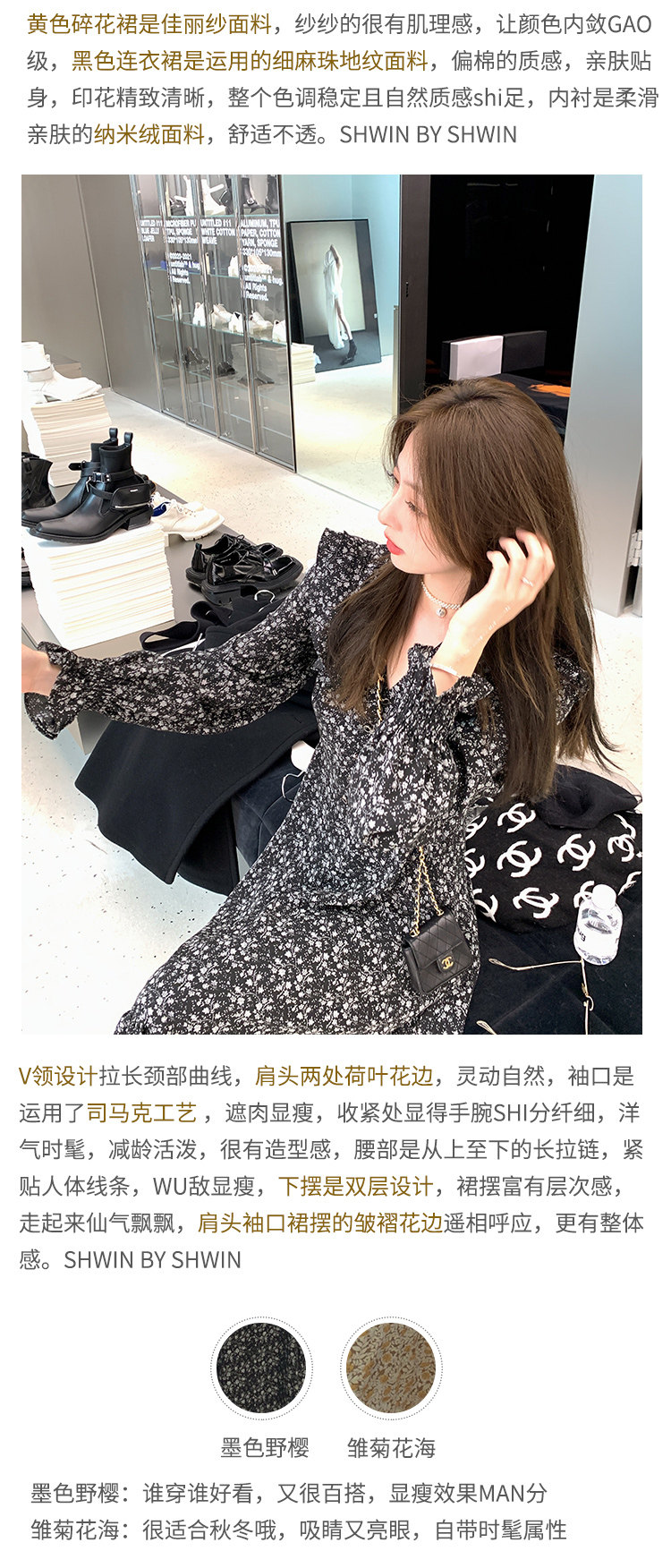 Шифоновый фонарь, осеннее платье, французский стиль, V-образный вырез, в цветочек