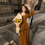 Демисезонное ретро винтажное платье, базовый корсет, длинная юбка, французский ретро стиль, яркий броский стиль, по фигуре