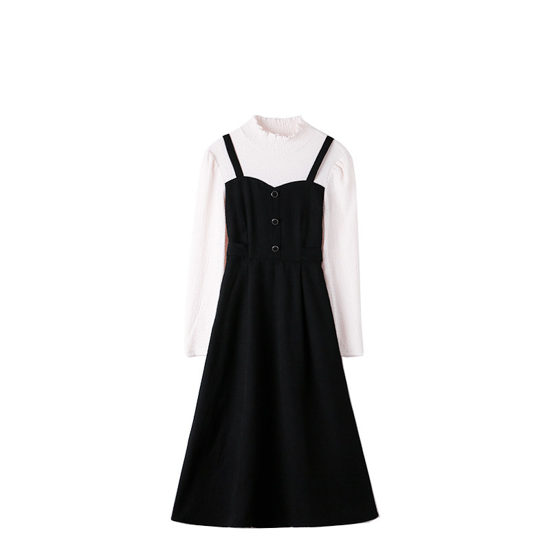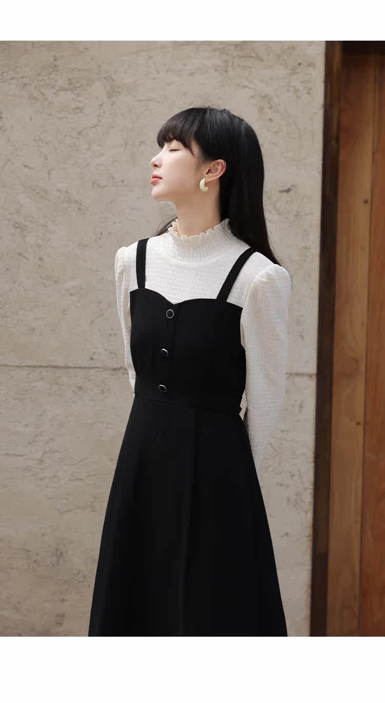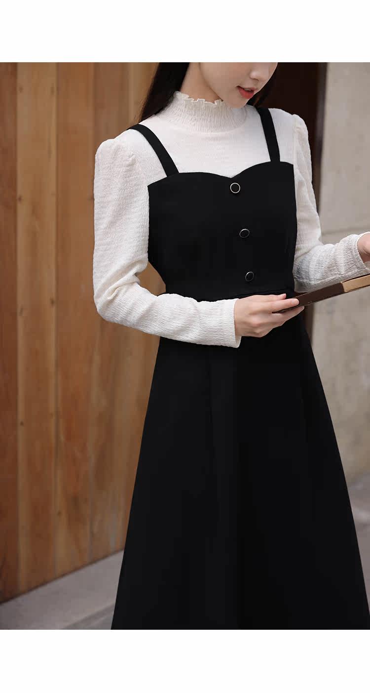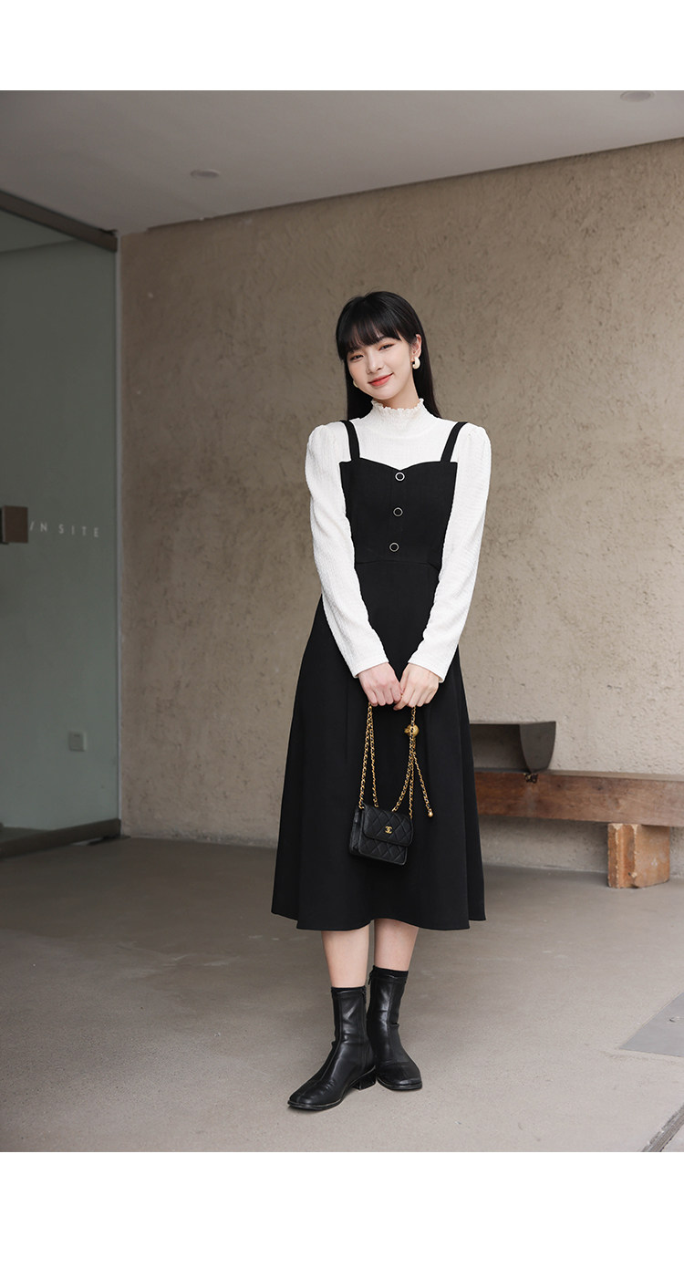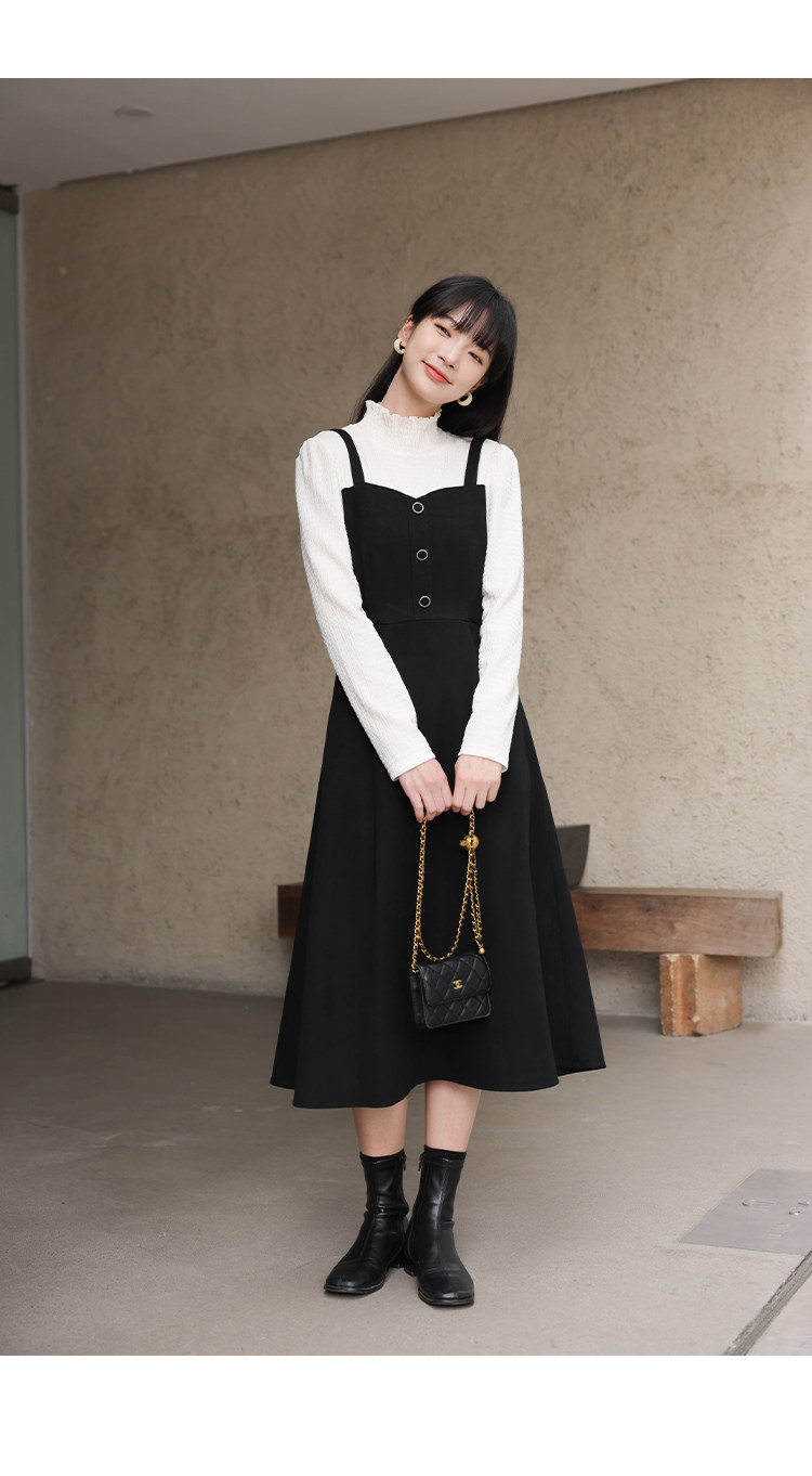 Черный комплект, весеннее платье, длинная юбка, тренд сезона, высокий воротник, средней длины