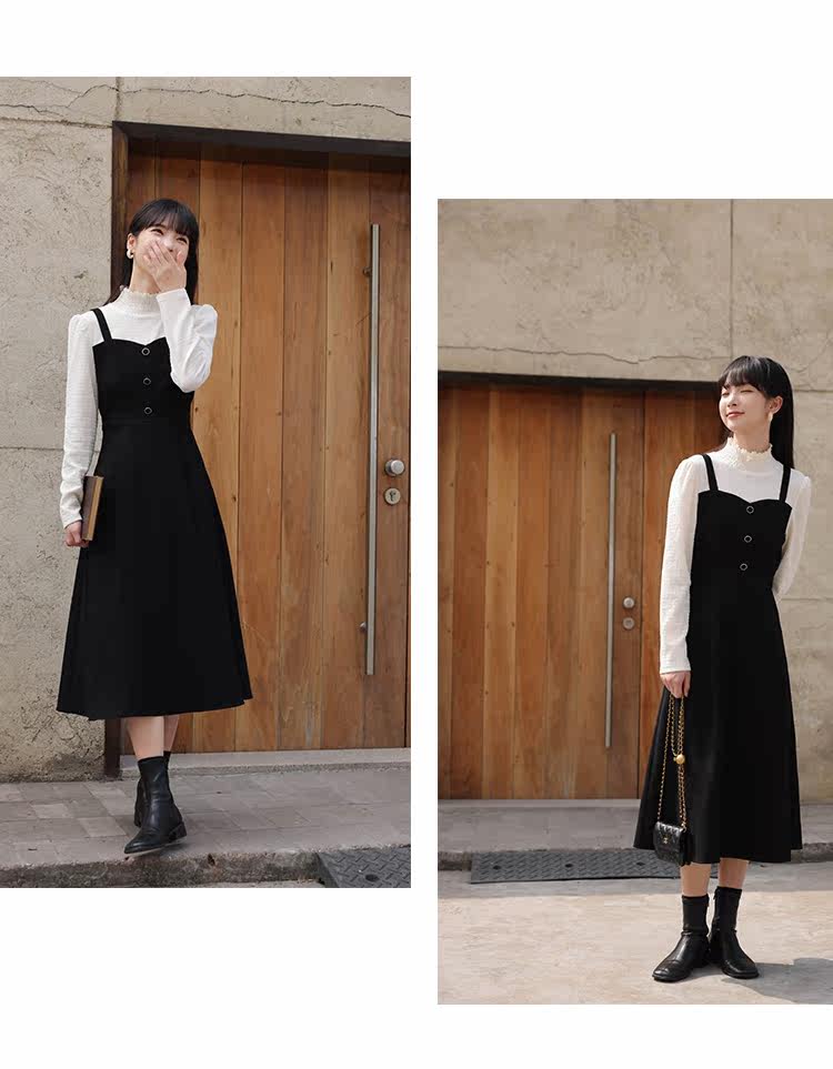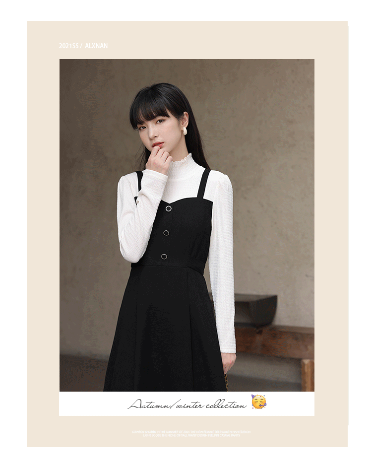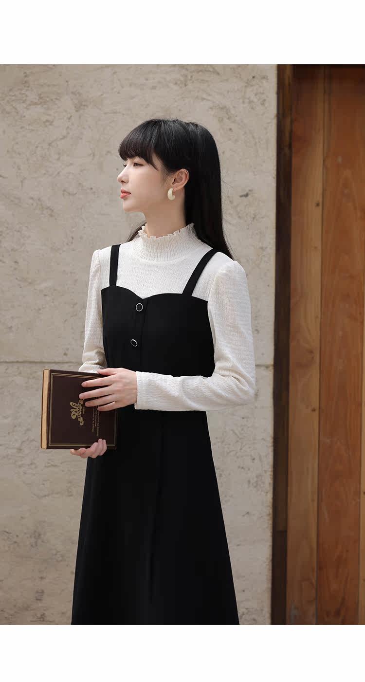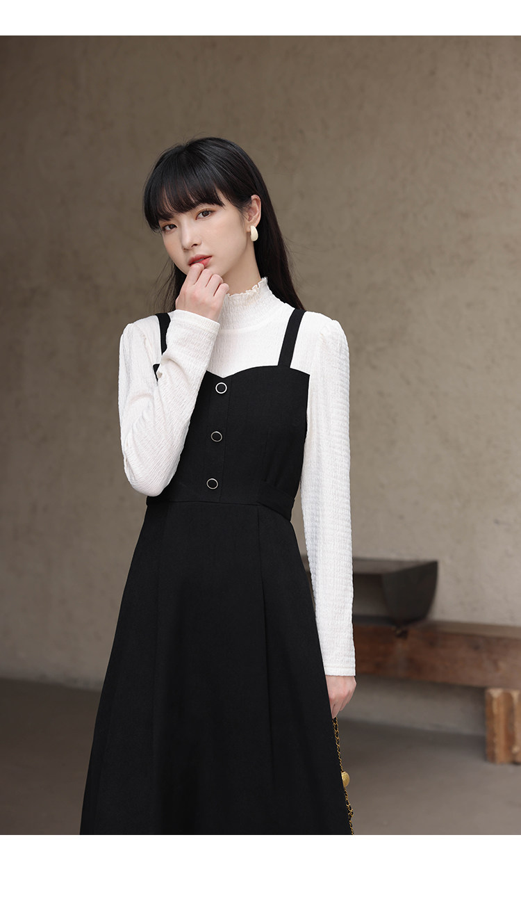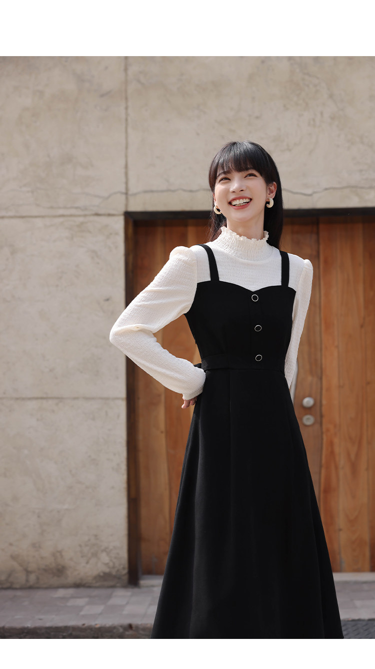 Черный комплект, весеннее платье, длинная юбка, тренд сезона, высокий воротник, средней длины