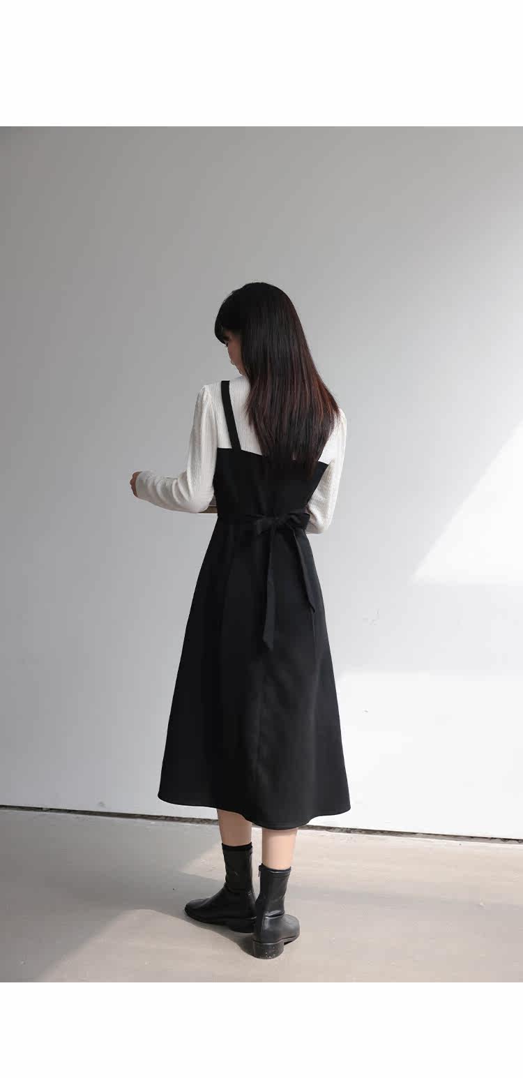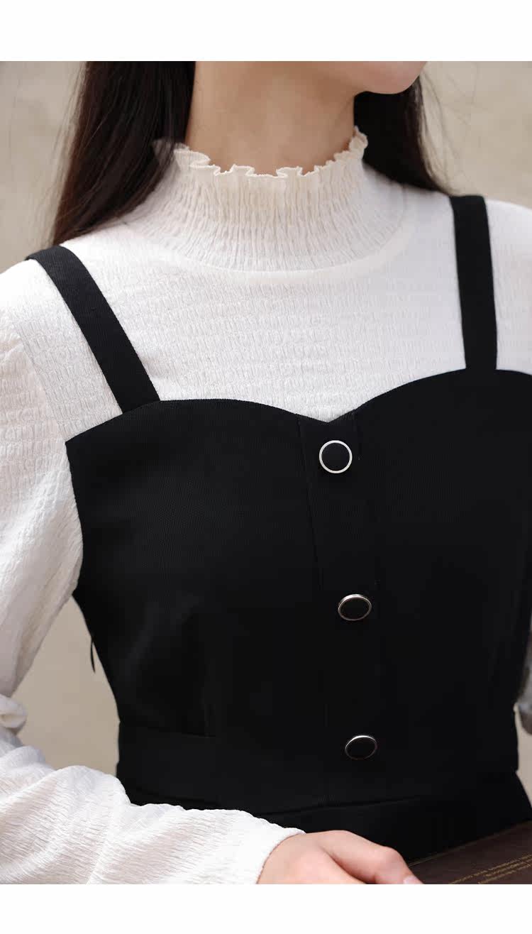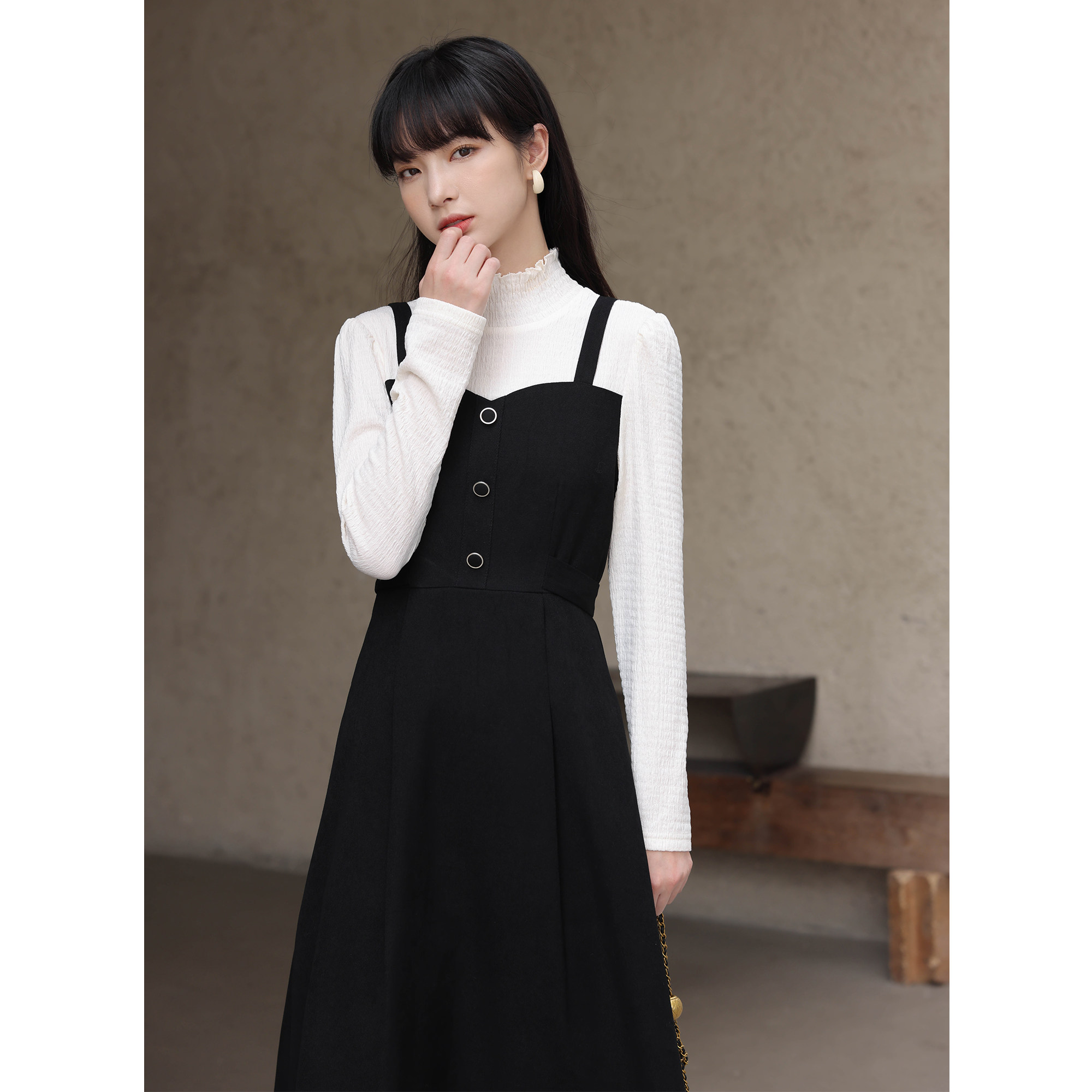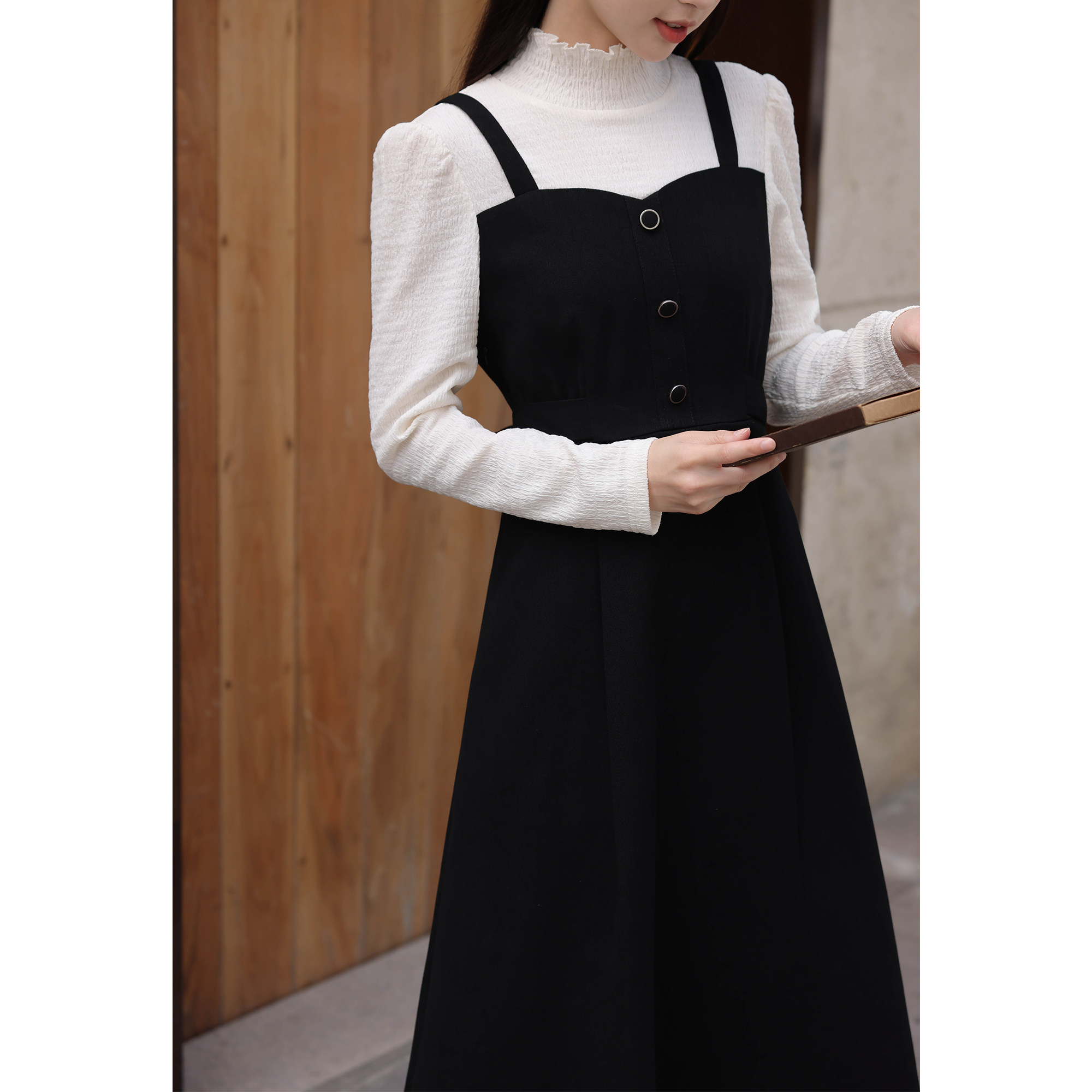 Черный комплект, весеннее платье, длинная юбка, тренд сезона, высокий воротник, средней длины