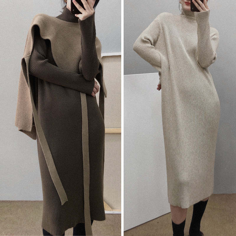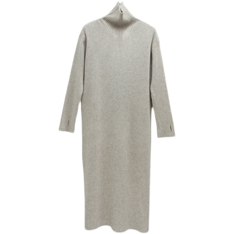 Трикотажное зимнее длинное базовое платье, свободный крой, средней длины