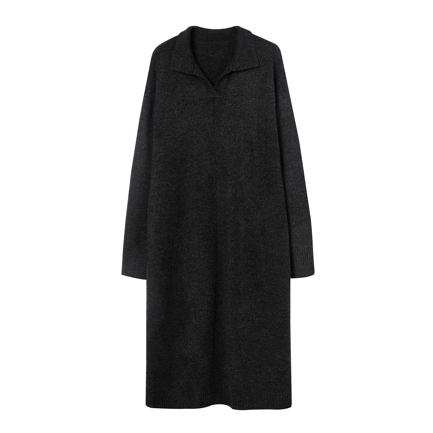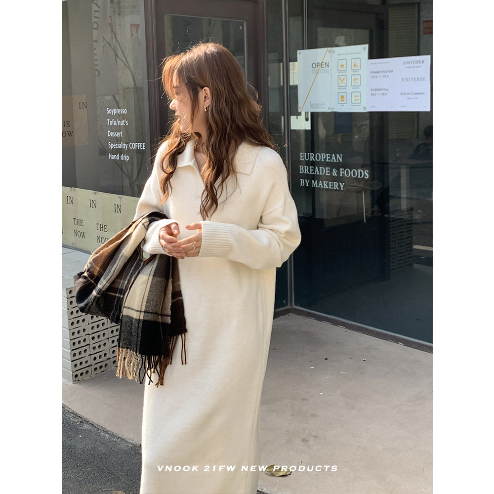 Базовая демисезонная длинная юбка, шерстяное платье, воротник поло, длина макси, свободный крой