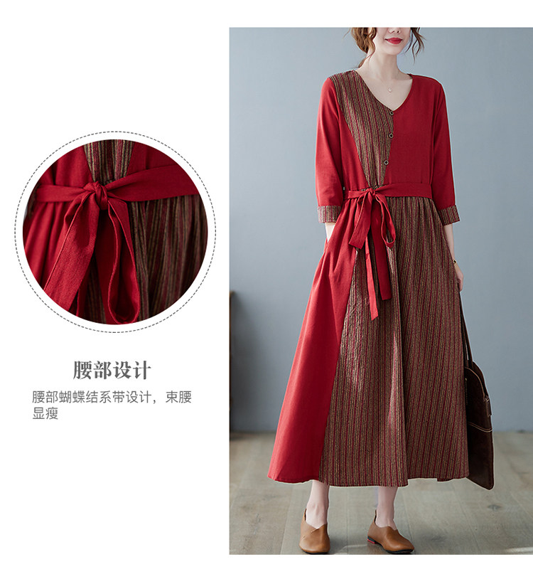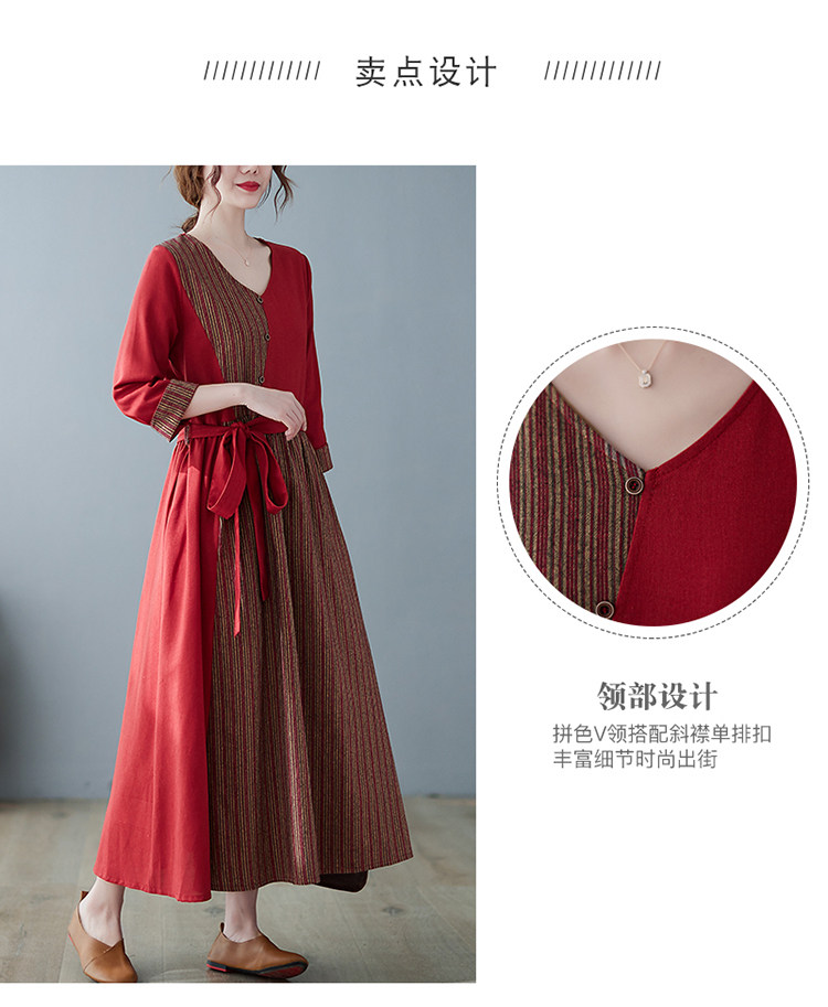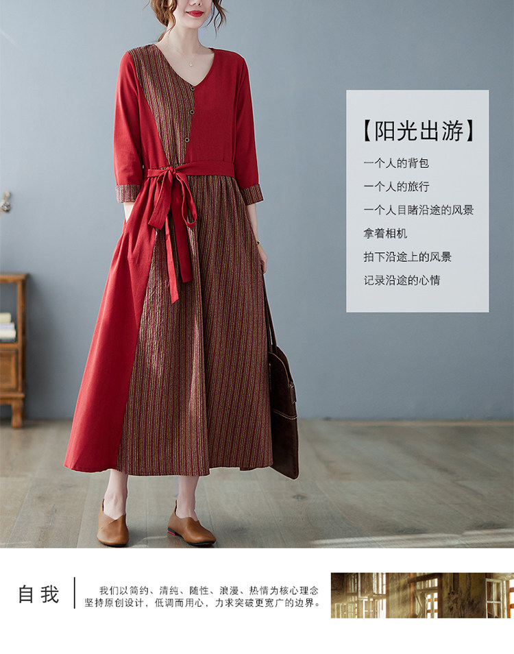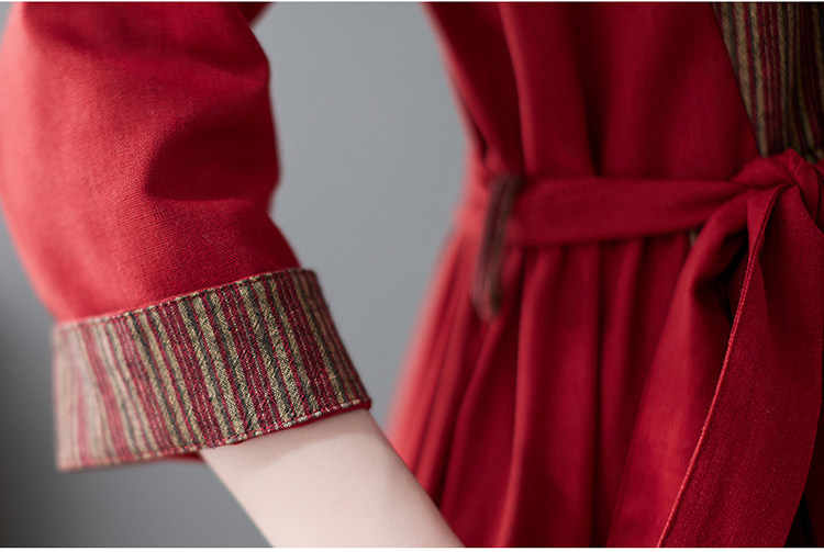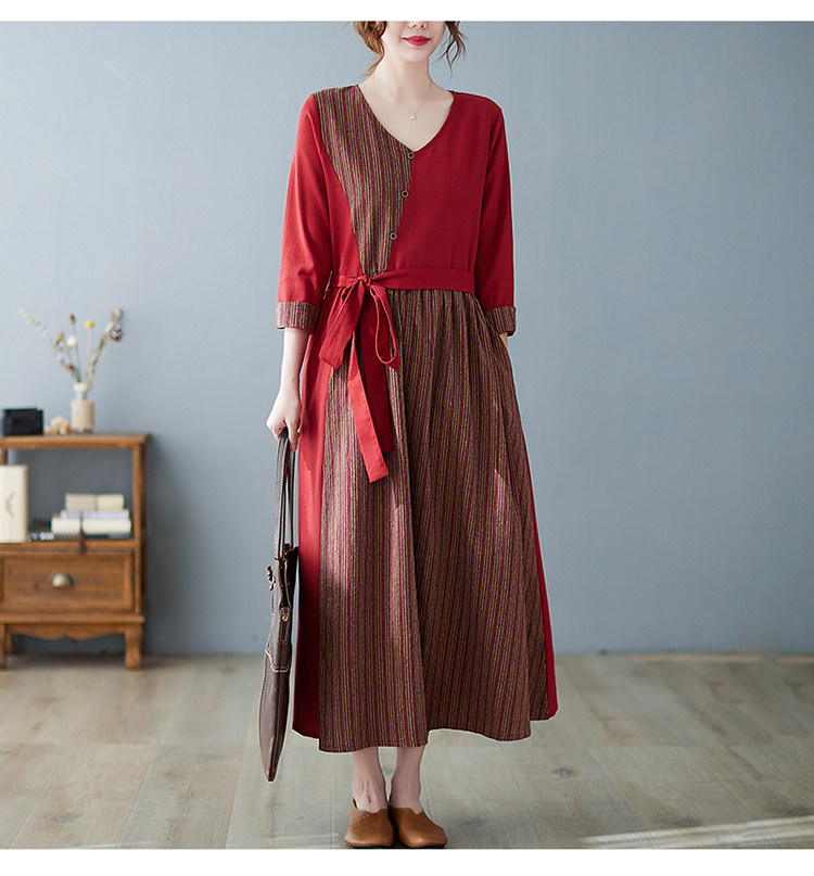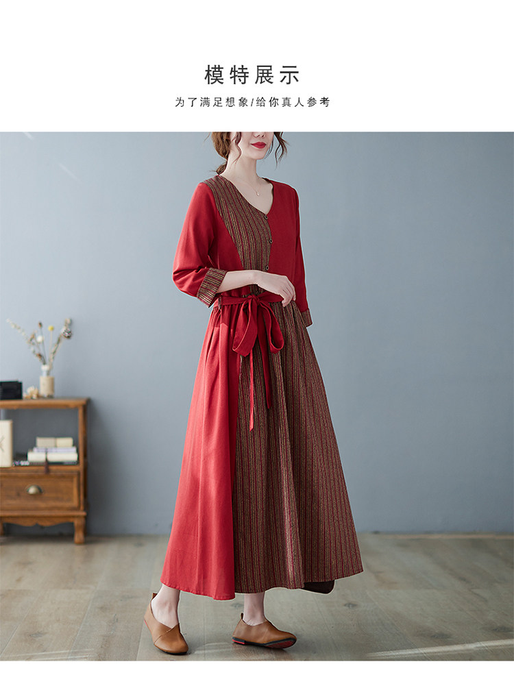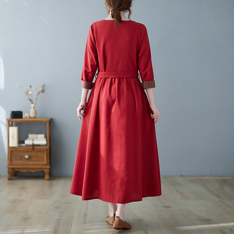 (Трансграничная торговля), японское ретро длинное платье, юбка, из хлопка и льна, V-образный вырез