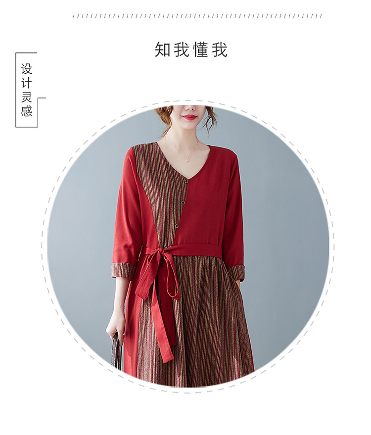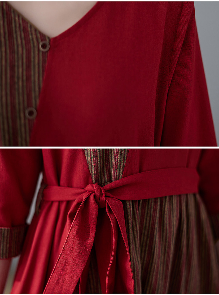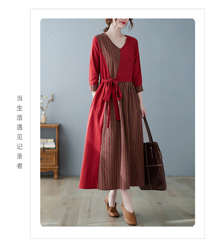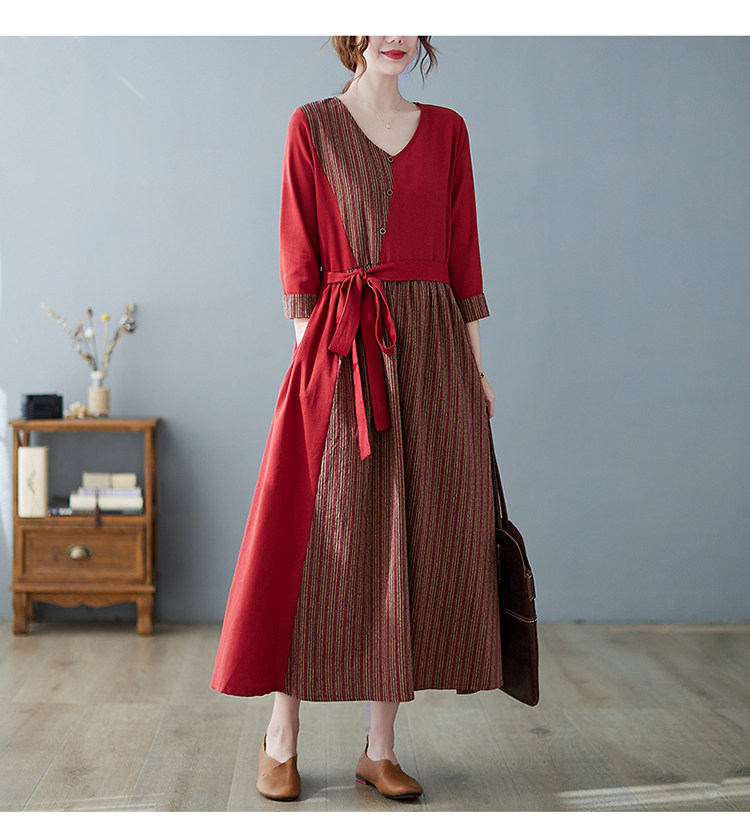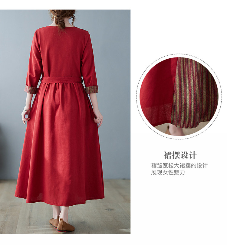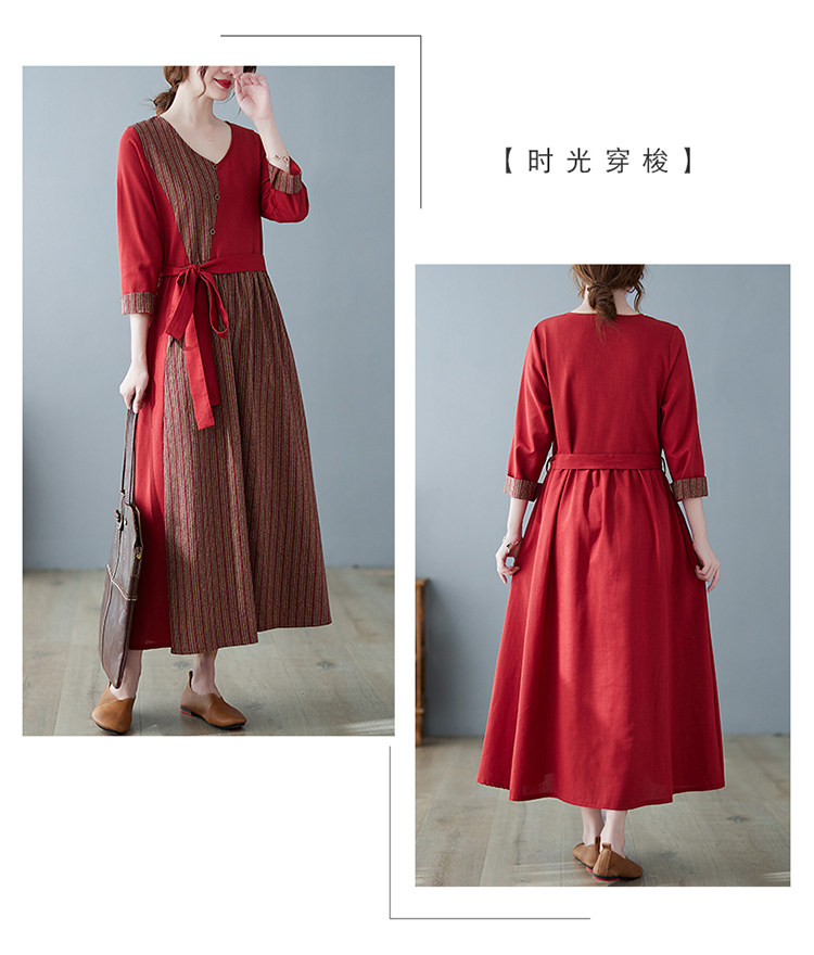 (Трансграничная торговля), японское ретро длинное платье, юбка, из хлопка и льна, V-образный вырез