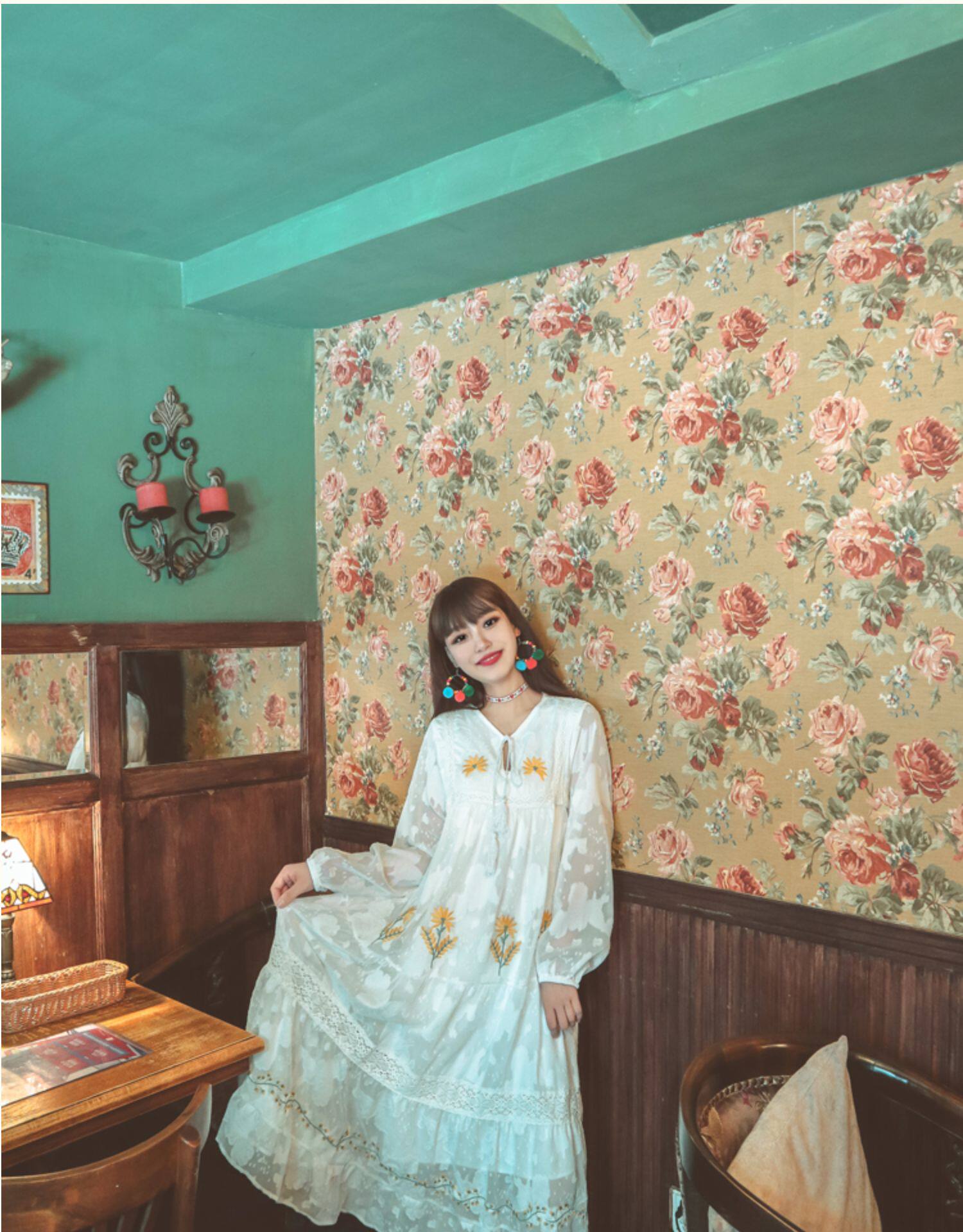 Этнический лонгслив, белое платье, юбка, Таиланд, этнический стиль, с вышивкой, в цветочек, свободный крой, защита от солнца