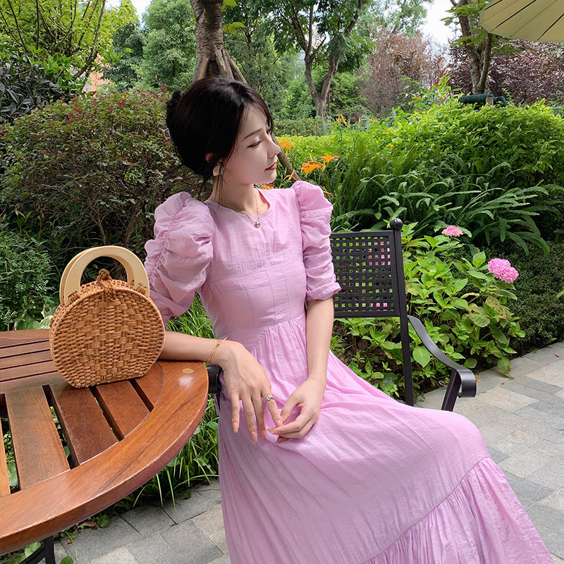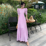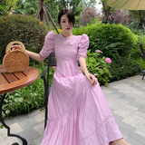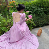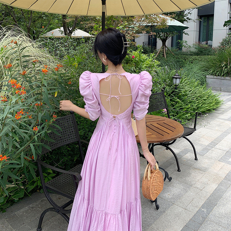 Дизайнерское платье, сиреневая пляжная длинная юбка, французский стиль, тренд сезона, с открытой спиной