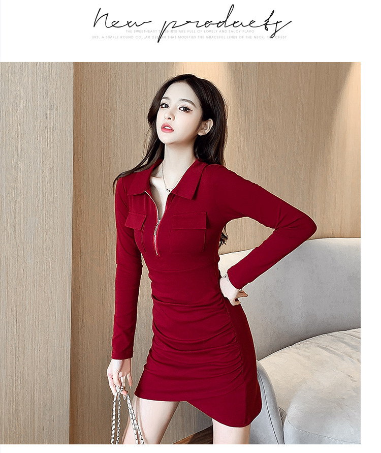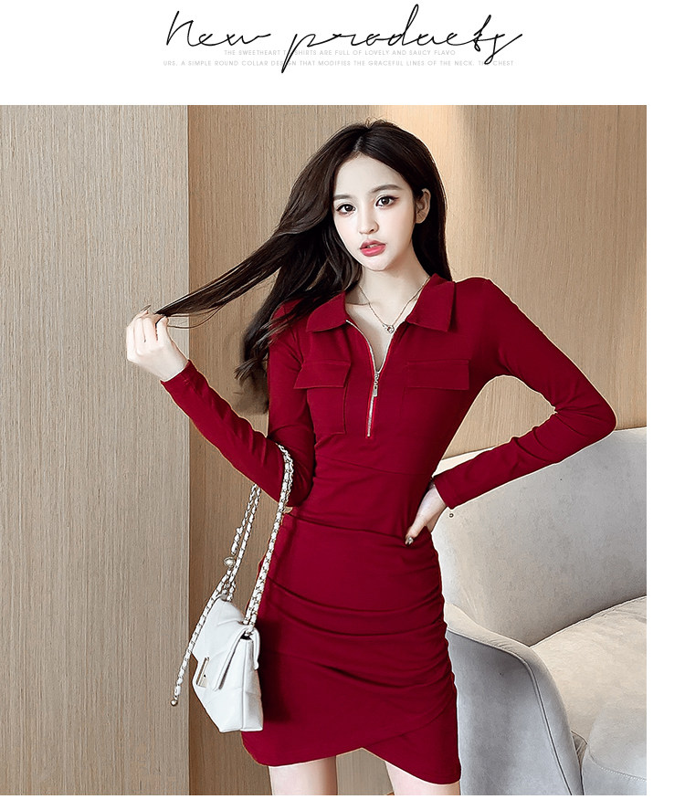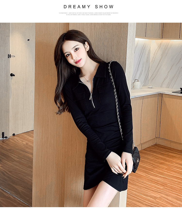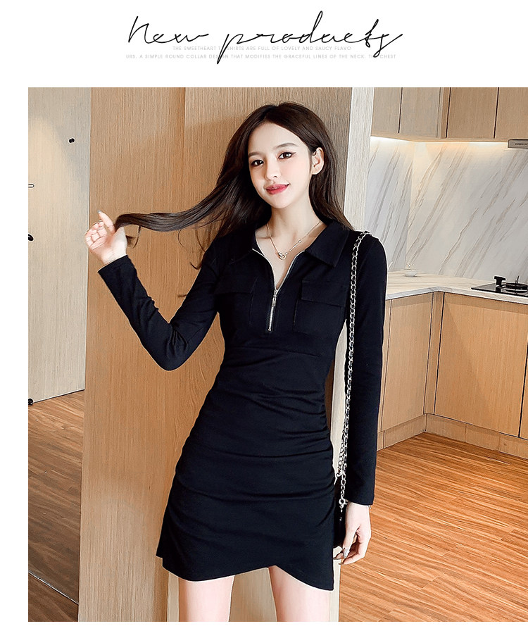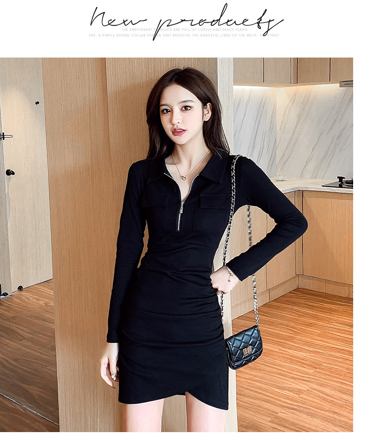 Весеннее платье с молнией, 2023, городской стиль, яркий броский стиль, облегающий крой, воротник поло
