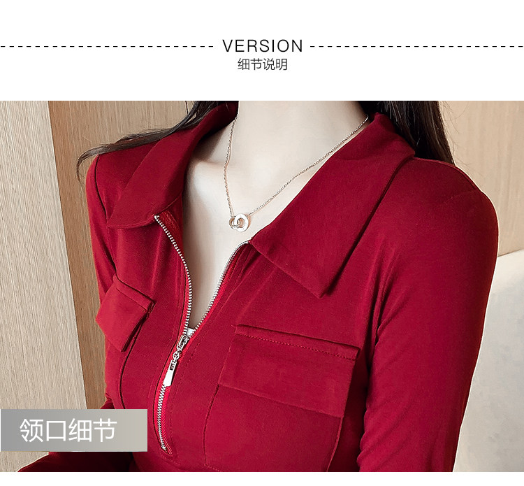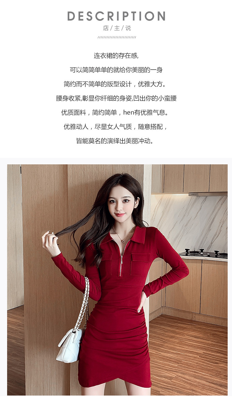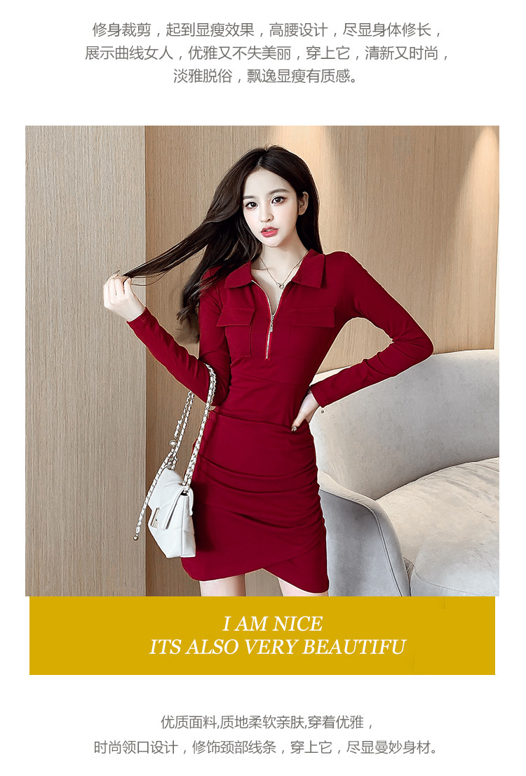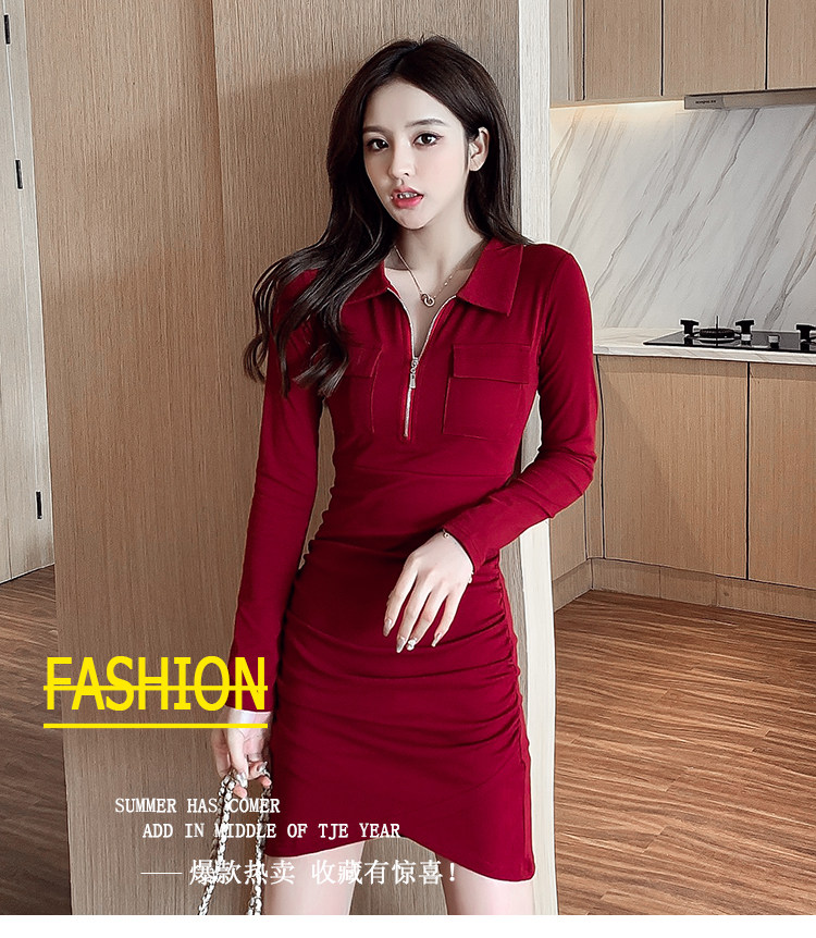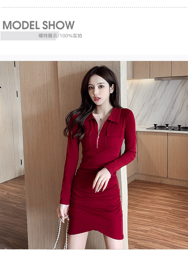 Весеннее платье с молнией, 2023, городской стиль, яркий броский стиль, облегающий крой, воротник поло