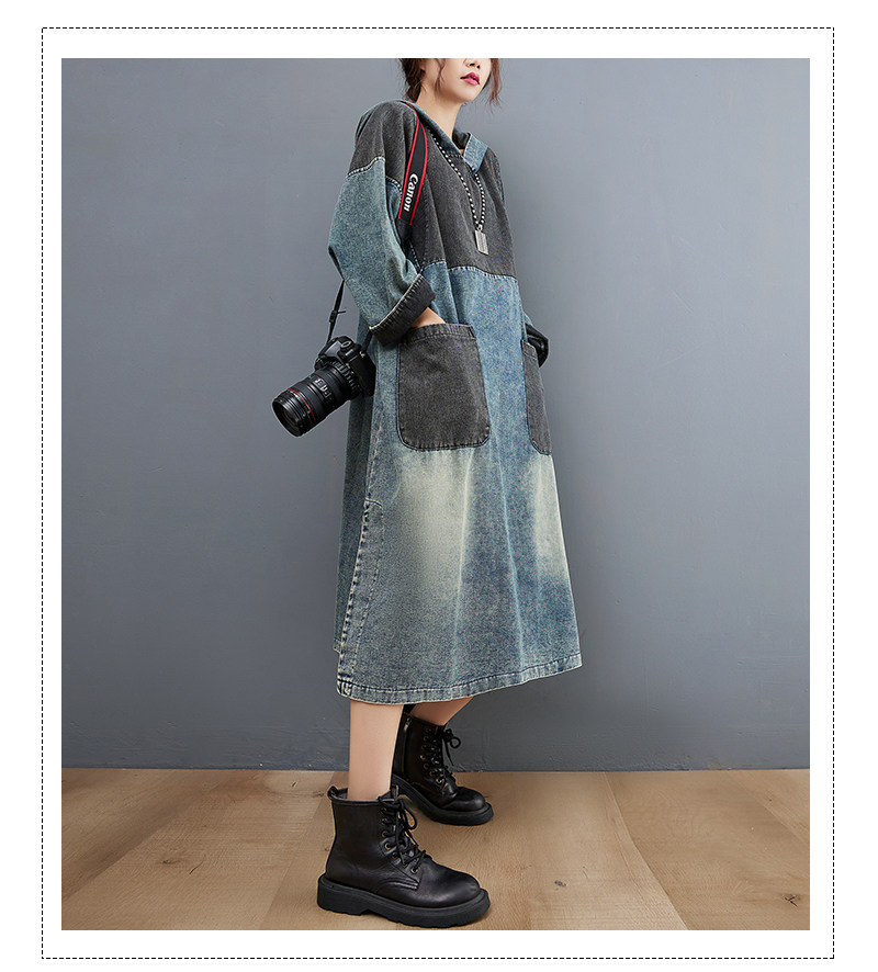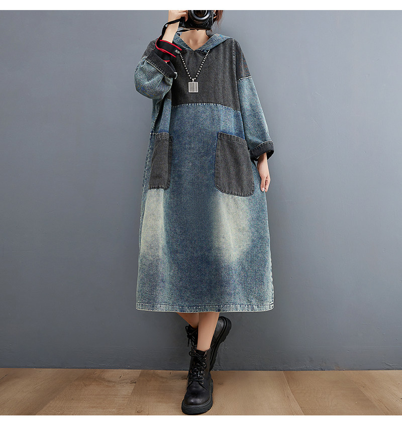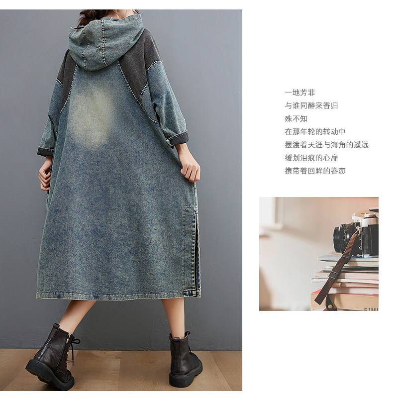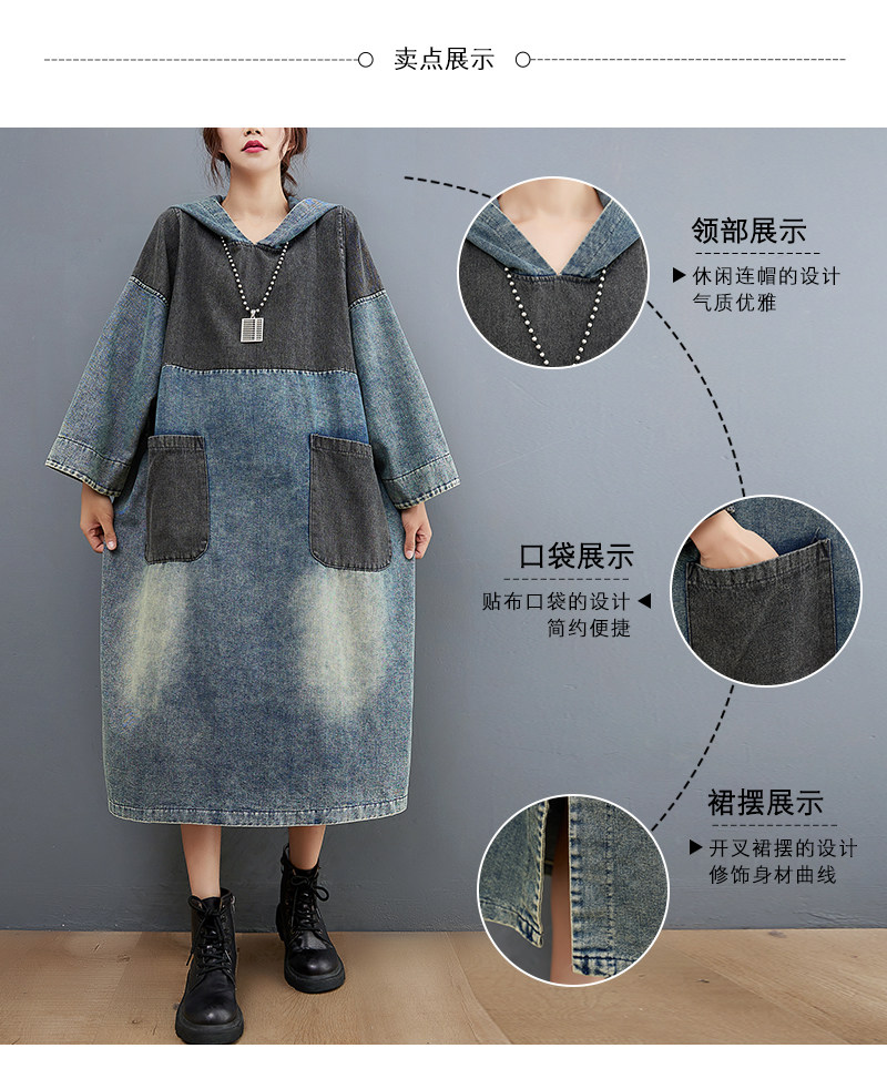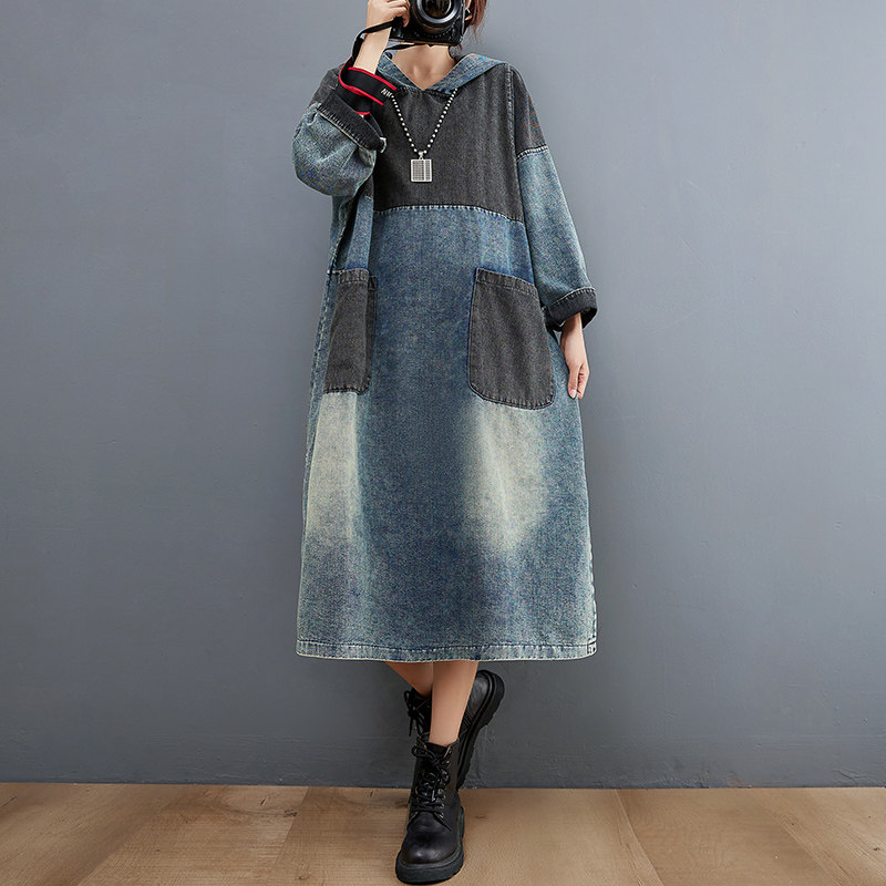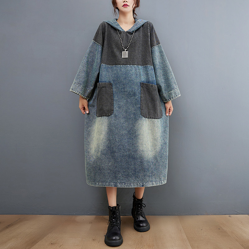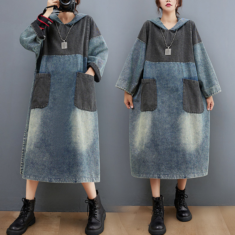 Весеннее ретро джинсовое платье с капюшоном, юбка, большой размер, тренд сезона, подходит для подростков