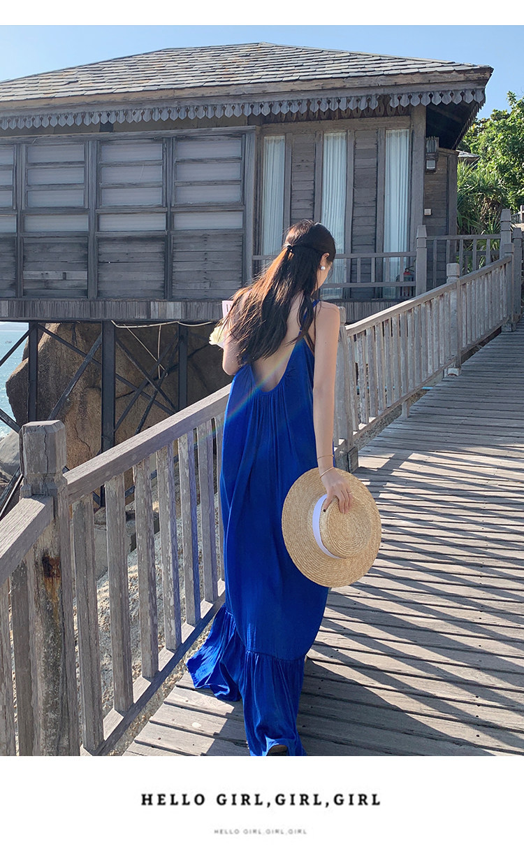 Синяя длинная юбка без рукавов, пляжное платье, эффект подтяжки, стиль, свободный крой, облегающий крой