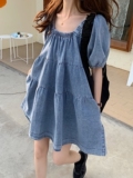 Ретро -квадратное воротничное джинсовое платье