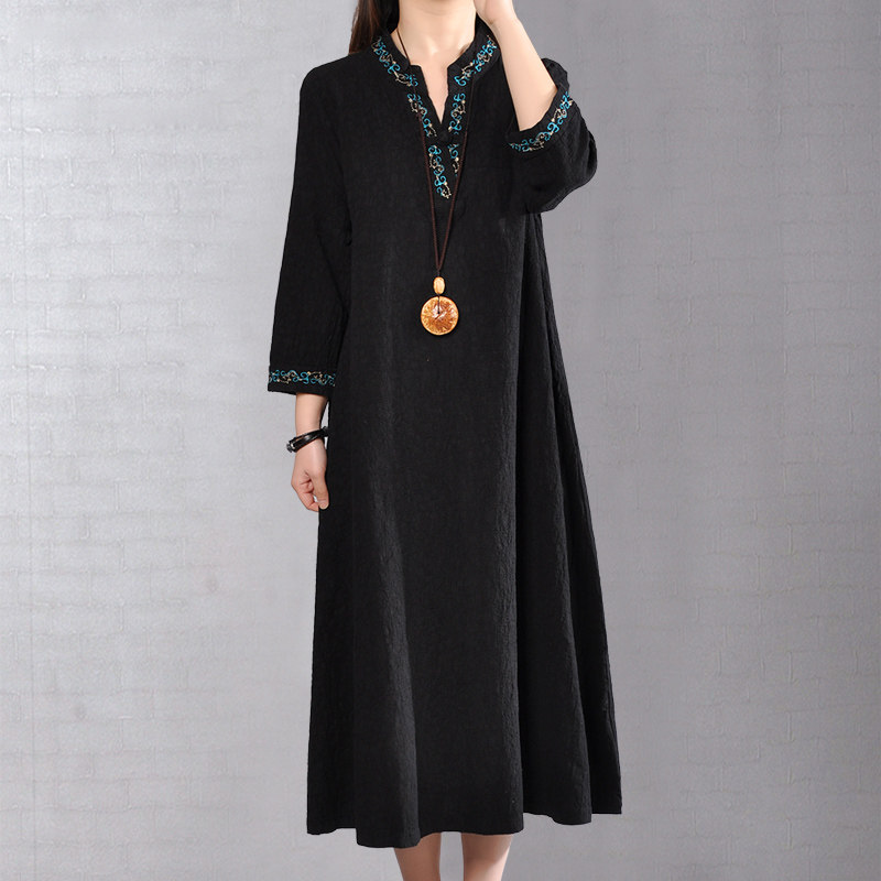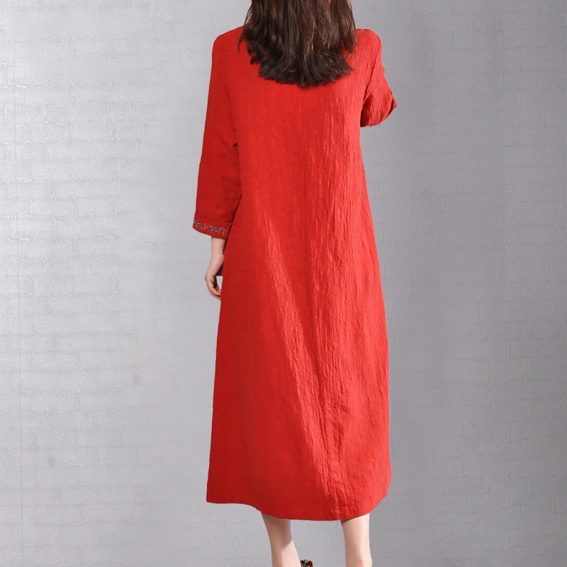 Платье, юбка, Италия, V-образный вырез, с вышивкой, из хлопка и льна