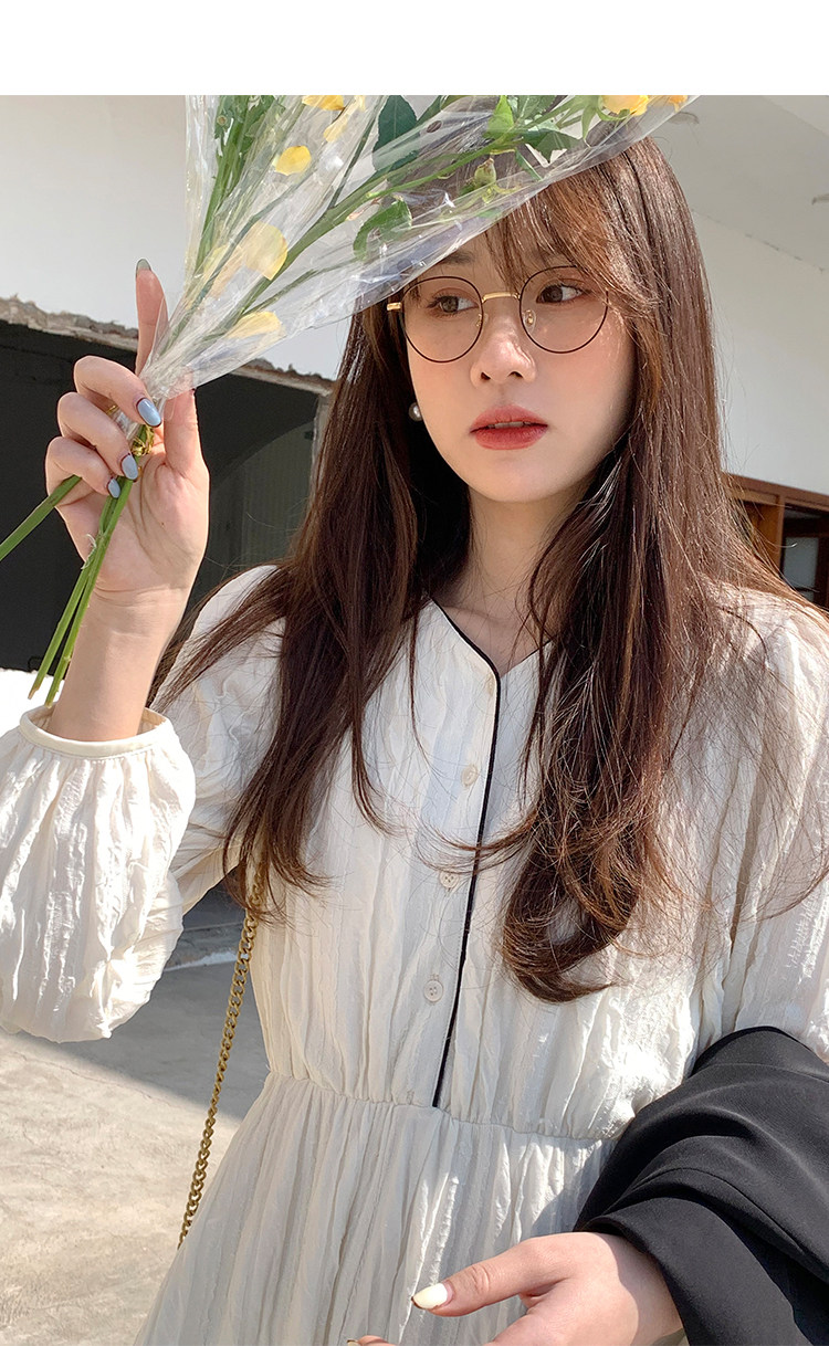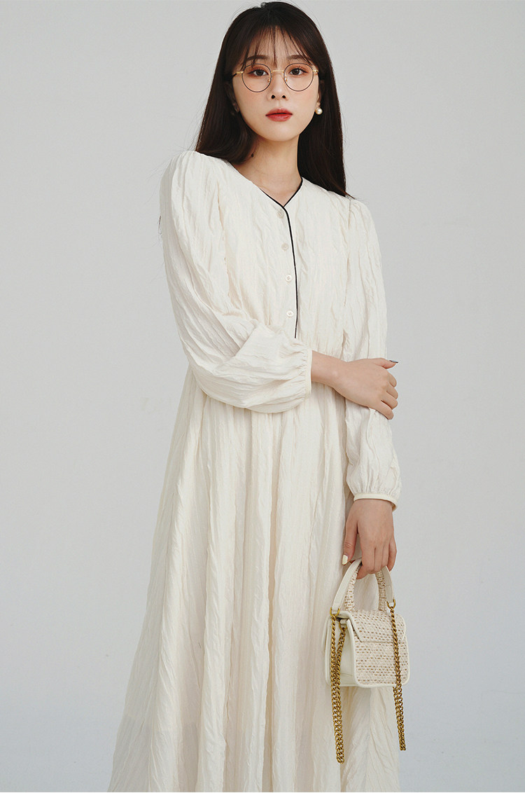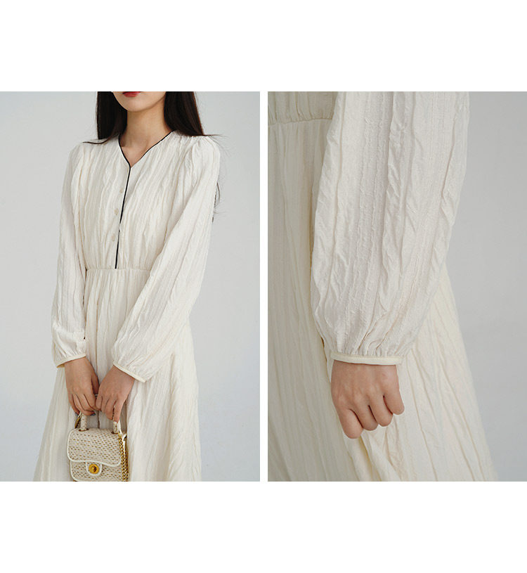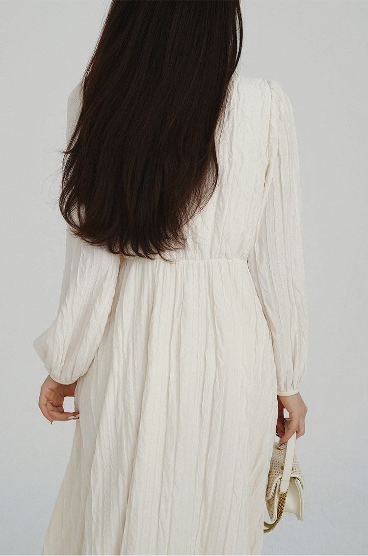 Сливочное весеннее платье, лонгслив, длинная юбка, французский стиль, широкая цветовая палитра, V-образный вырез, высокая талия, эластичная талия, средней длины