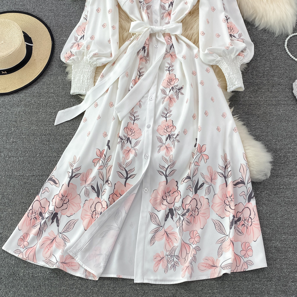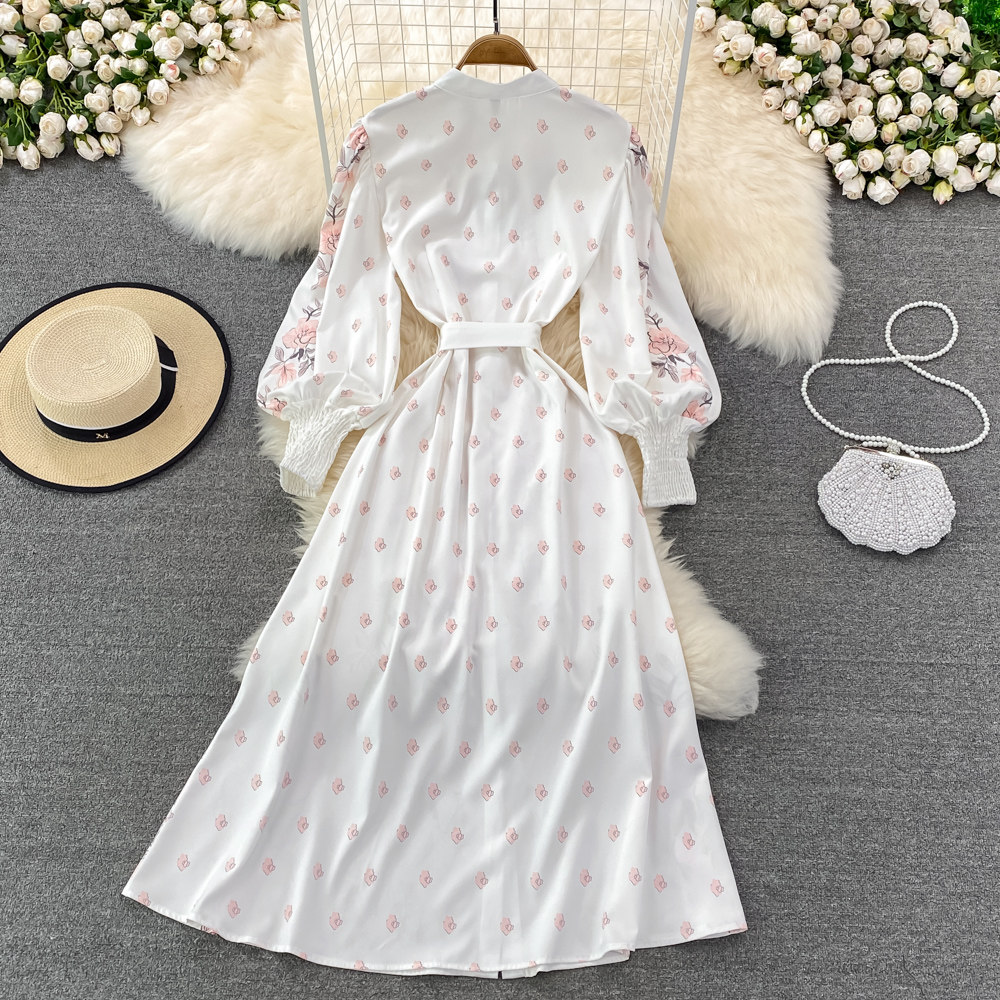 Весенний фонарь, элегантное платье, длинная юбка, в цветочек, А-силуэт