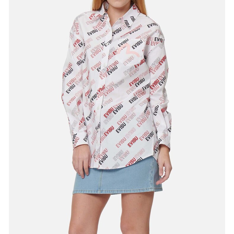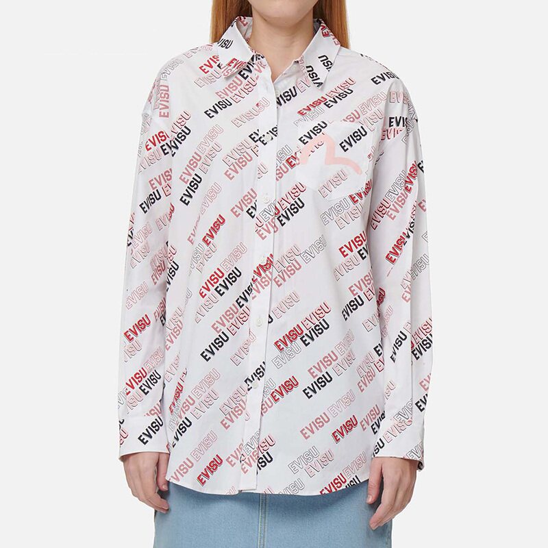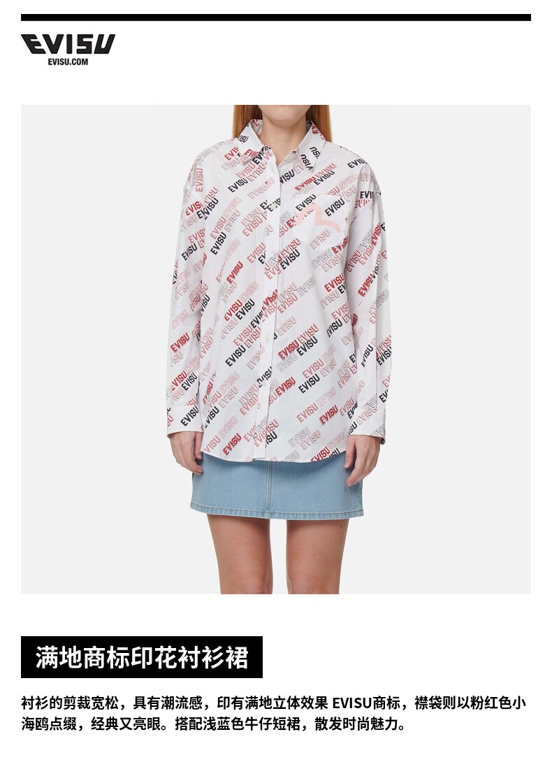 EVISU женское модное повседневное платье-рубашка с принтом чайки