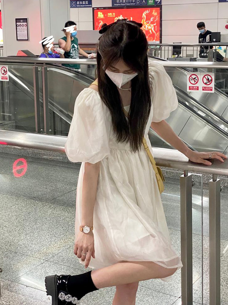 Tide, осеннее белое платье, цветная мини-юбка, юбка, квадратный вырез, высокая талия, А-силуэт